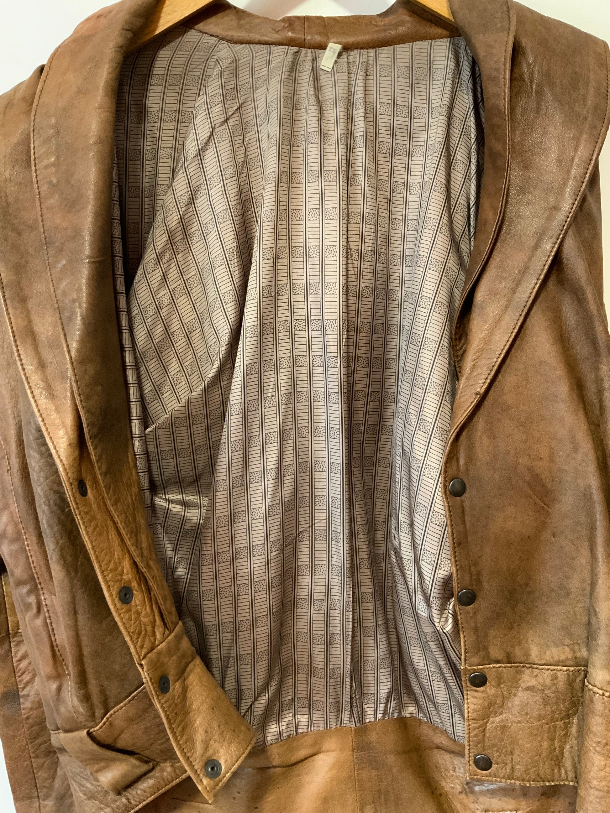 Blouson Cuir marron Vintage 1980 Double col à manches détachables