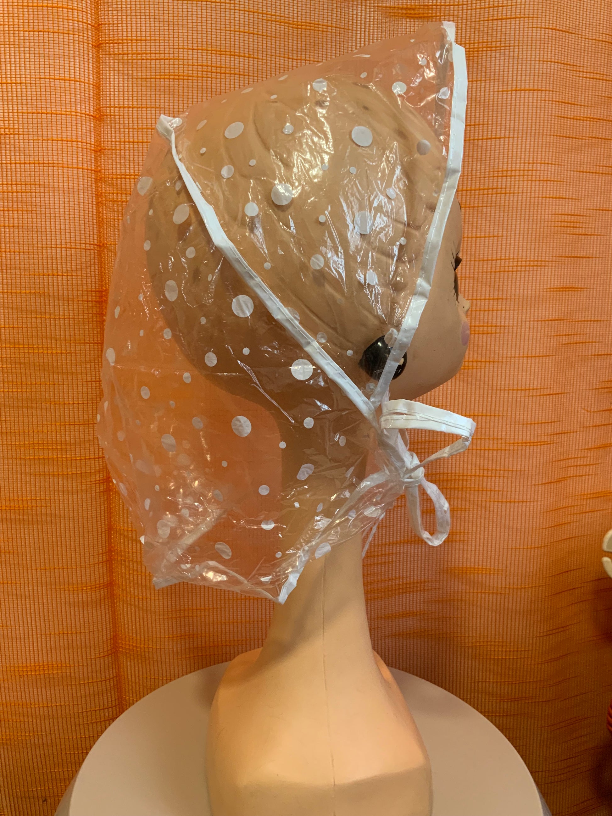 Chapeau Bonnet de pluie Vintage 1970/80 dans sa housse - Pois blancs Neuf jamais porté.