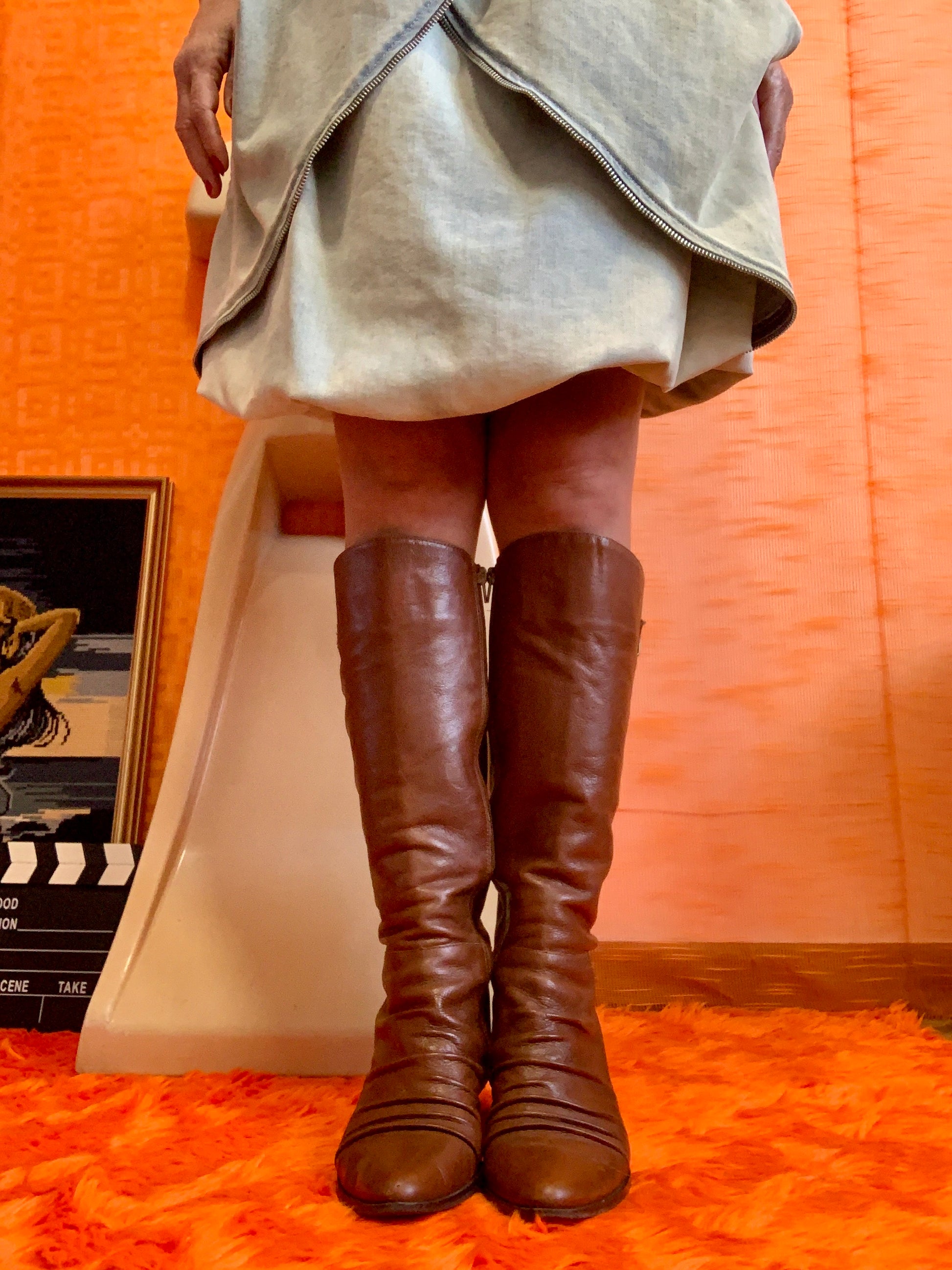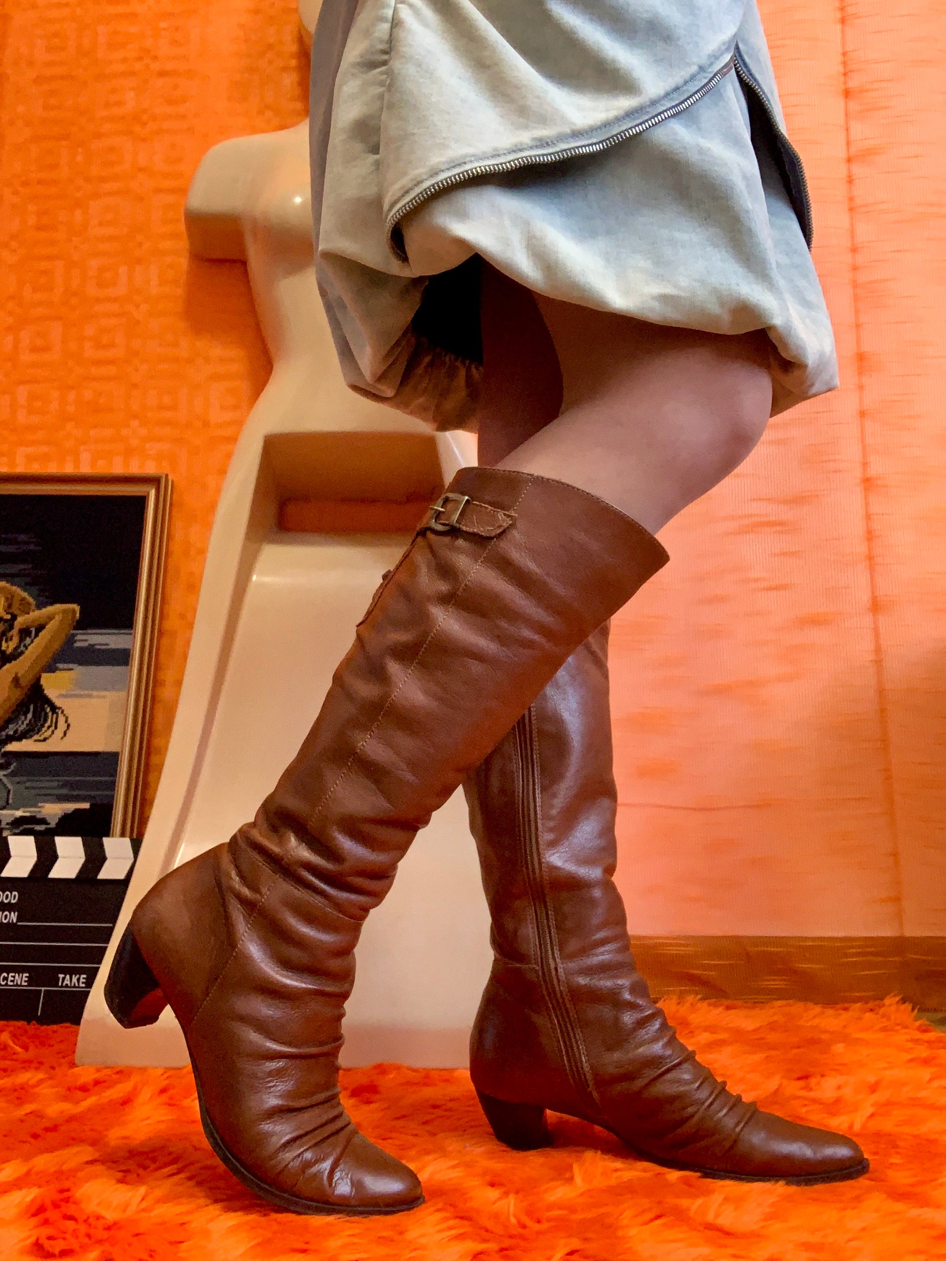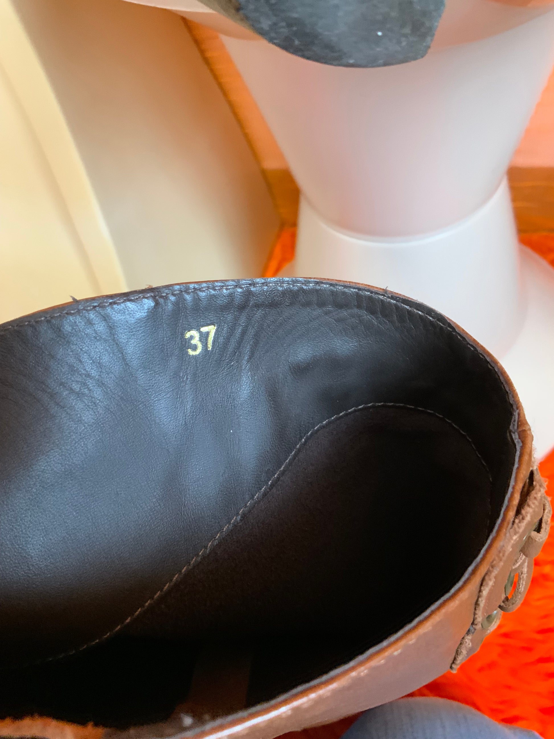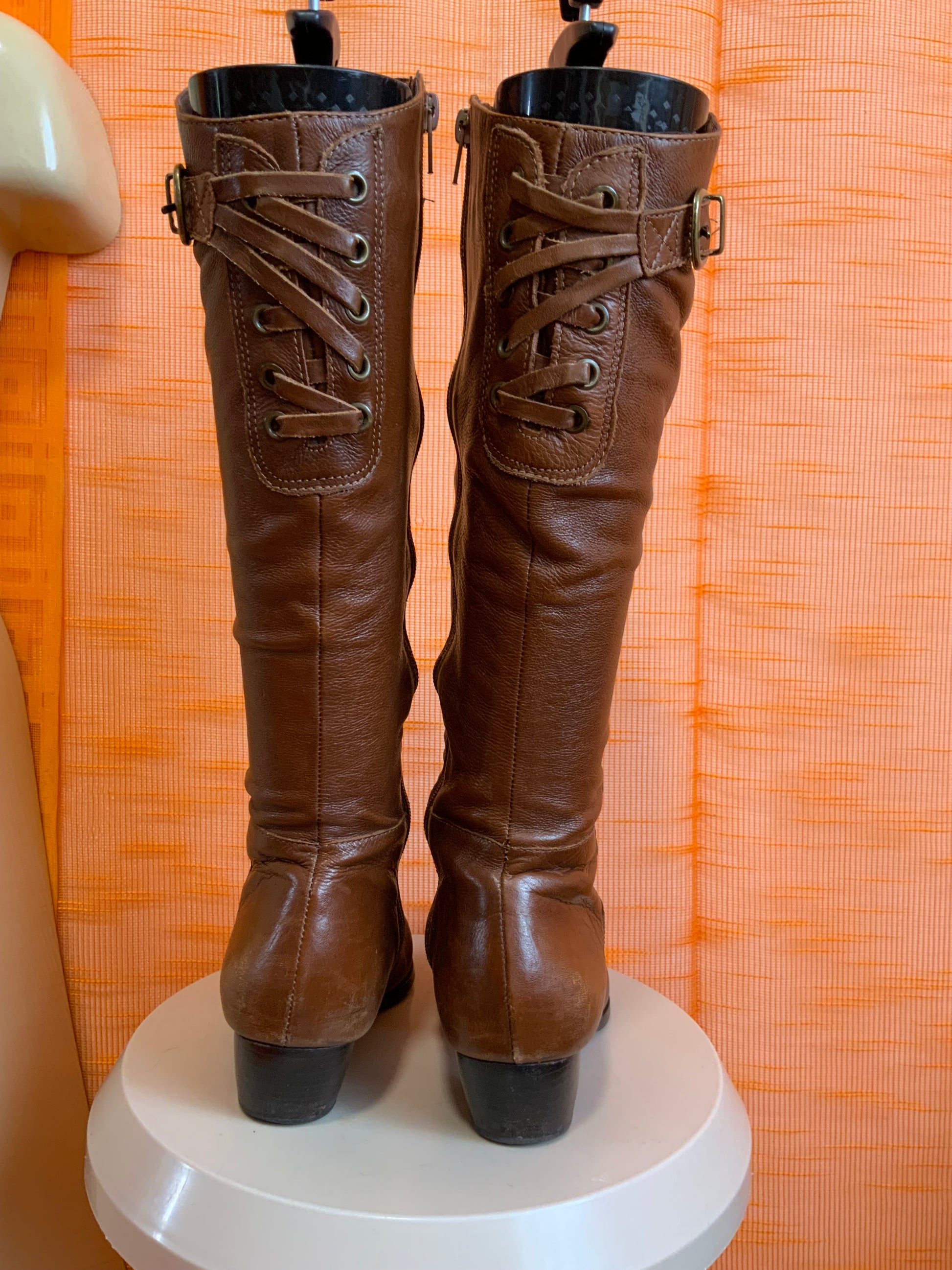 Sublimes bottes brésiliennes Vintage Cuir marron fripé devant et lacets derrière, avec zip sur le coton et talons formes originales Brésil.