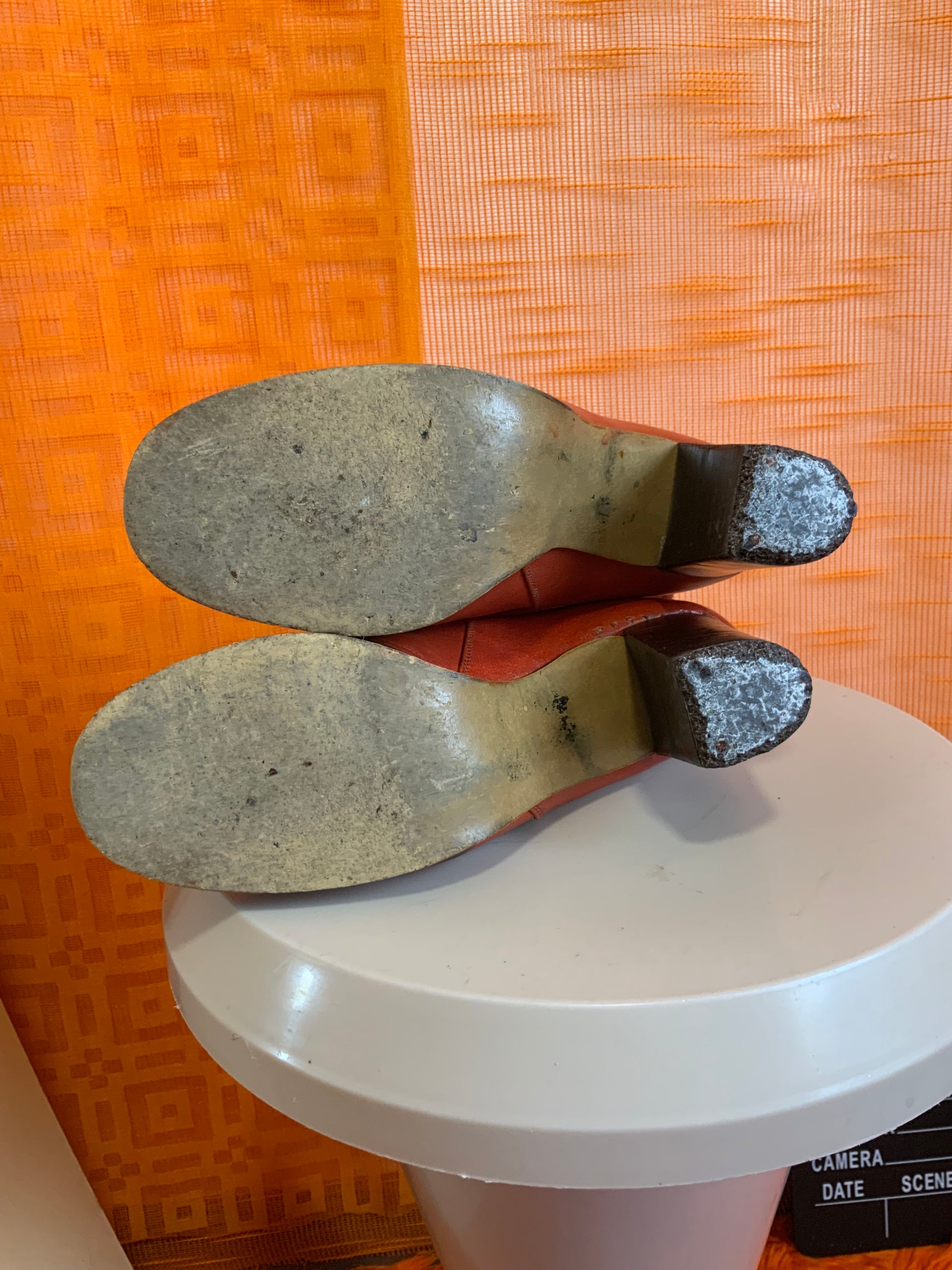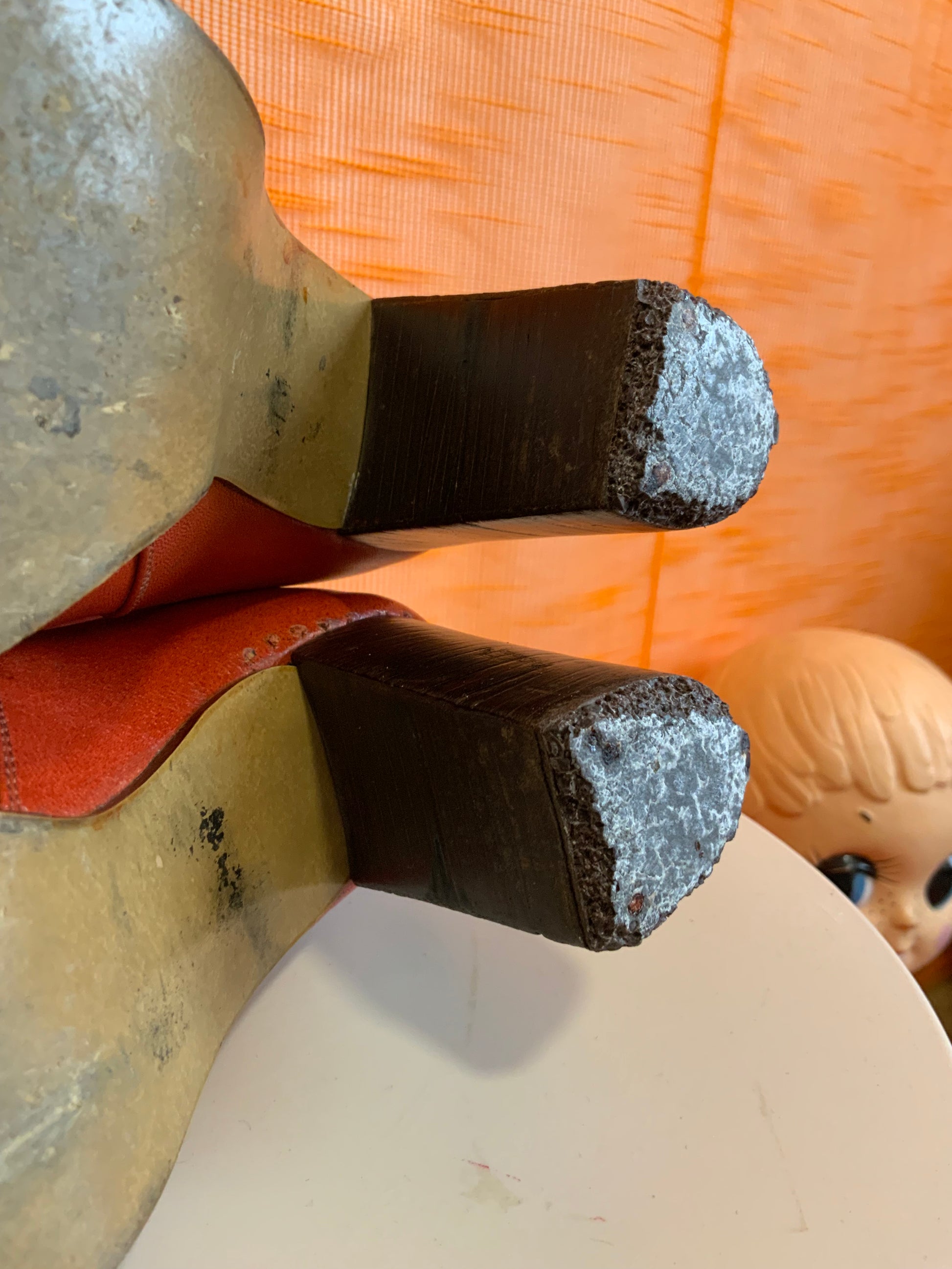 Très belles bottes en cuir marron rouge Pur Vintage Seventies -