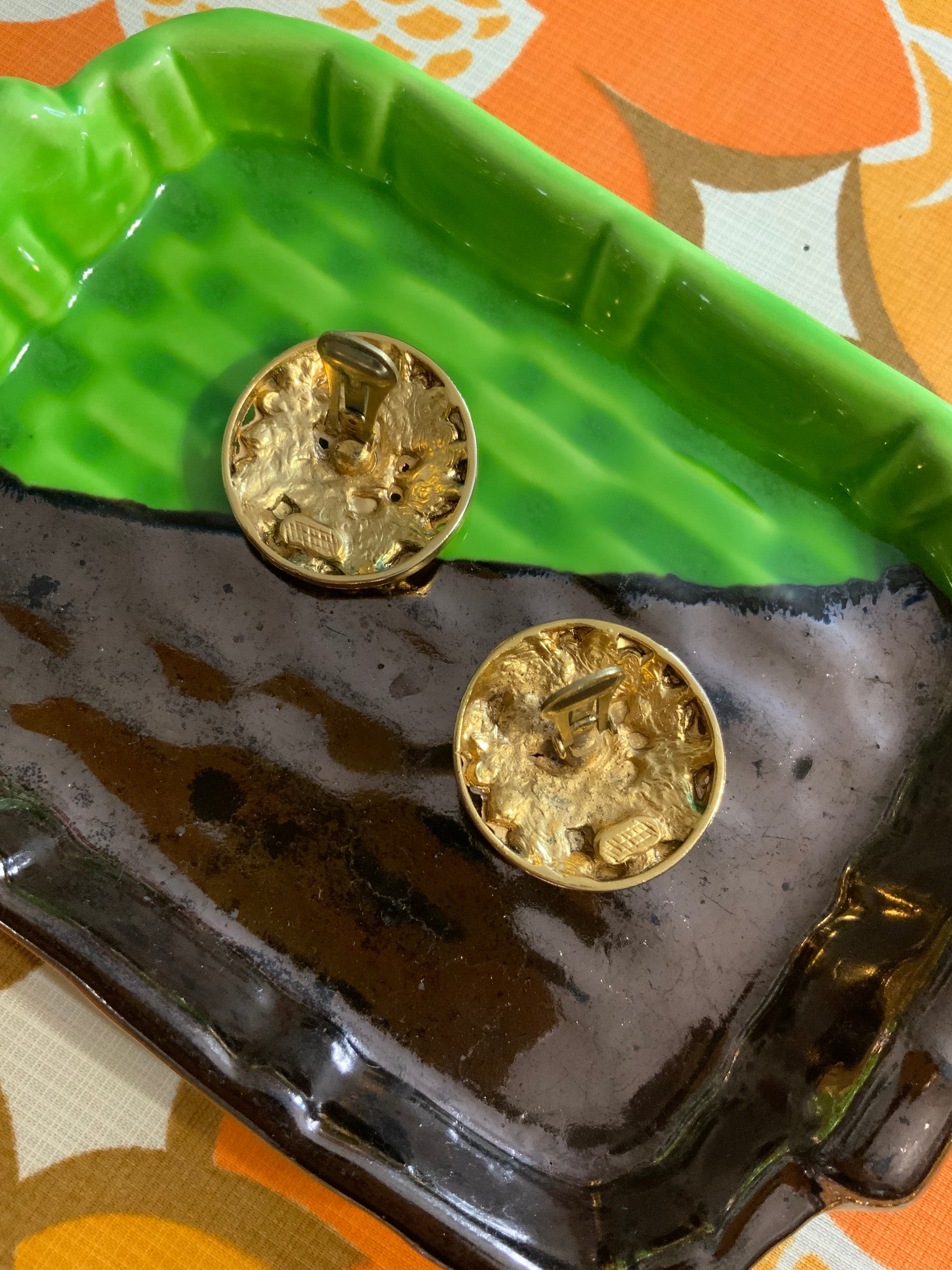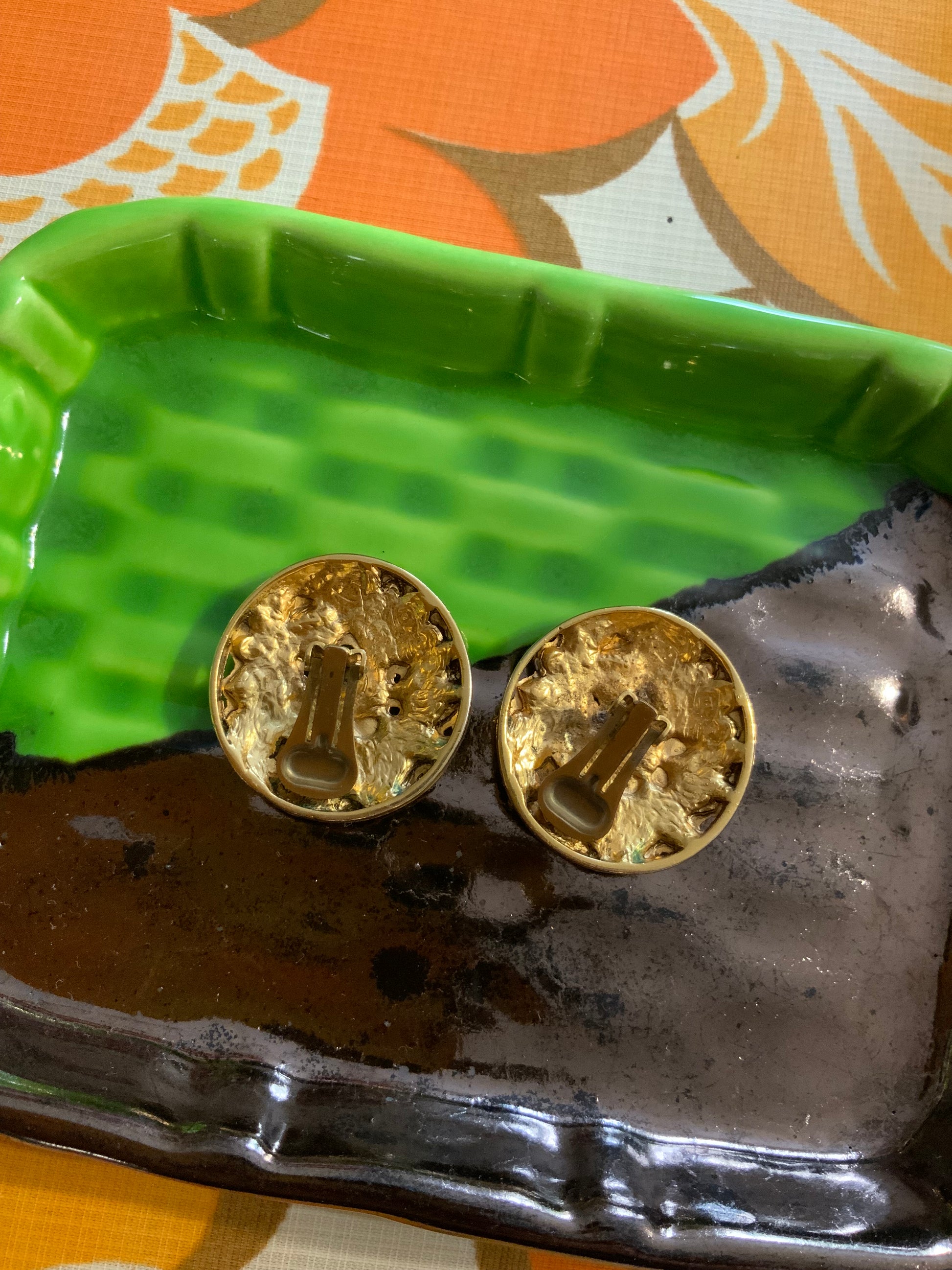 Boucles d’oreilles Métal doré pierres paillettes plastiques Vintage 1980