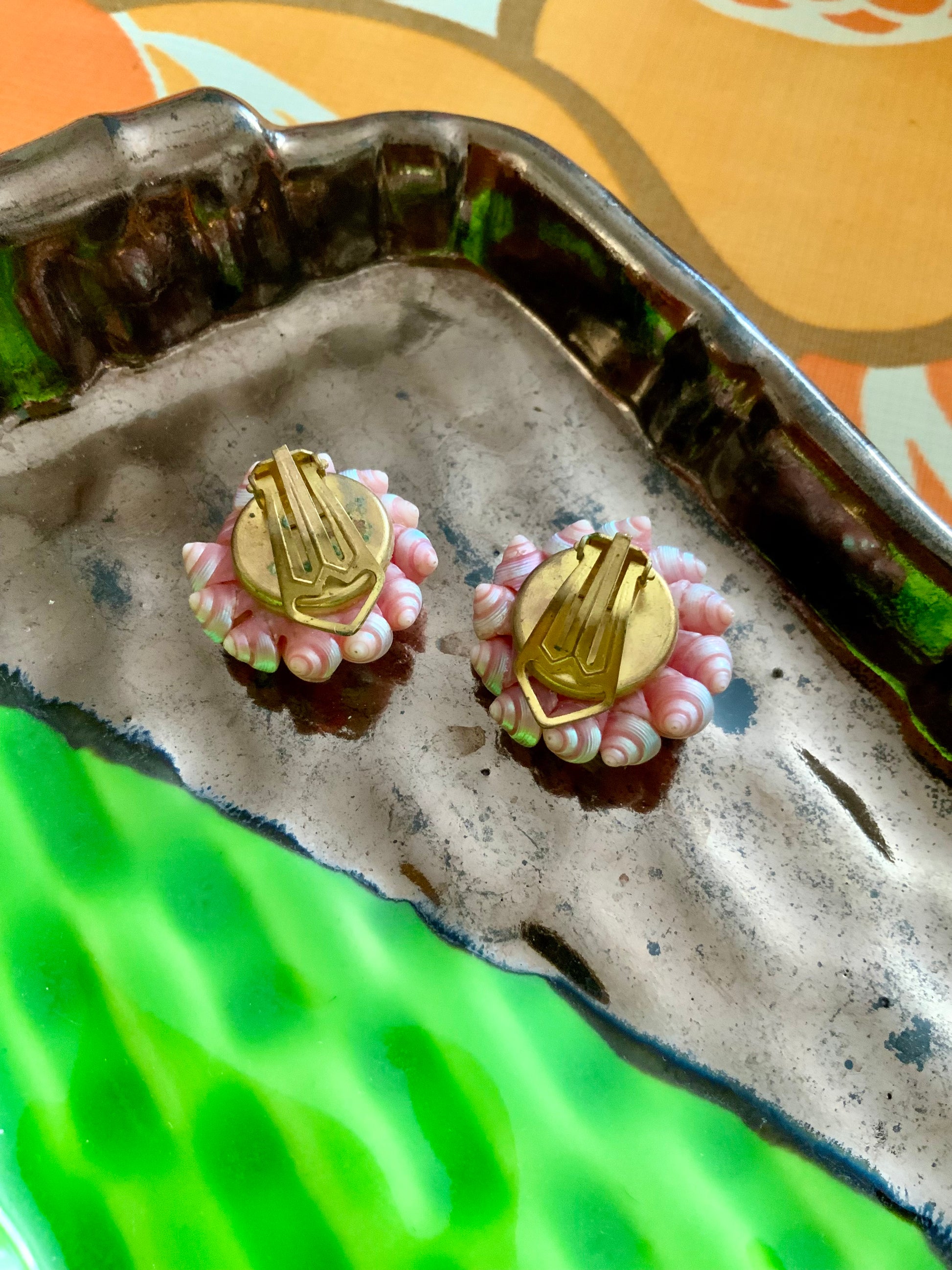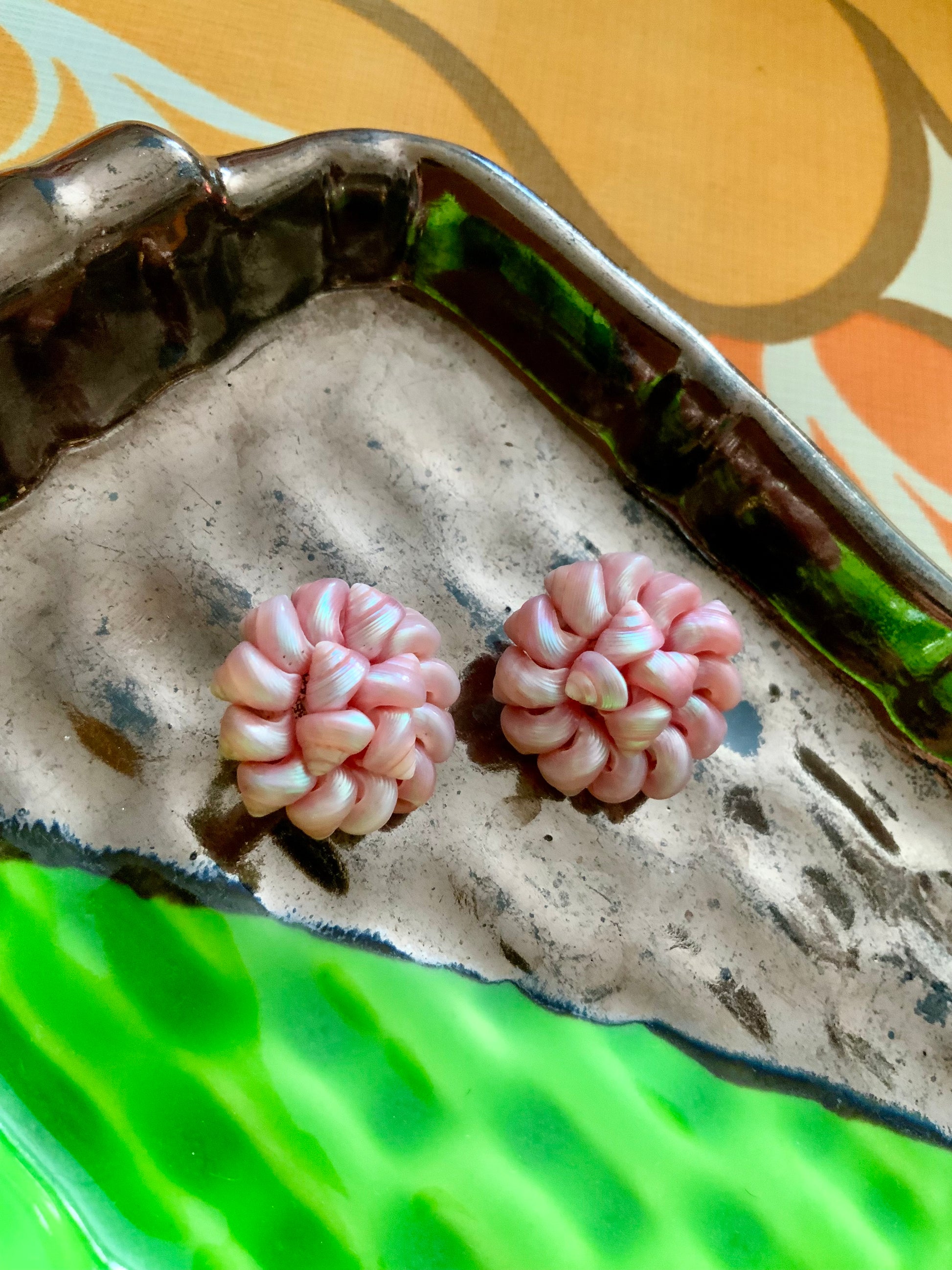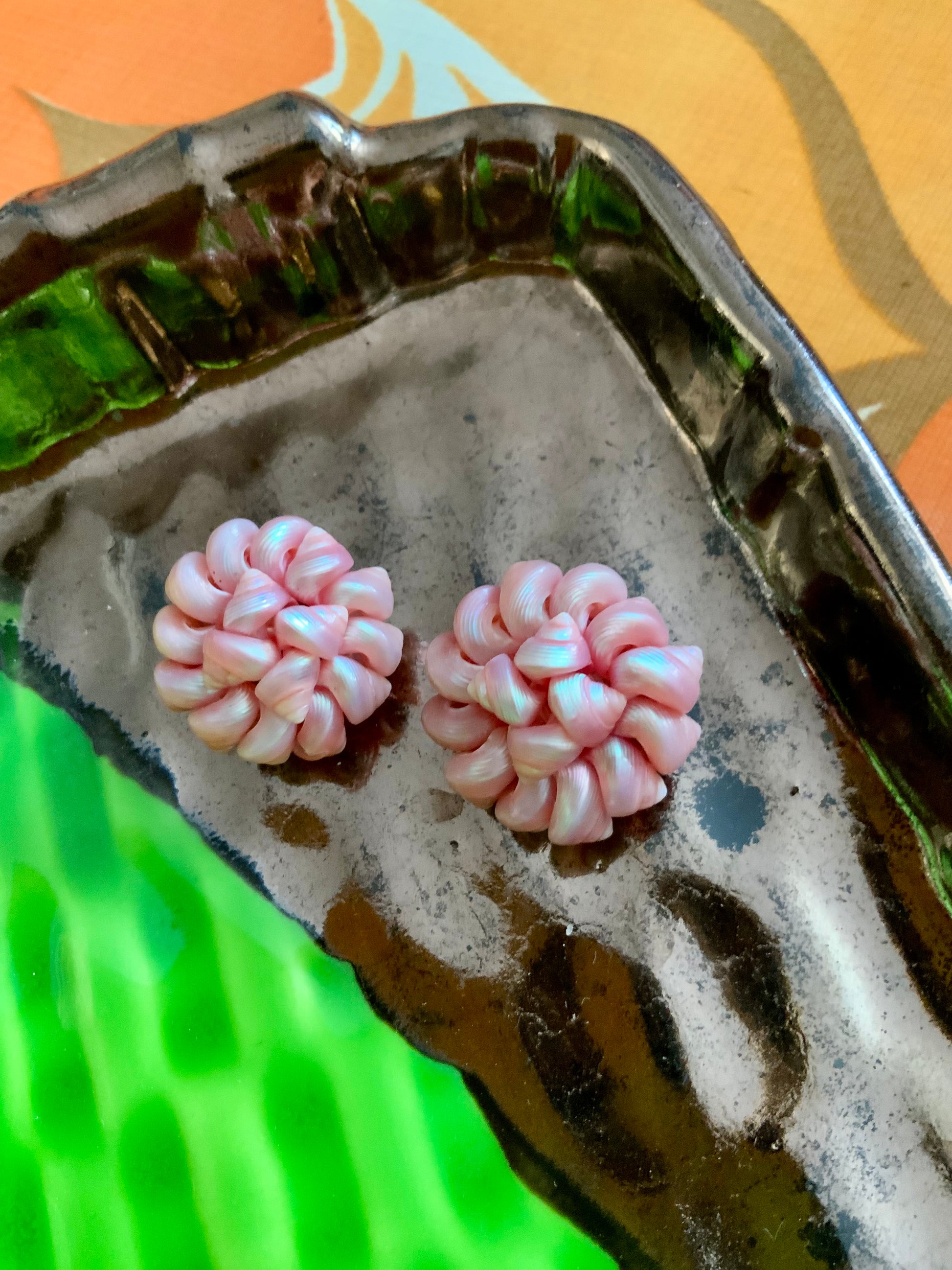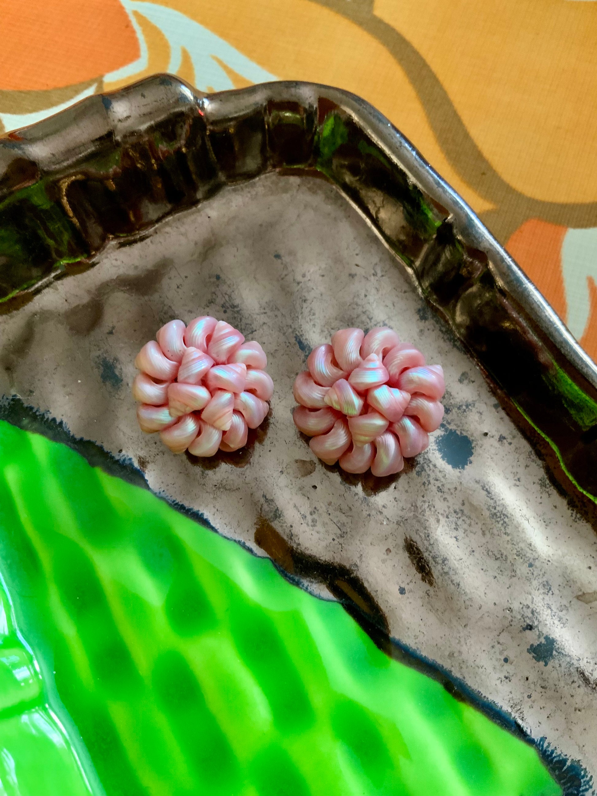 Boucles d oreilles très anciennes faites main coquillages roses Vintage