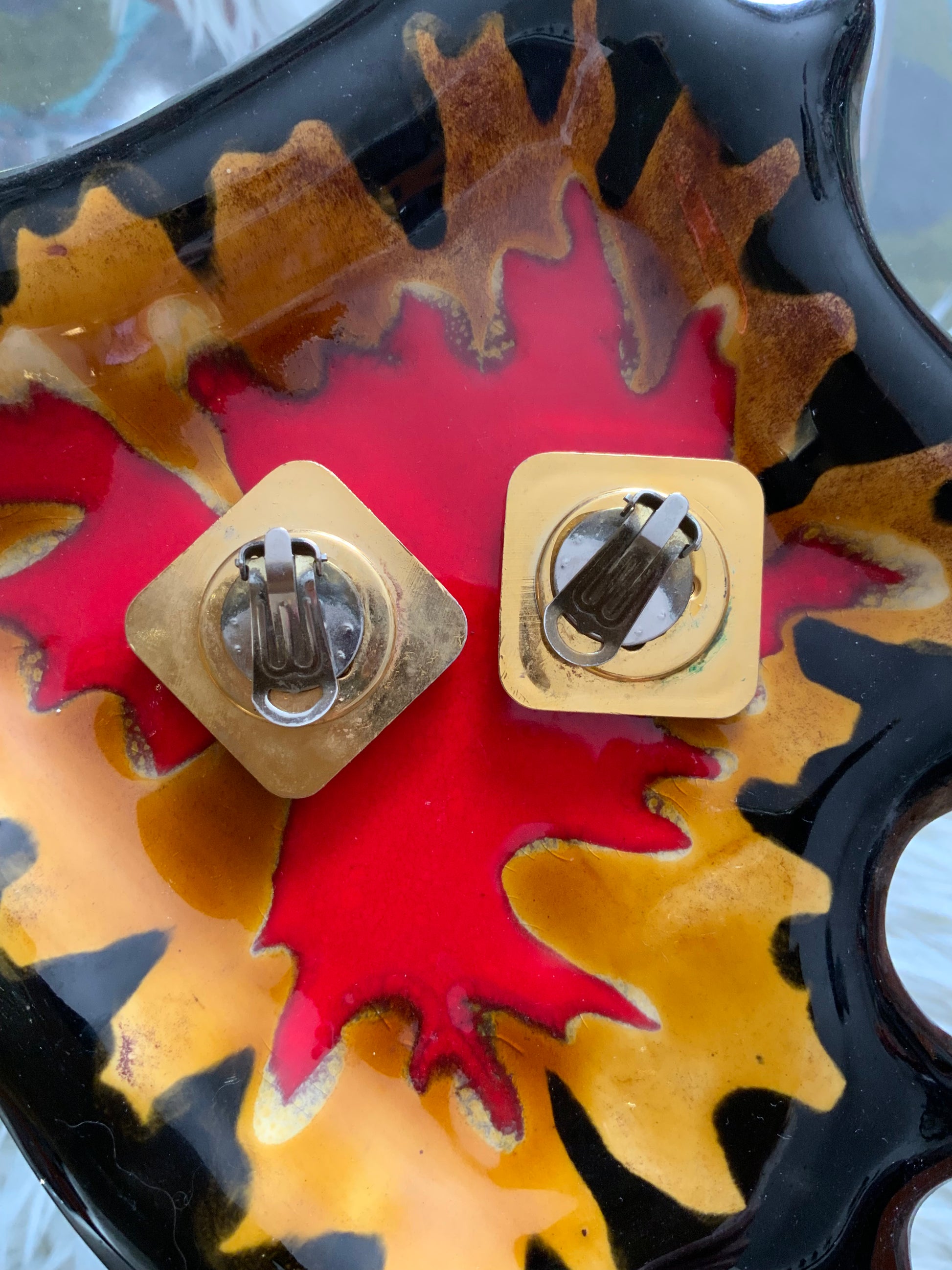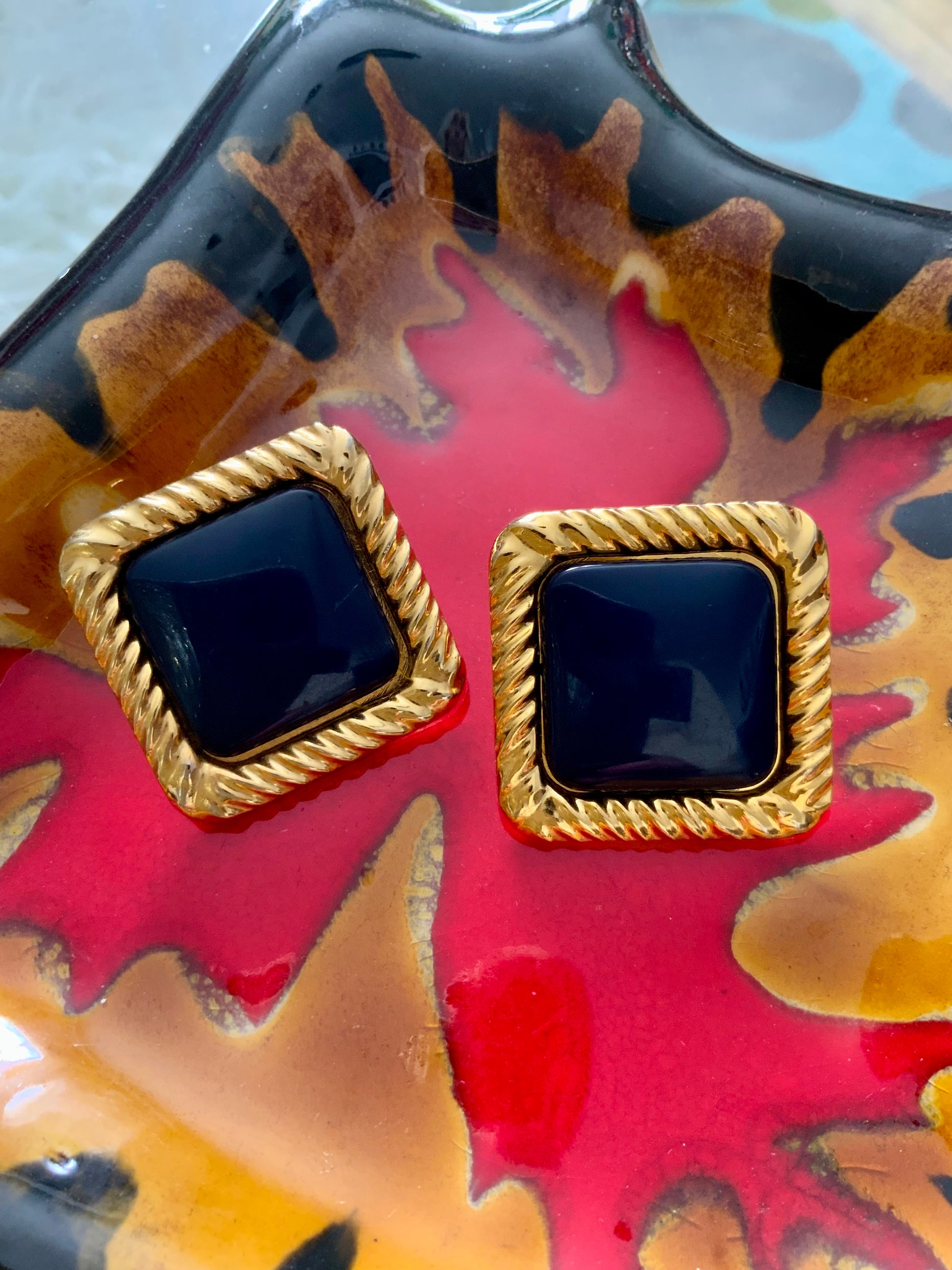 Boucles d’oreille Vintage Carrées Métal et plastique -