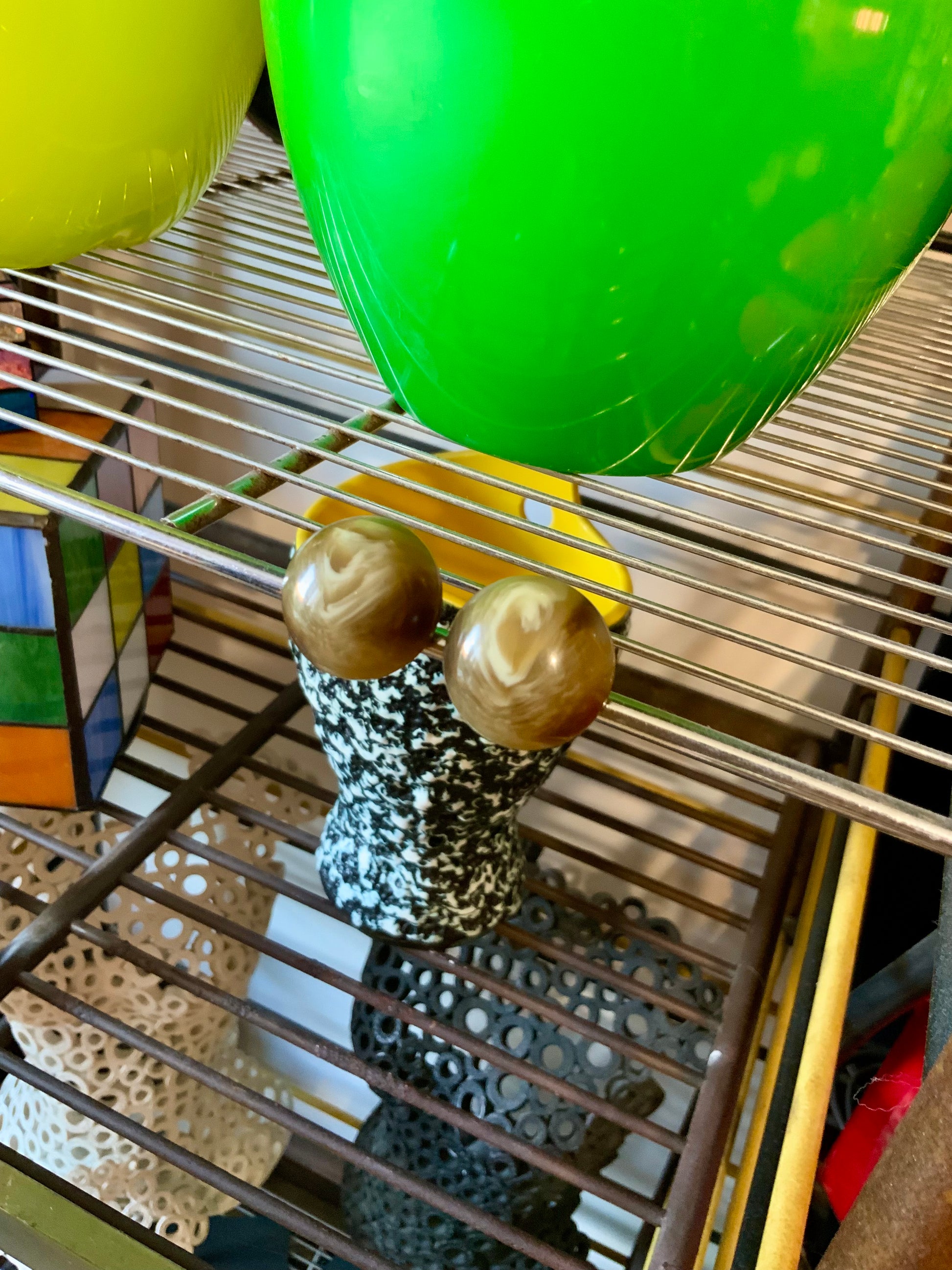 Très jolies boucles d’oreilles anciennes Boules volume Marron effets.