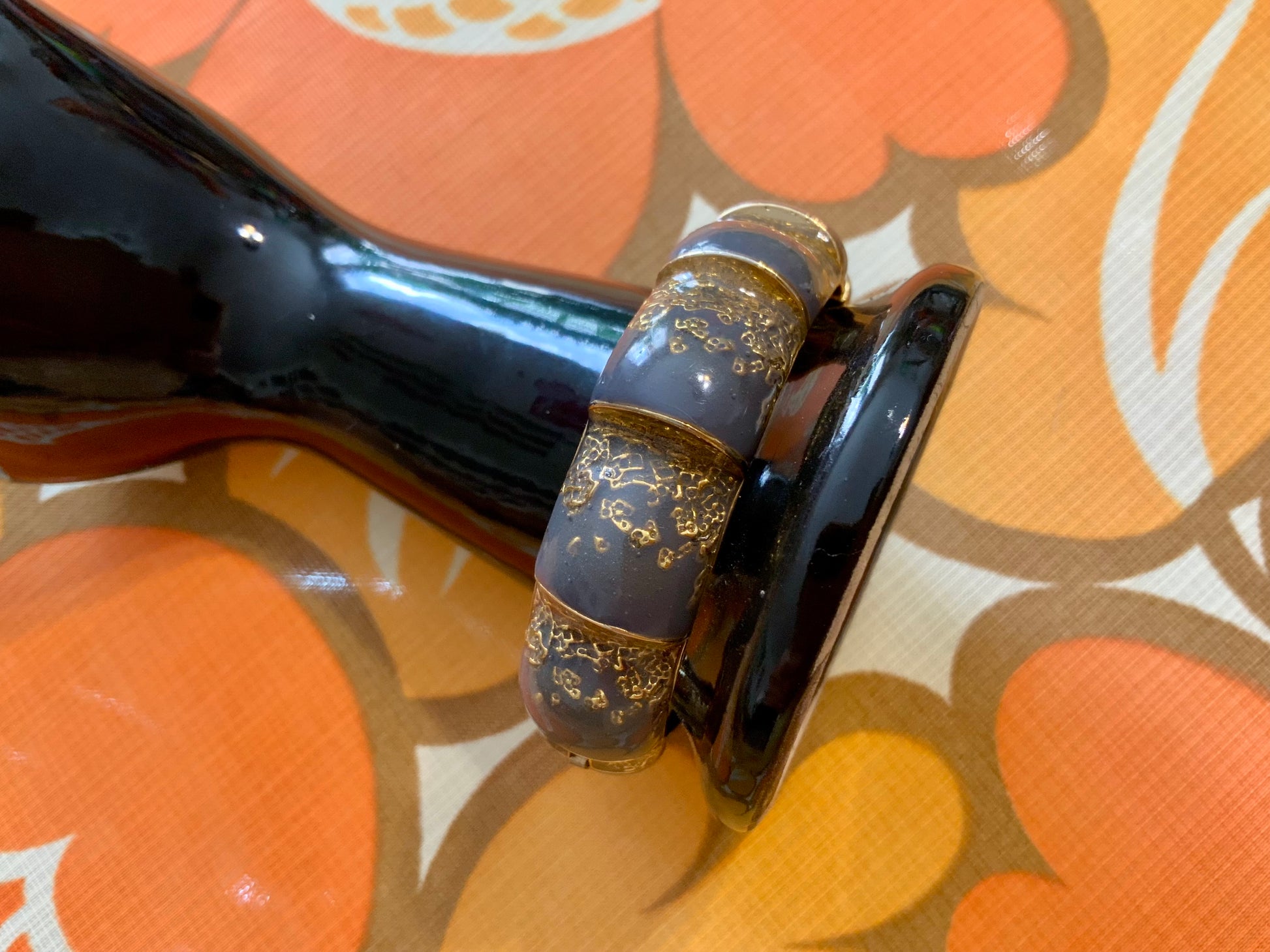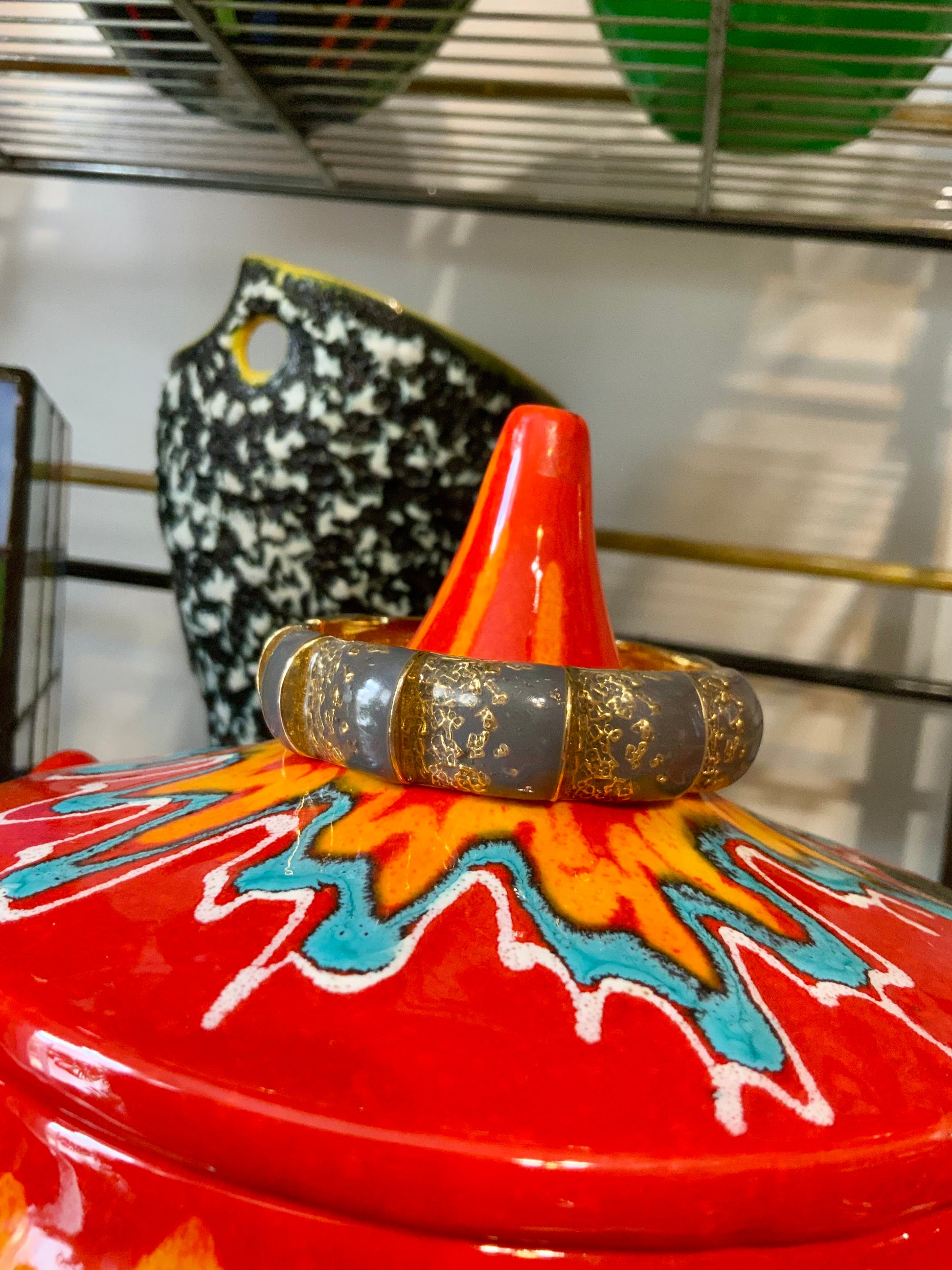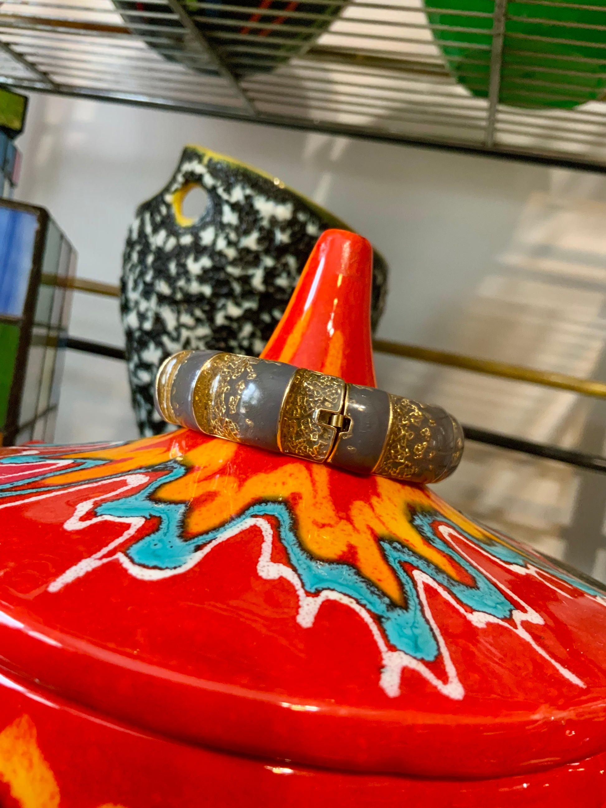 Sublime Bracelet Balenciaga Jonc Vintage en Émail Gris et Or - Etat excellent.