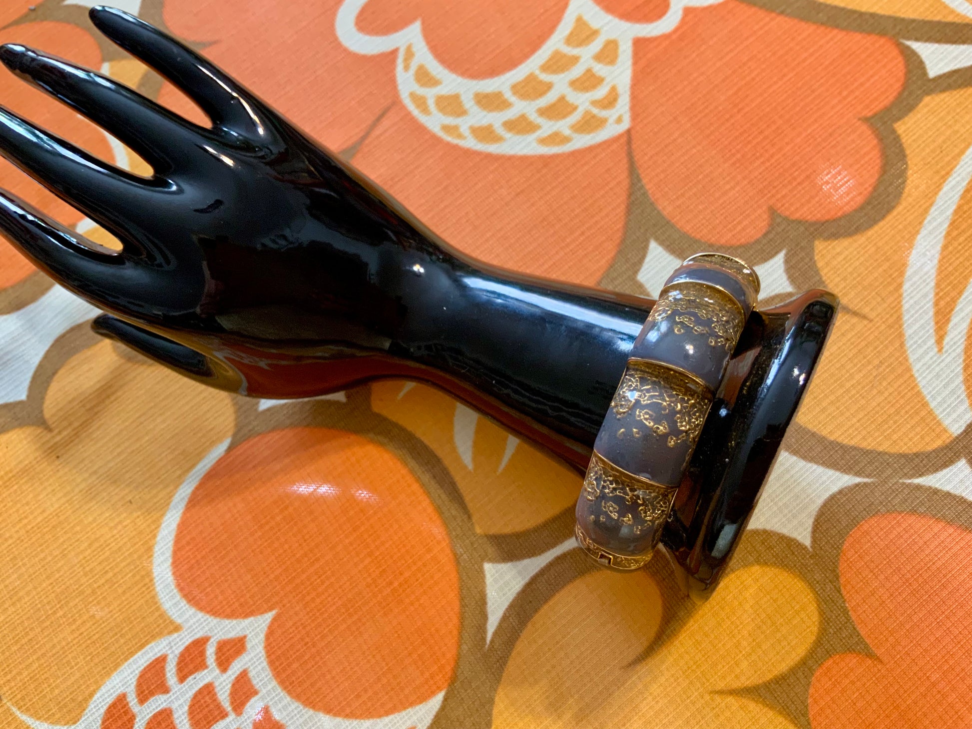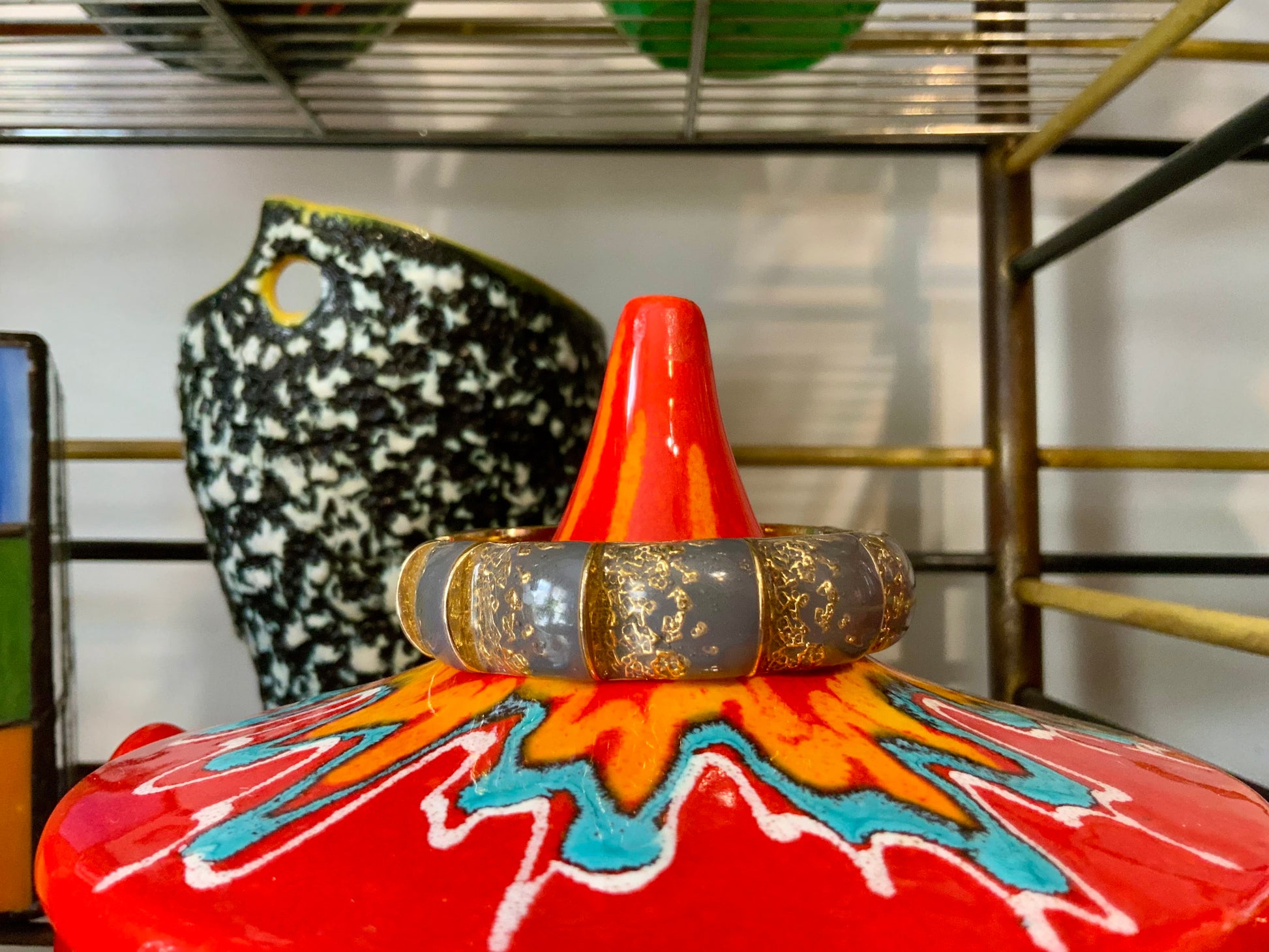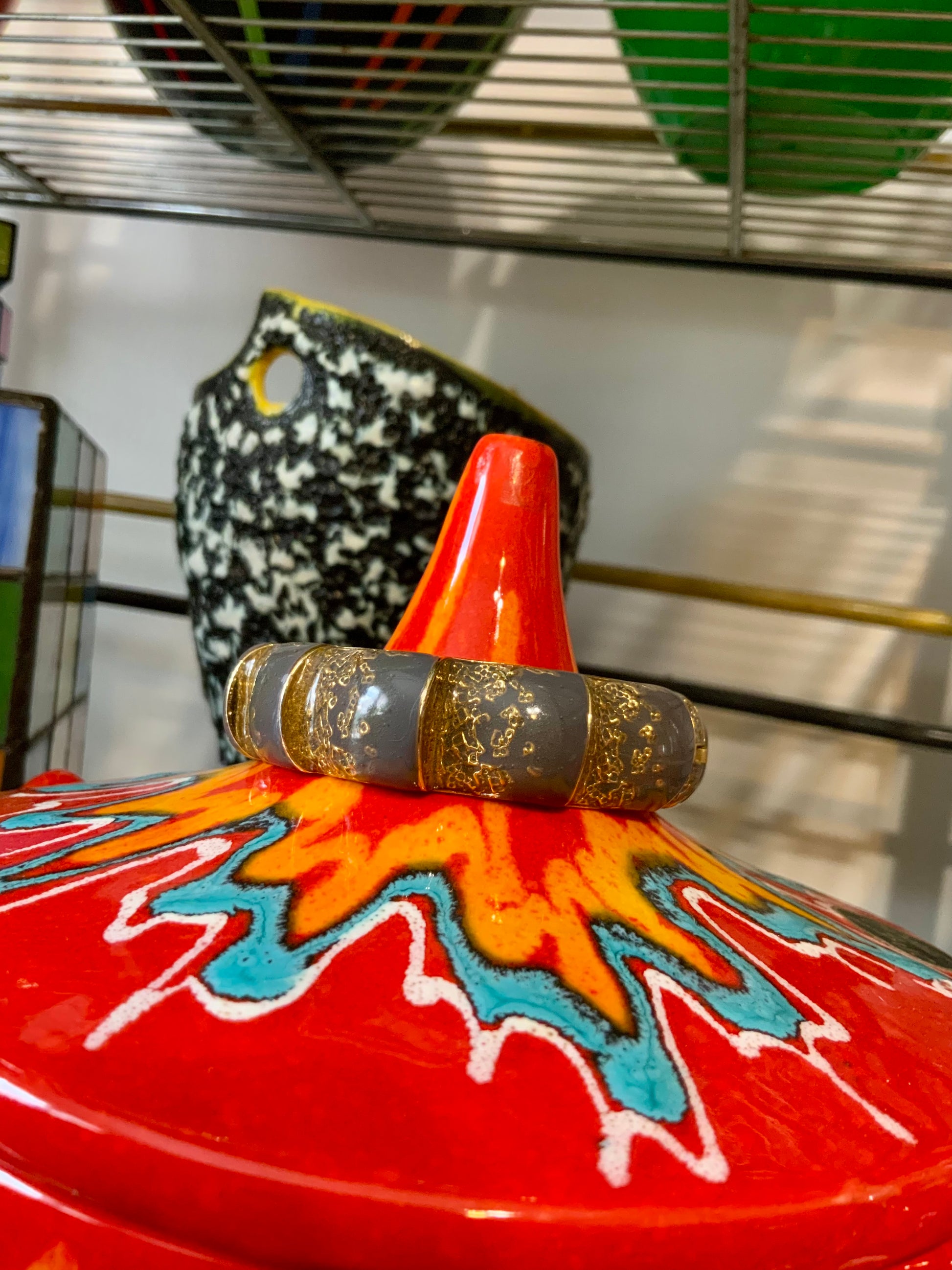 Sublime Bracelet Balenciaga Jonc Vintage en Émail Gris et Or - Etat excellent.