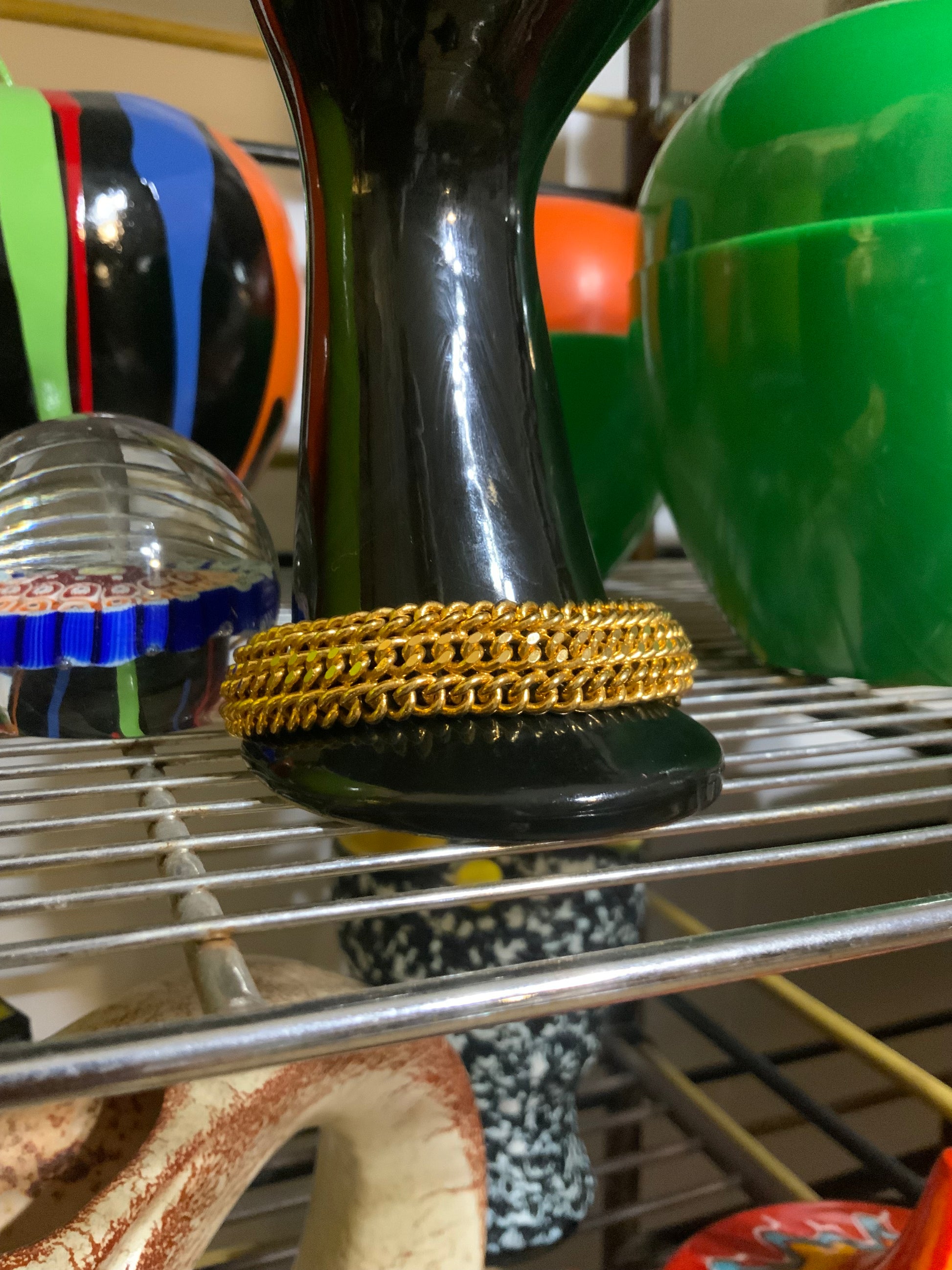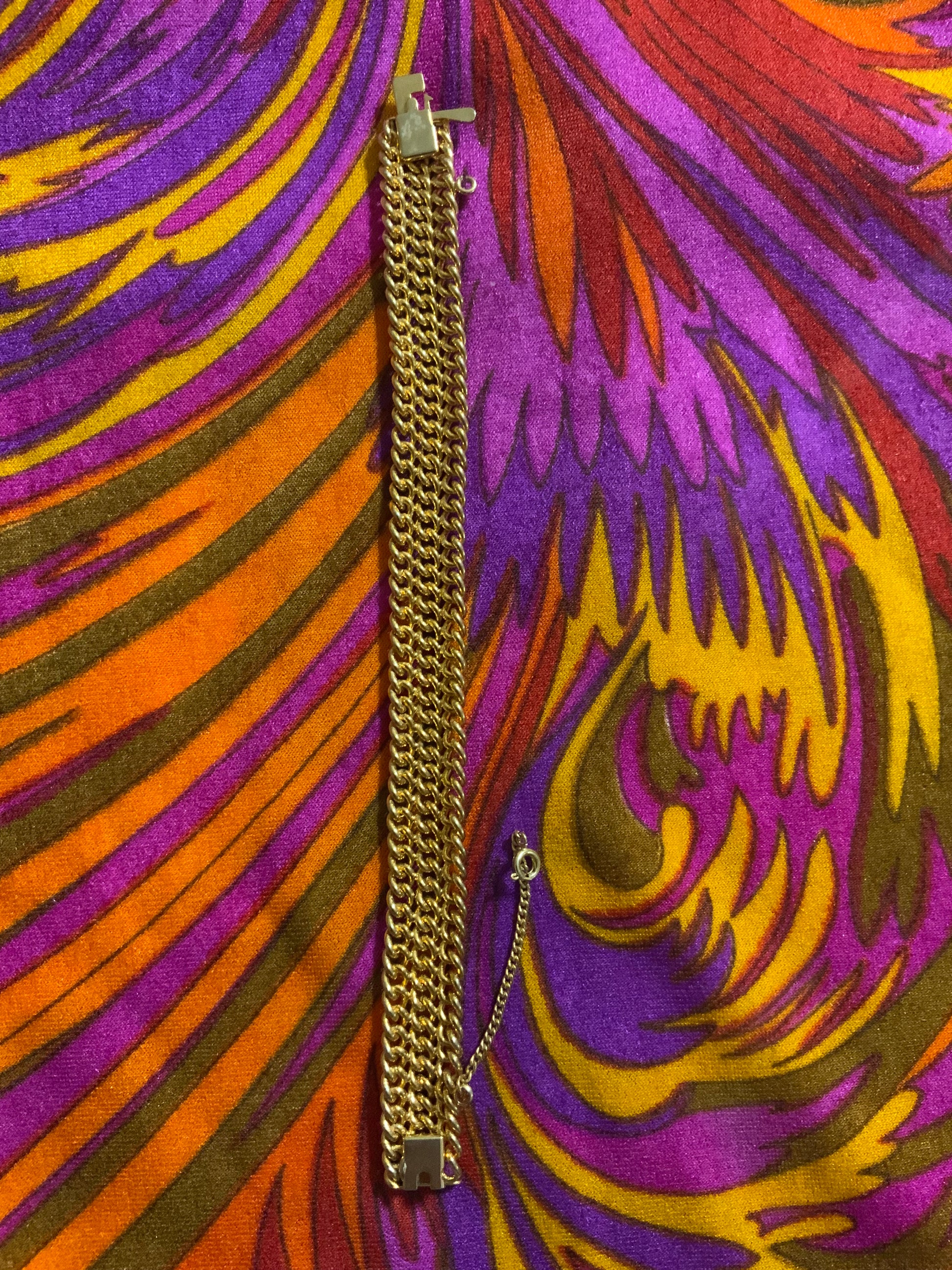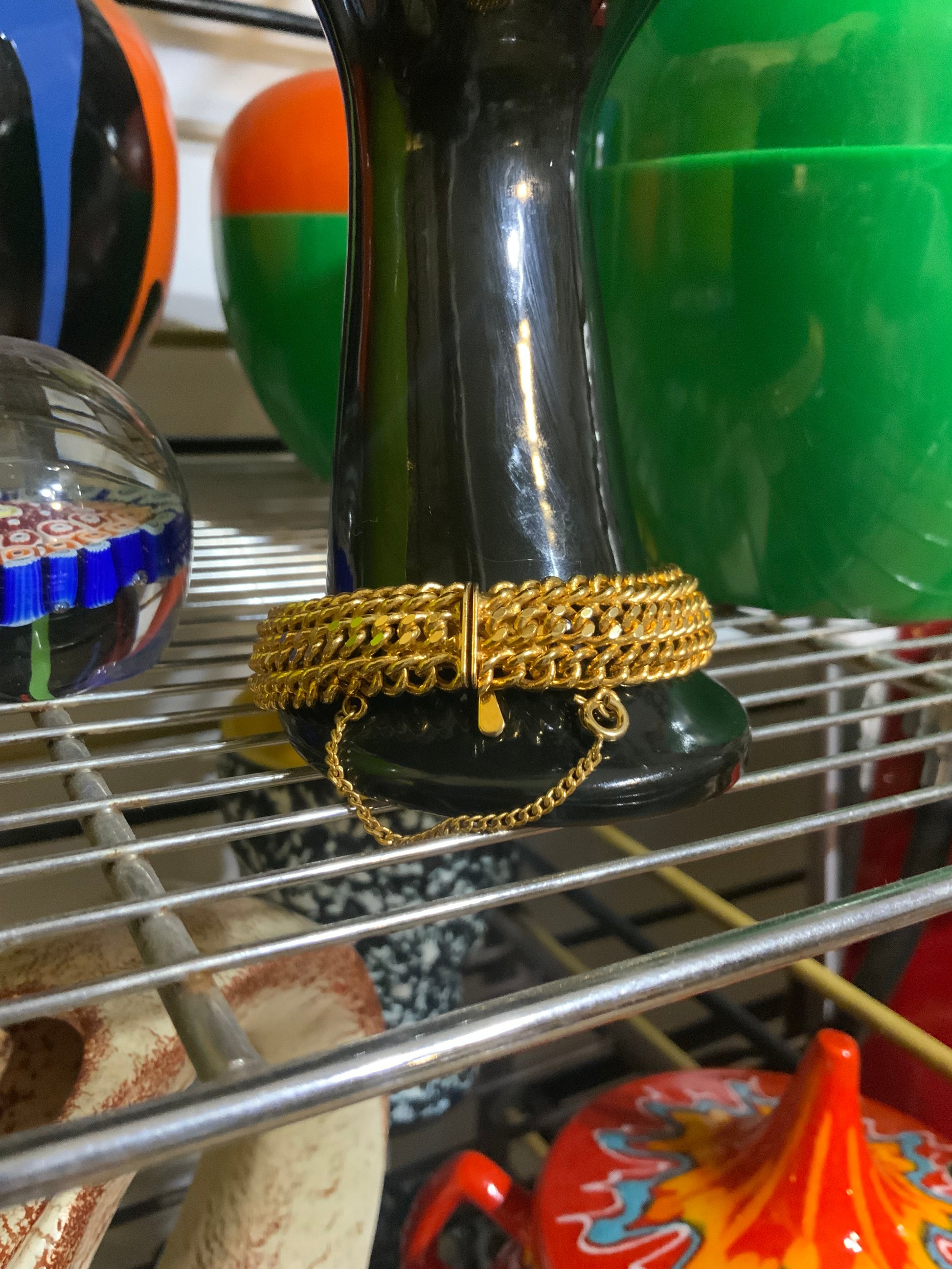Bracelet Mailles Plaqué Or Vintage- Un grand classique magnifique ! Très bon état juste l’attaché de la chaine de sécurité à revoir ou à enlever car il se ferme parfaitement sans.