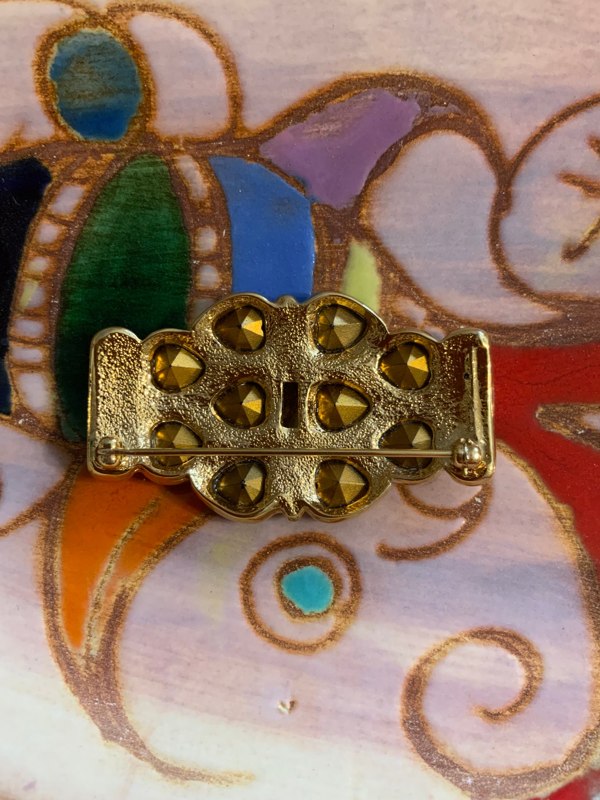 Très belle broche Vintage métal doré et strass pierres formes coeurs colorés - Excellent état .
