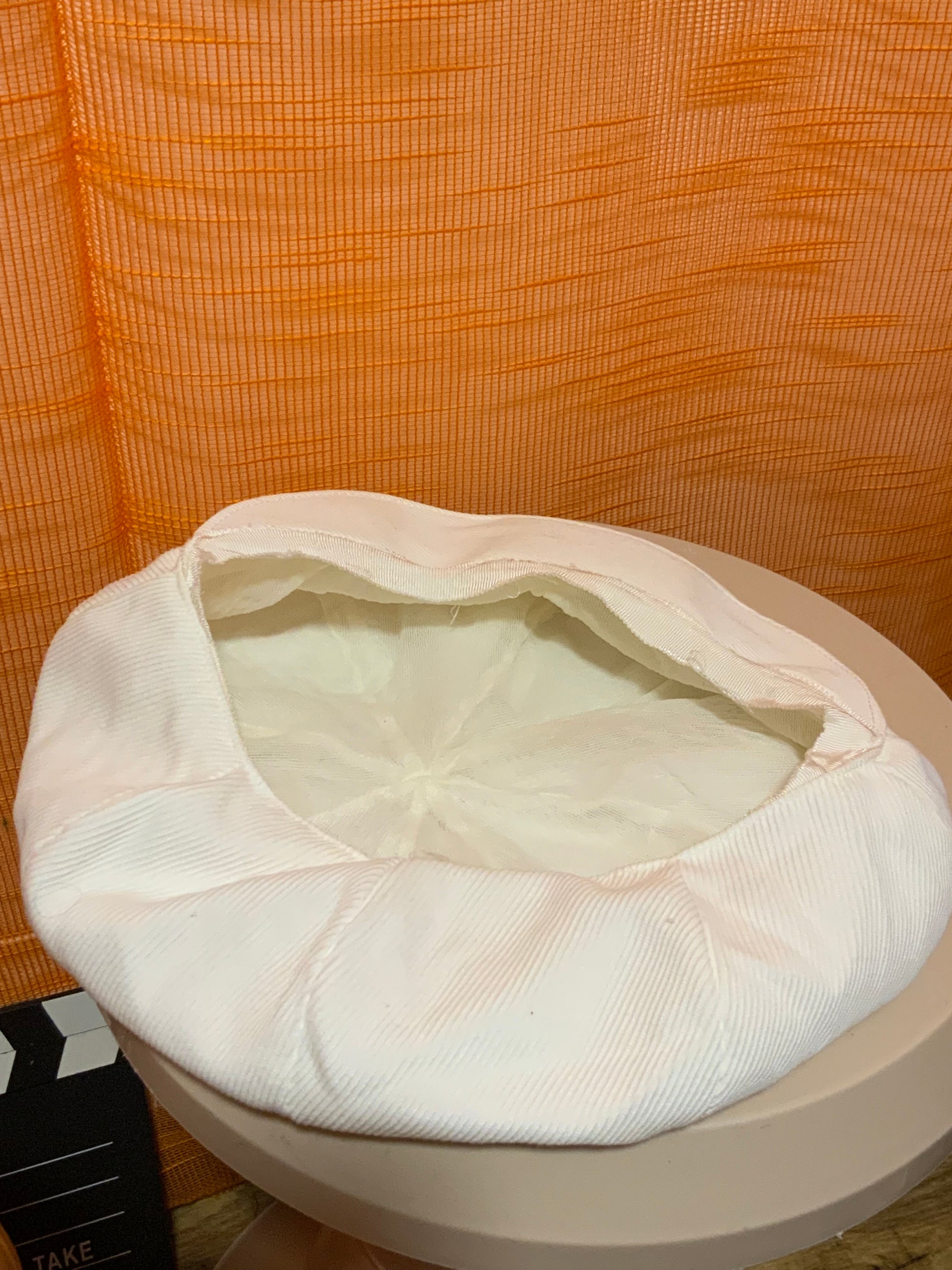 Casquette Gavroche blanche confection main 1970 en excellent état - Taille 55.