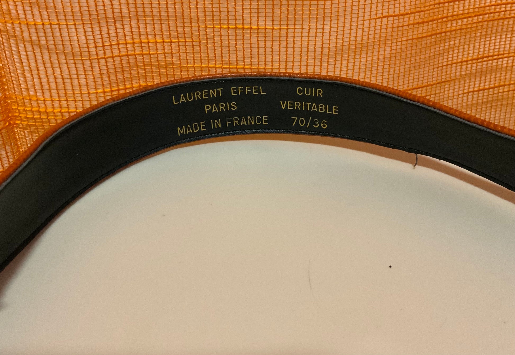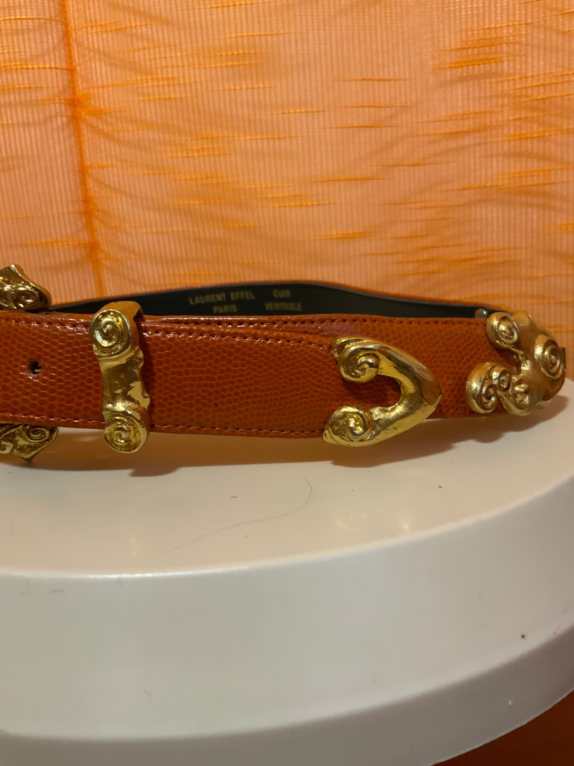 Ceinture cuir marron brique boucles métal dorées Made in France Vintage Laurent Effel, Stock de magasin-