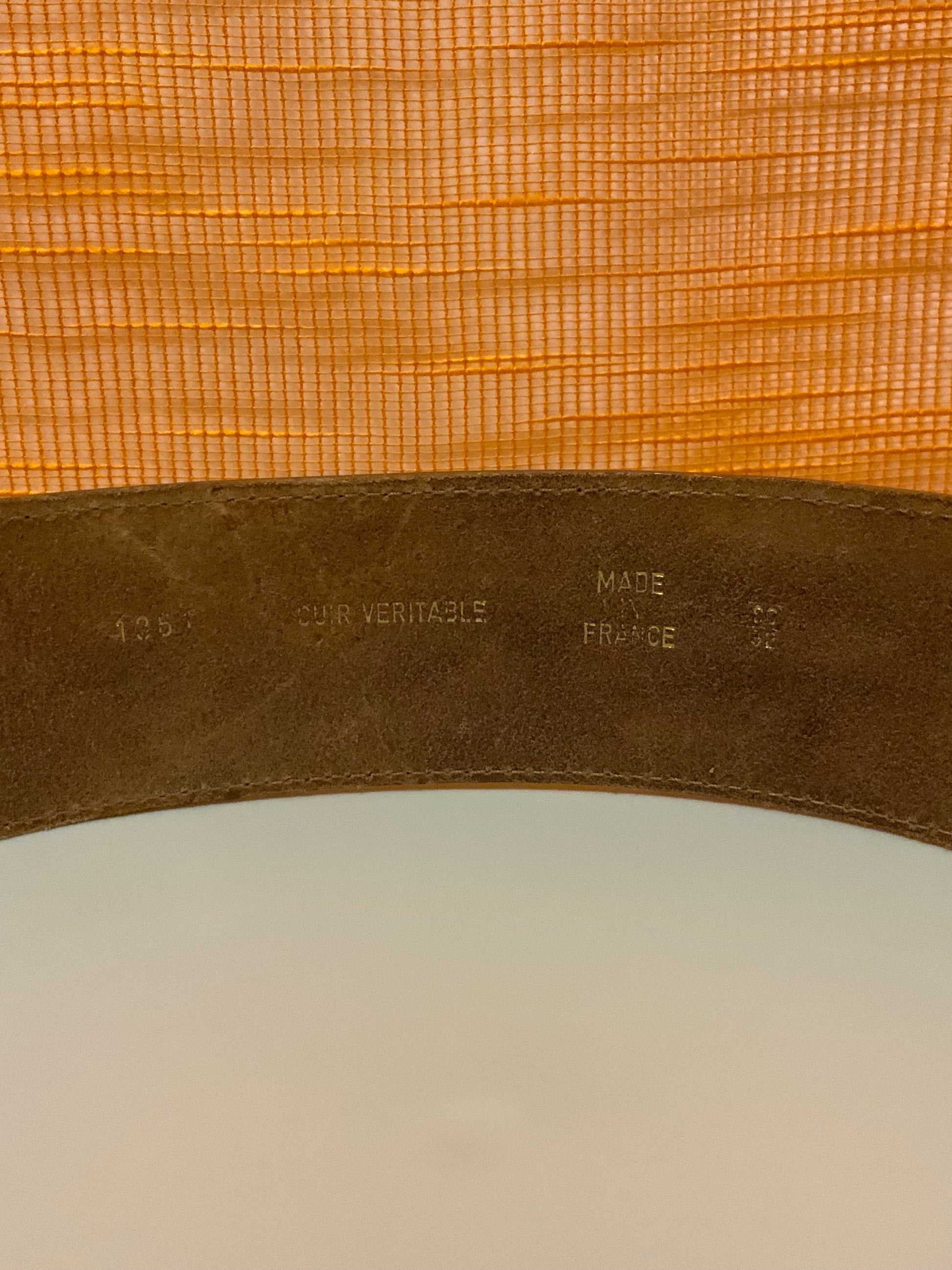 Tres belle ceinture western Vintage 80/90 Made in France Cuir véritable marron camel - et boucle métal argenté -