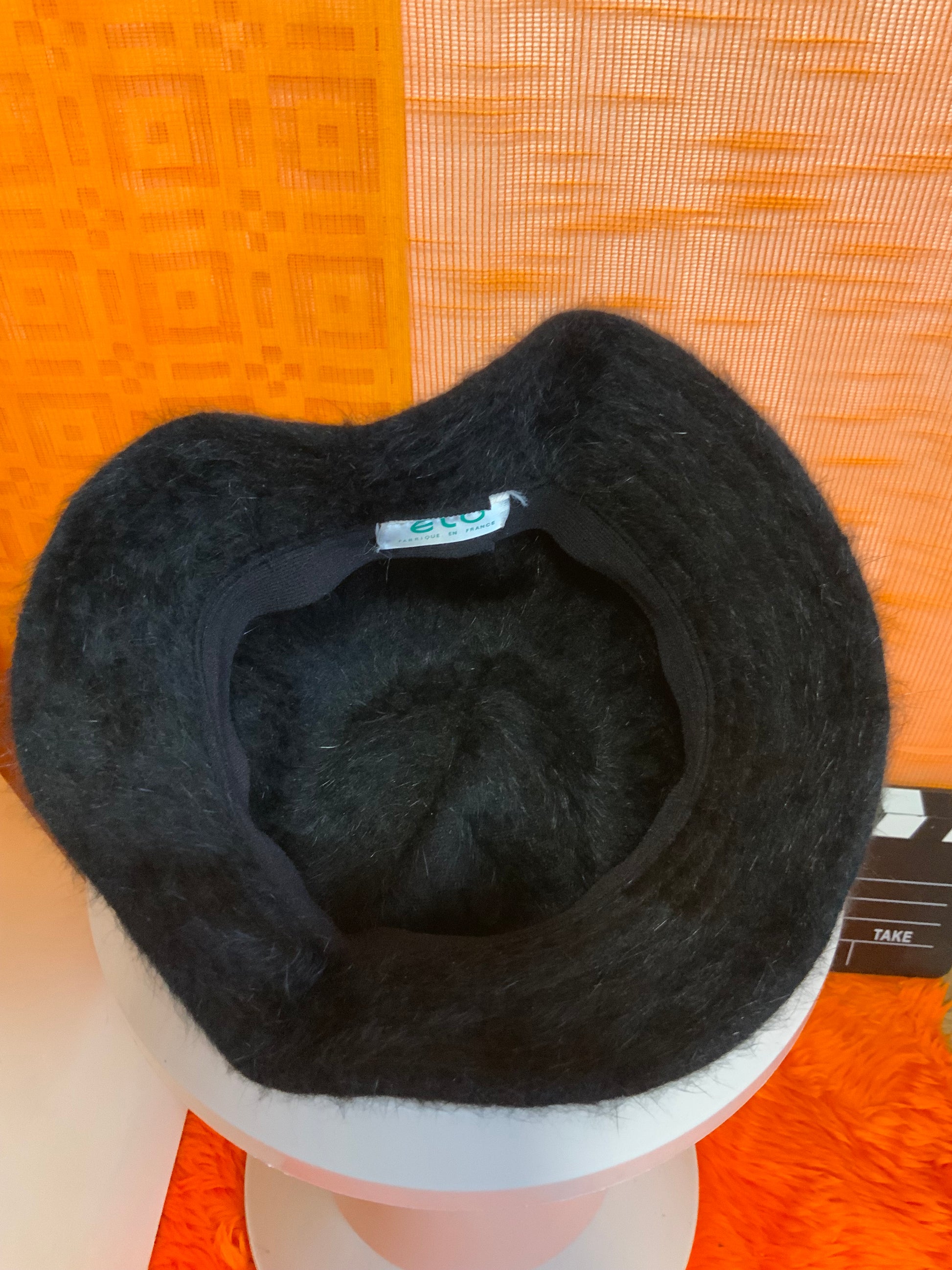 Tres beau chapeau cloche tout laine angora, Bob - Ancien avec étiquette intérieure ELO fabriqué en France -