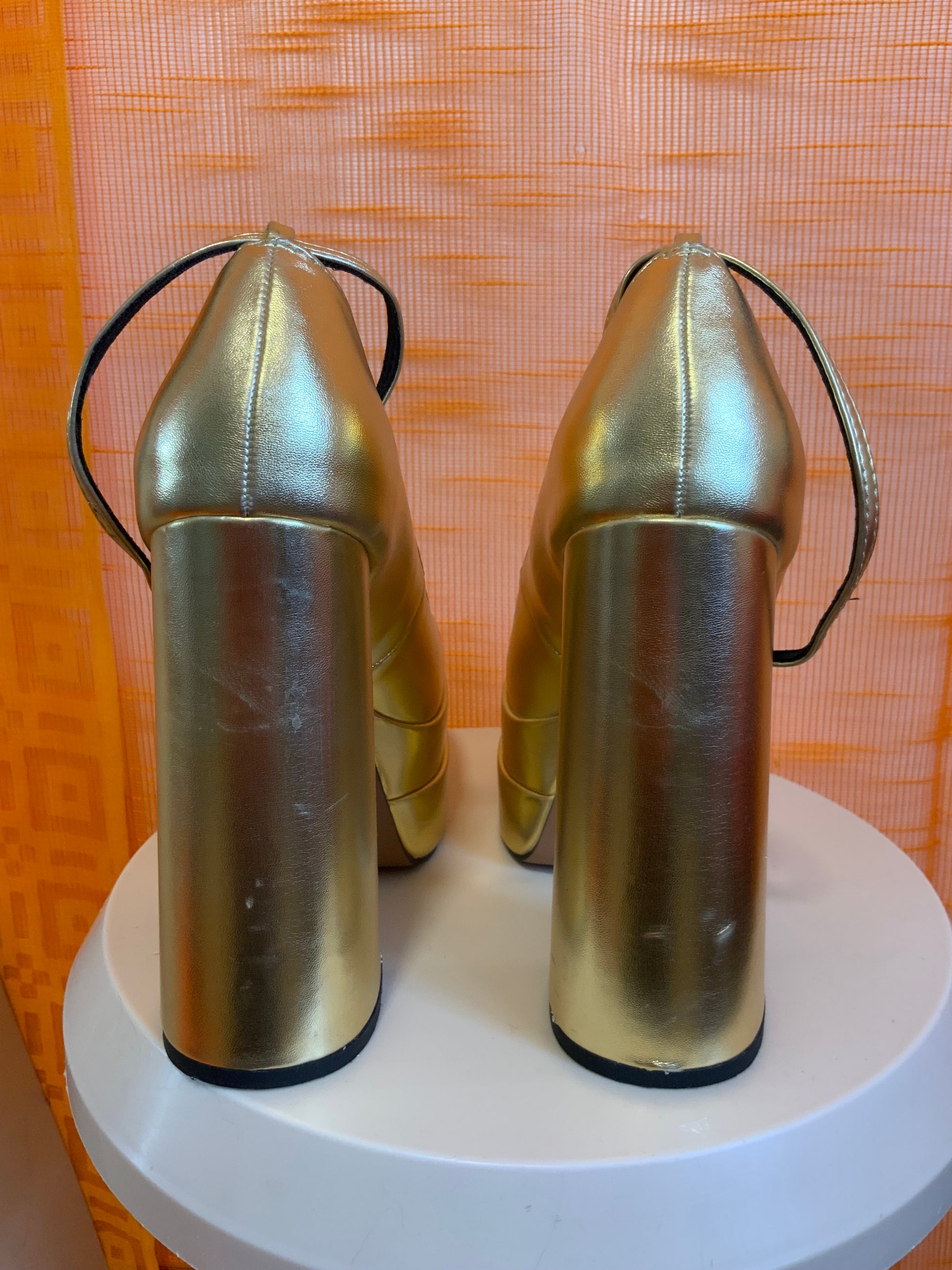 Chaussures à talons hauts et plateformes Couleur Dorée en Cuir - Lanières amovibles.