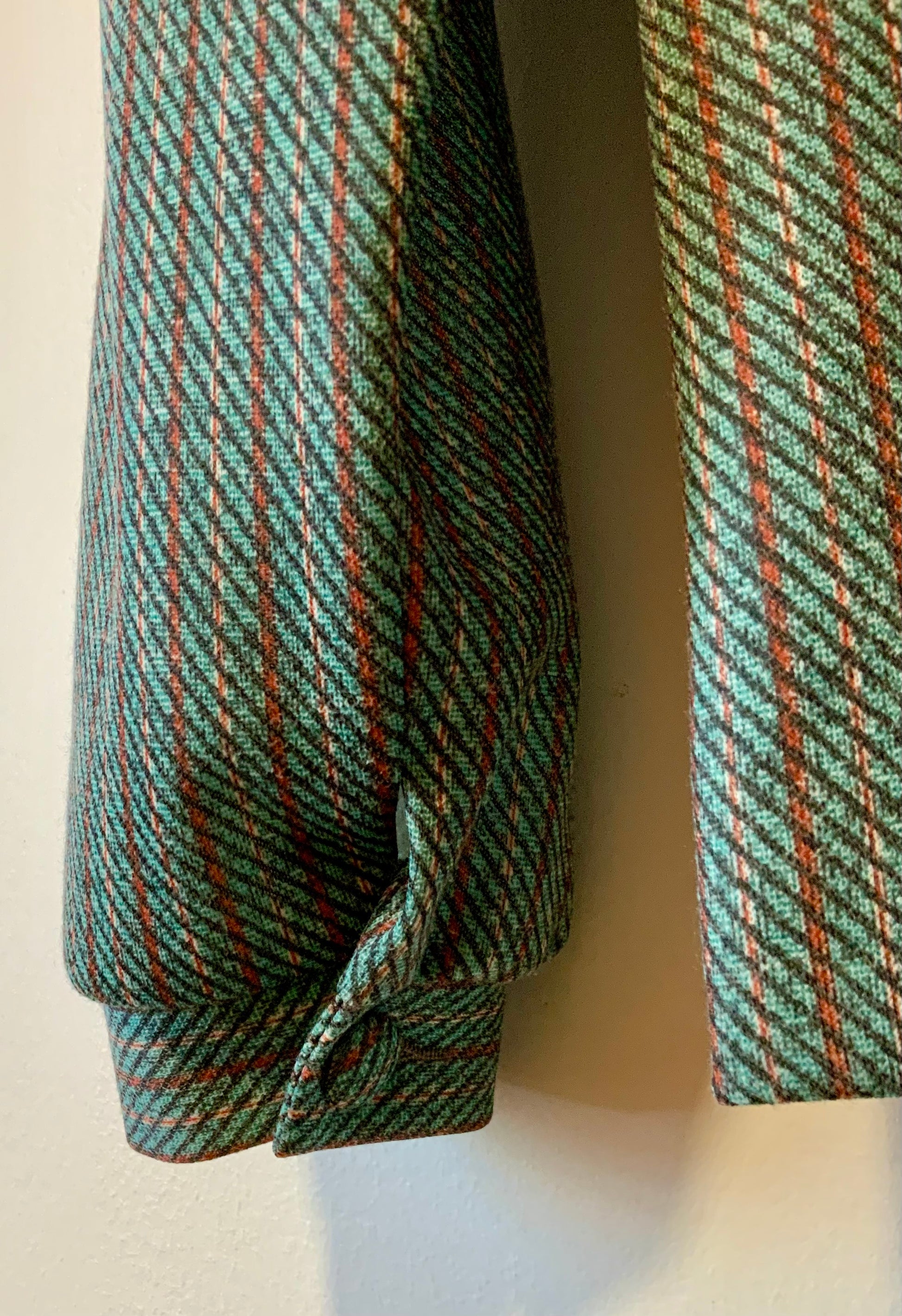 Tres belle et originale Chemise Vintage Seventies France Marque Dodia Paris Motifs rayures originales - vert bleu rouge, Excellent état.