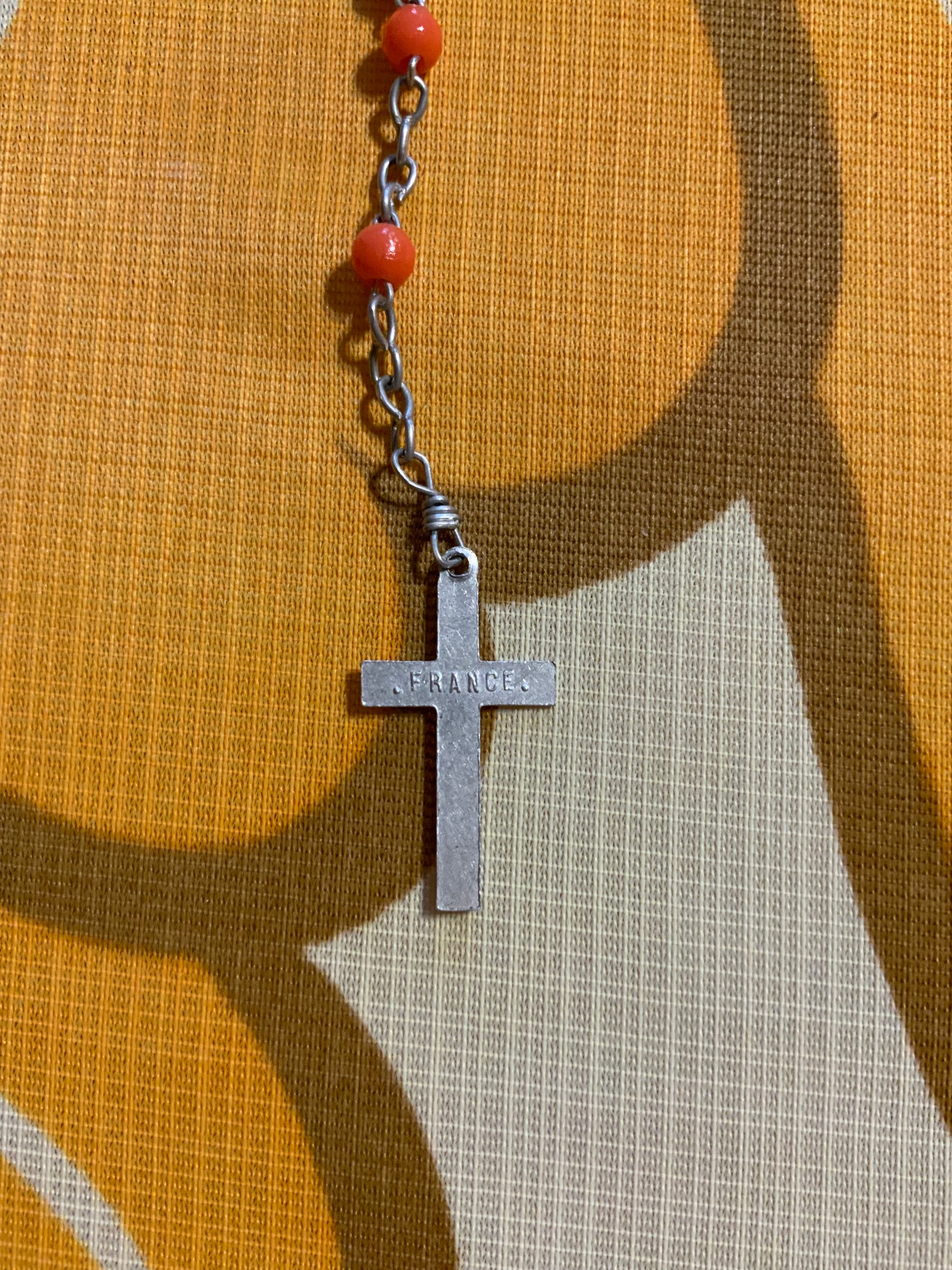 Superbe Chapelet avec petites boules oranges et métal argenté Authentique Vintage en excellent état.