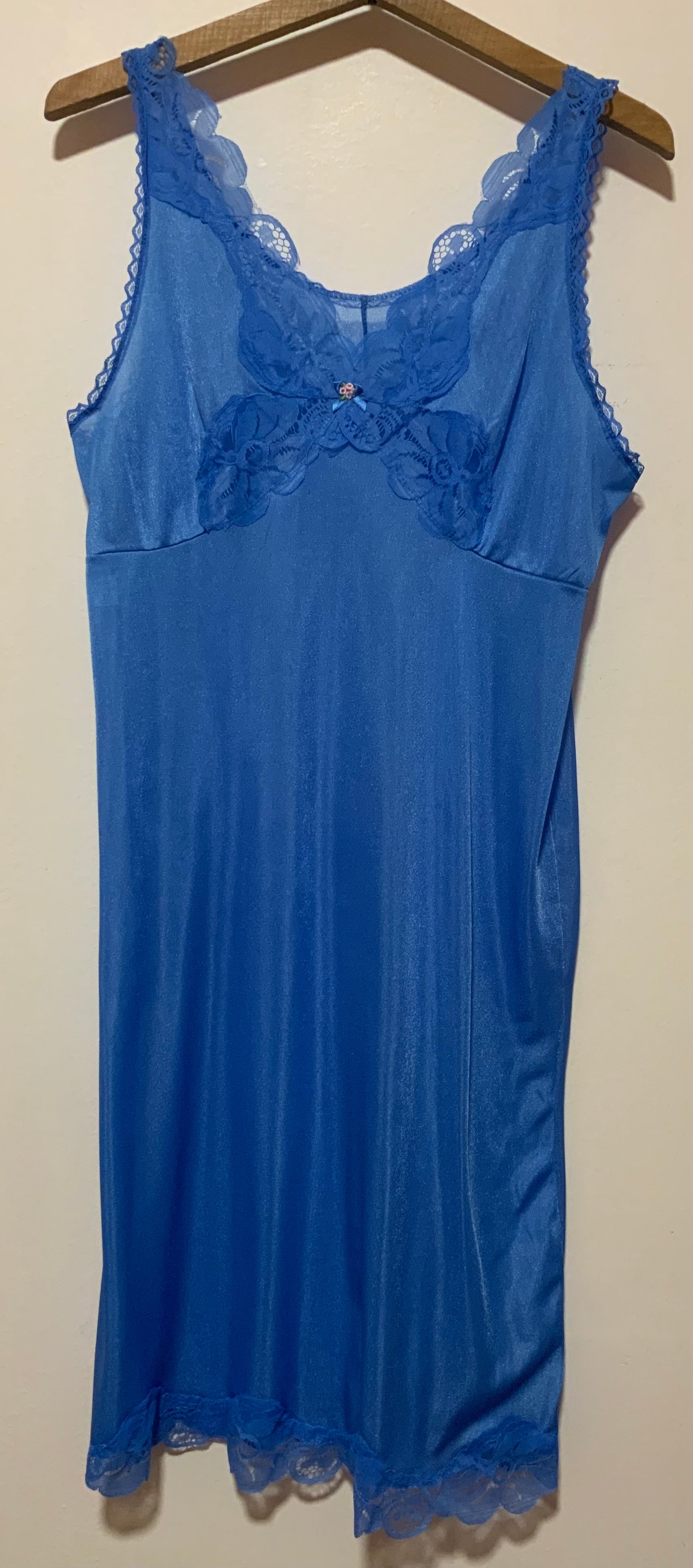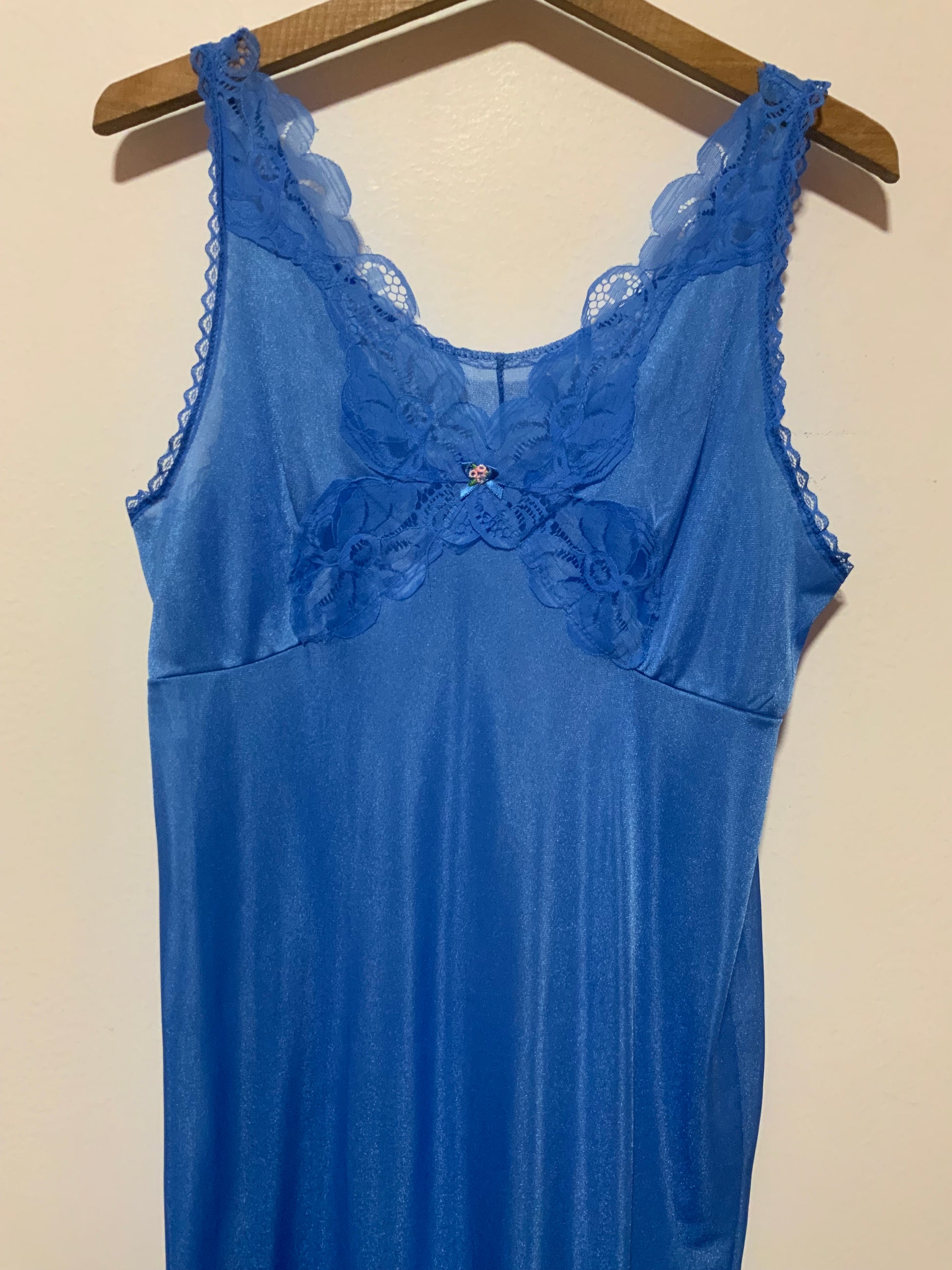 Combinaison Robe bleue Dentelle et petite fleur - nylon Vintage 1980 Dentelle - Excellent état 100% polyamide - À porter en chemise de nuit, sous une robe ou en Robe egalement.
