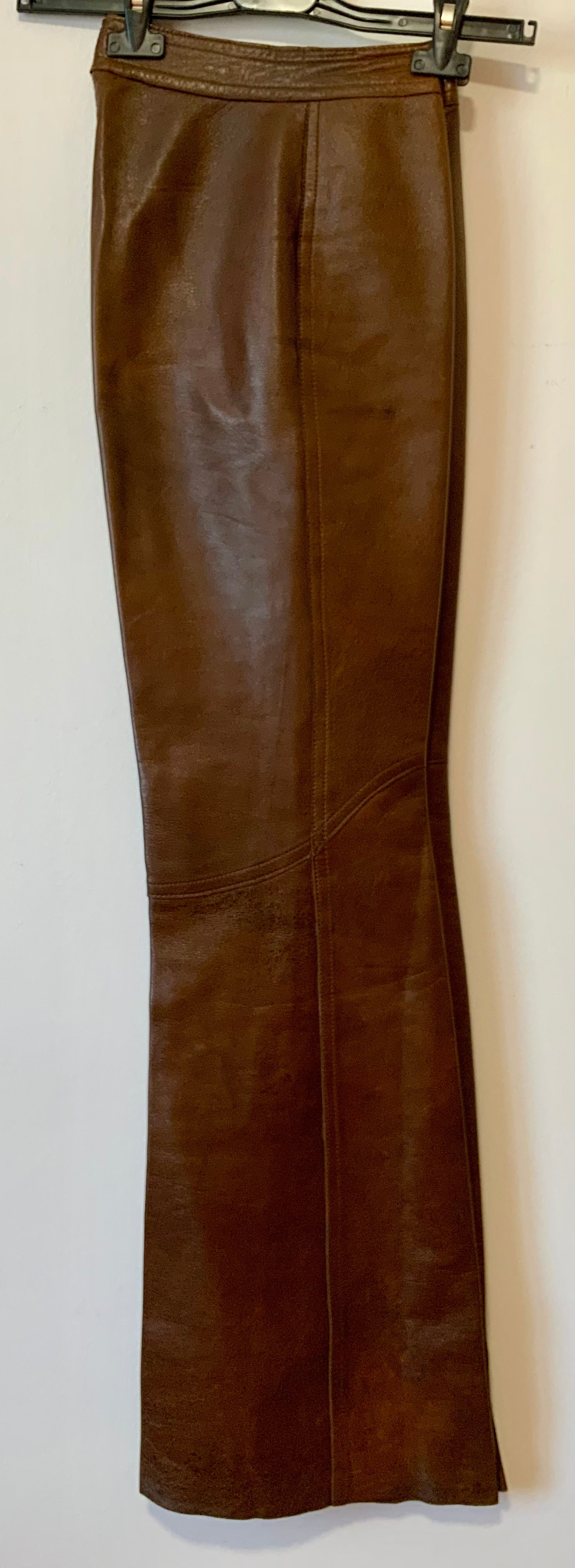 Incroyable Pantalon 70pants Pattes d’éléphant Flare Cuir Marron Unique