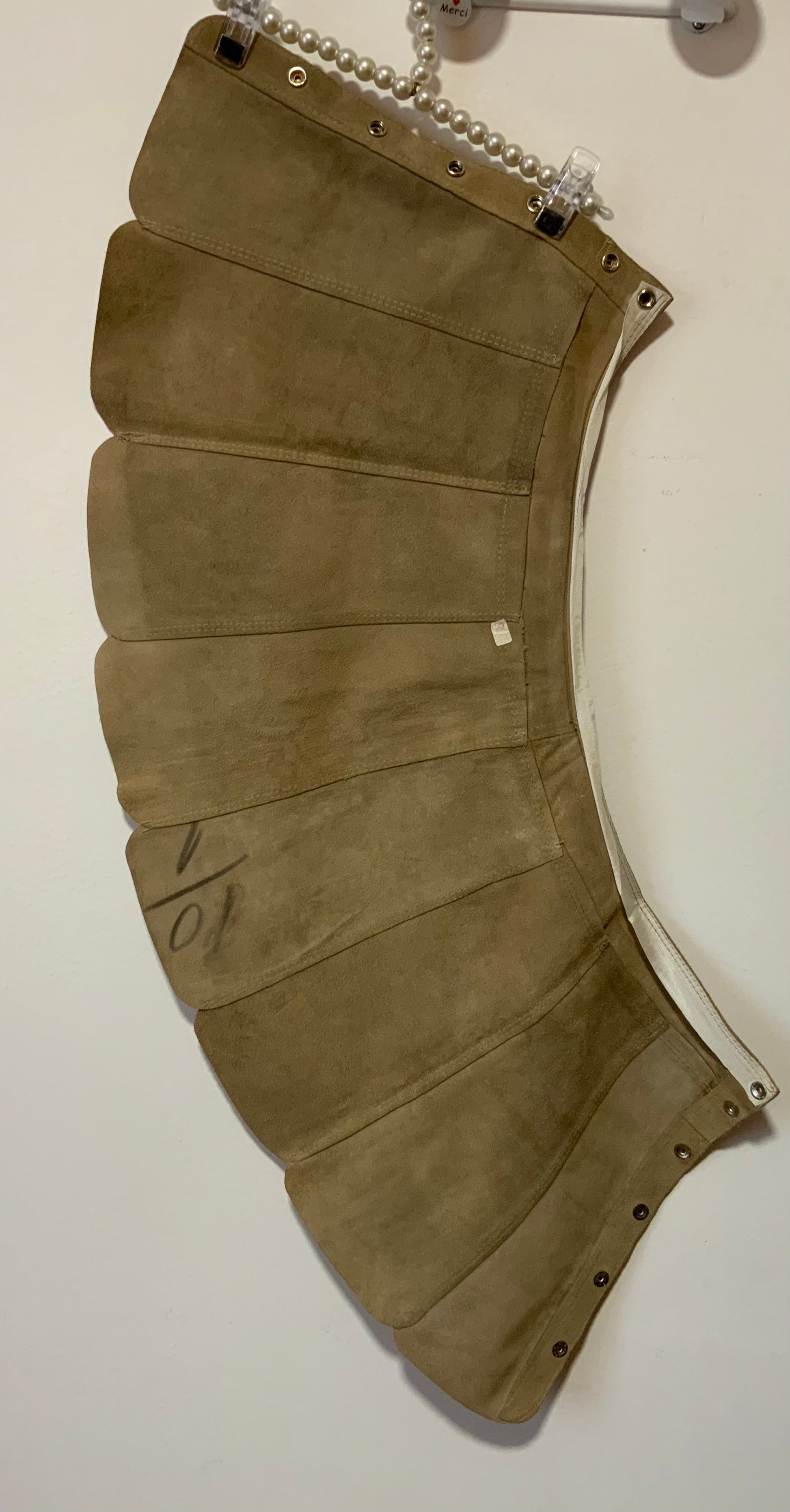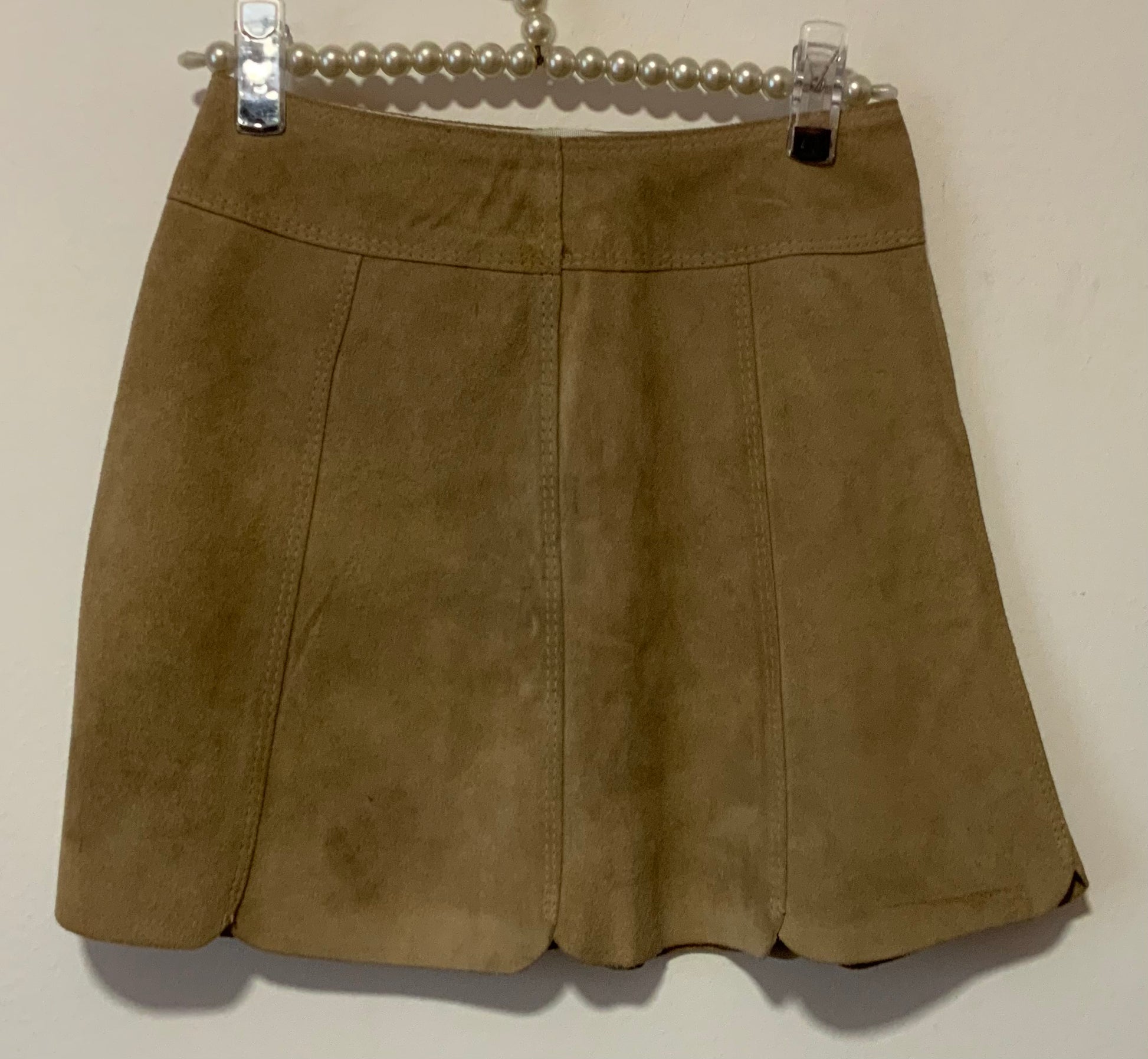 La mini jupe boutonnée Seventies Daim Iconique beige création Fourreur Confection Creation 1970 Excellent état - Boutons pressions en metal argenté- gros daim d une immense qualité -