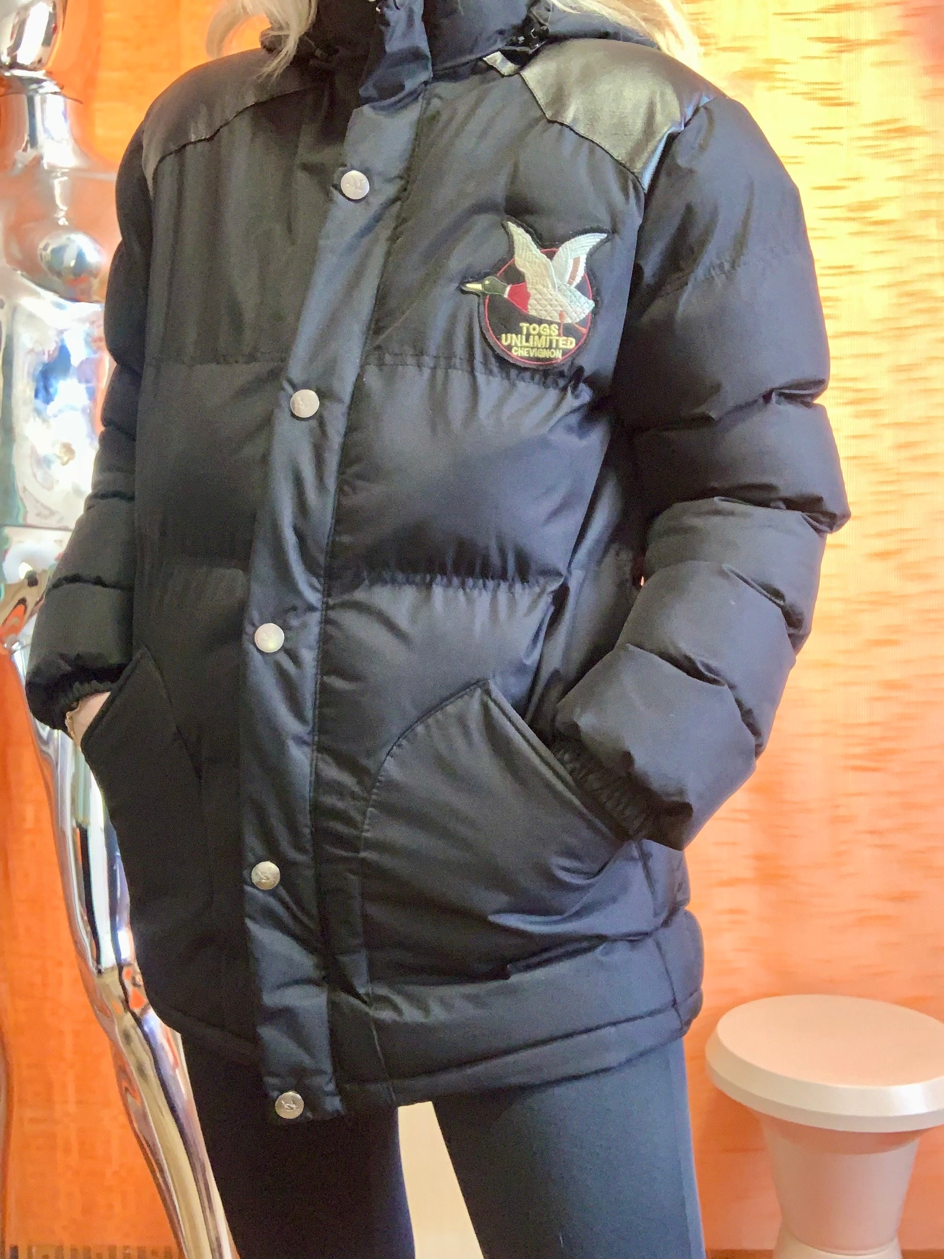 Le Tog’s Unlimited Chevignon Vintage 2000’ Canard sauvage et logo brodé avec capuche amovible - État excellent, très tendance dans les années 90’ Date des 2000’ Modele 16 ans mais convient parfaitement aux taille 38 et inférieures - Couleur noir, Chevignon kids.