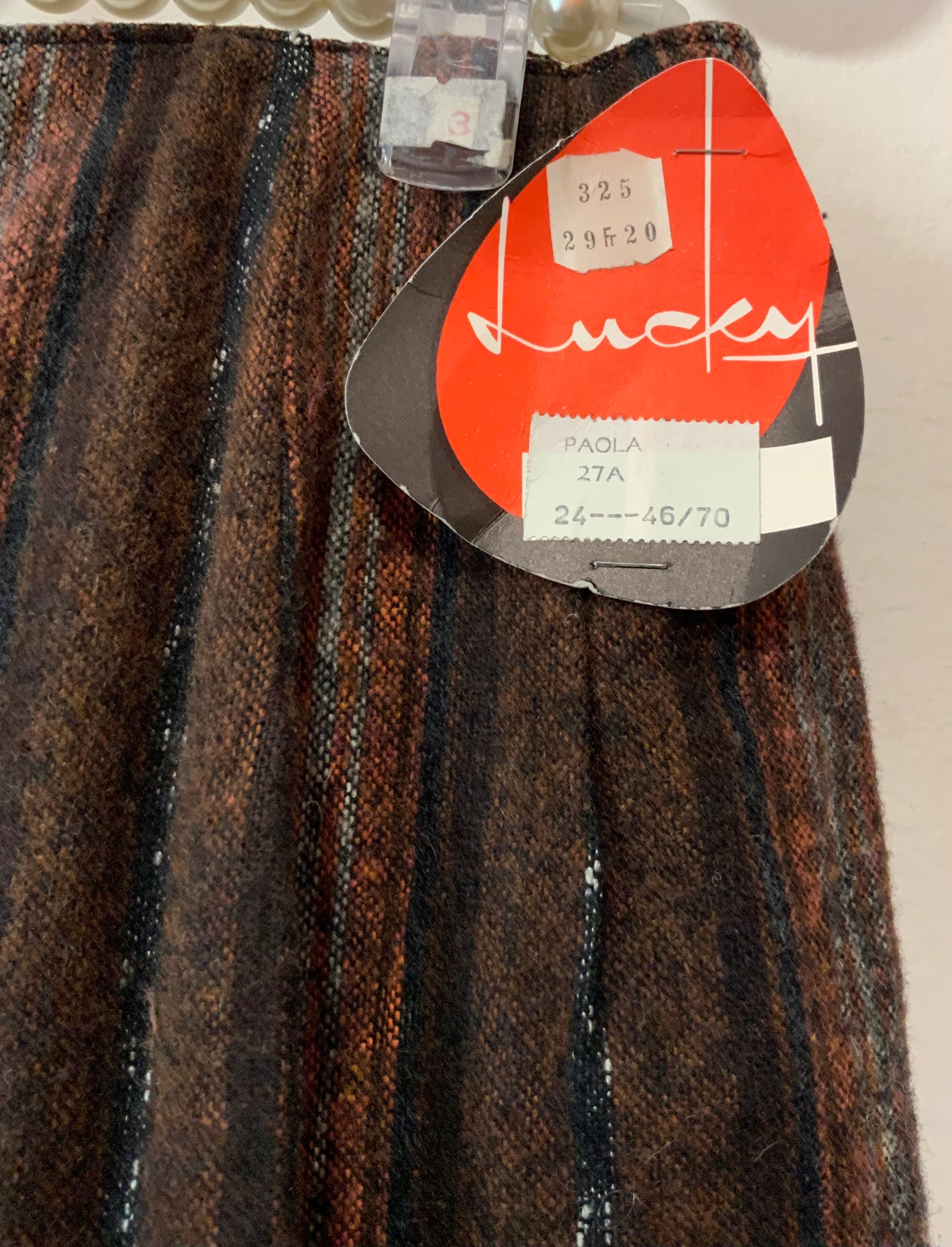 Tres beau pantalon droit taille haute à rayures Vintage 1980 avec selon Etiquette de vente Marque Lucky Modèle Paola - Laine et coton mais ne pique pas - 0 défaut avec zip côté.