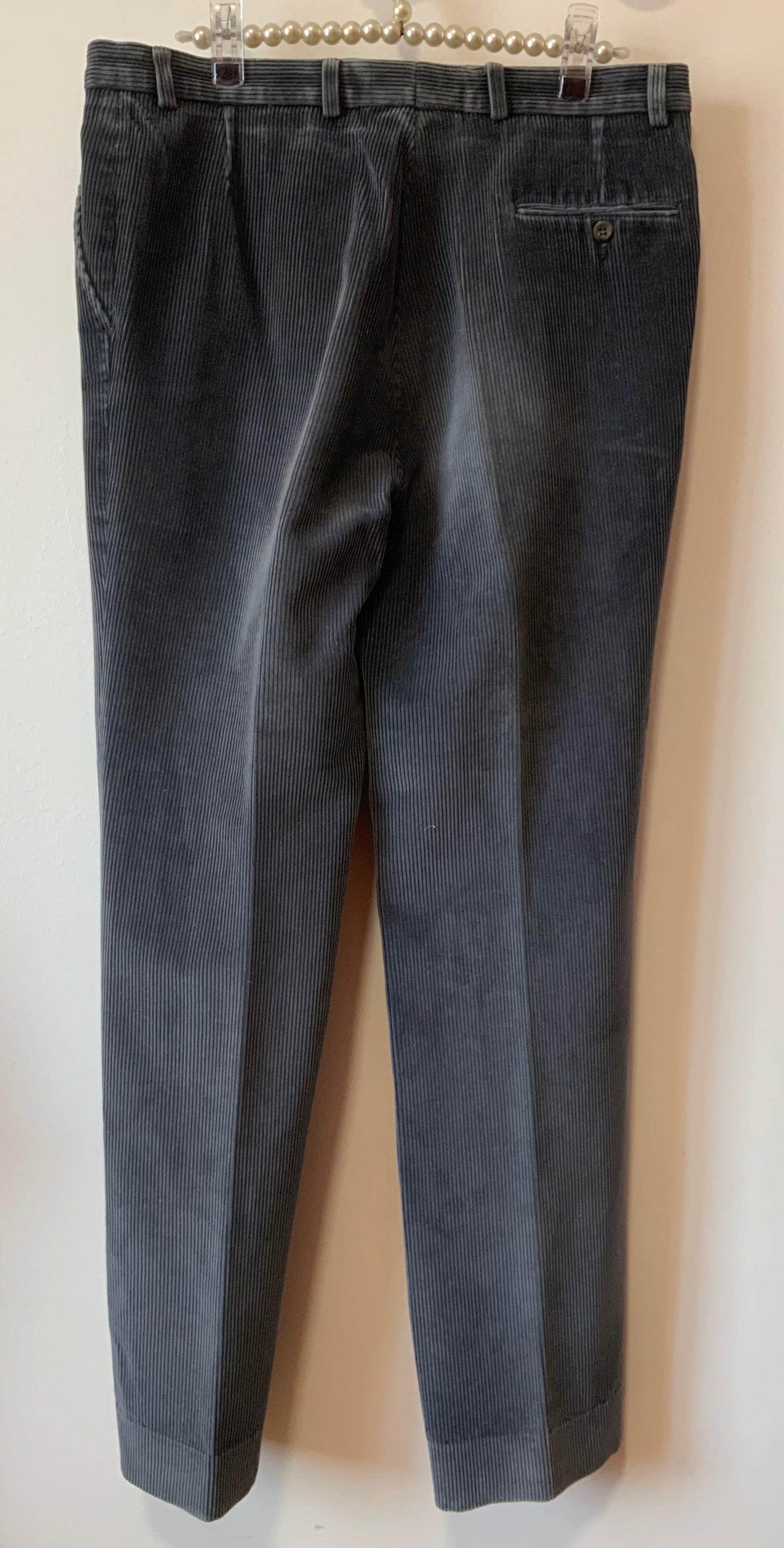 Pantalon classique en gros velours côtelé gris avec poches côte et fesse - Taille extensible de chez Phillipe Montaignac France.