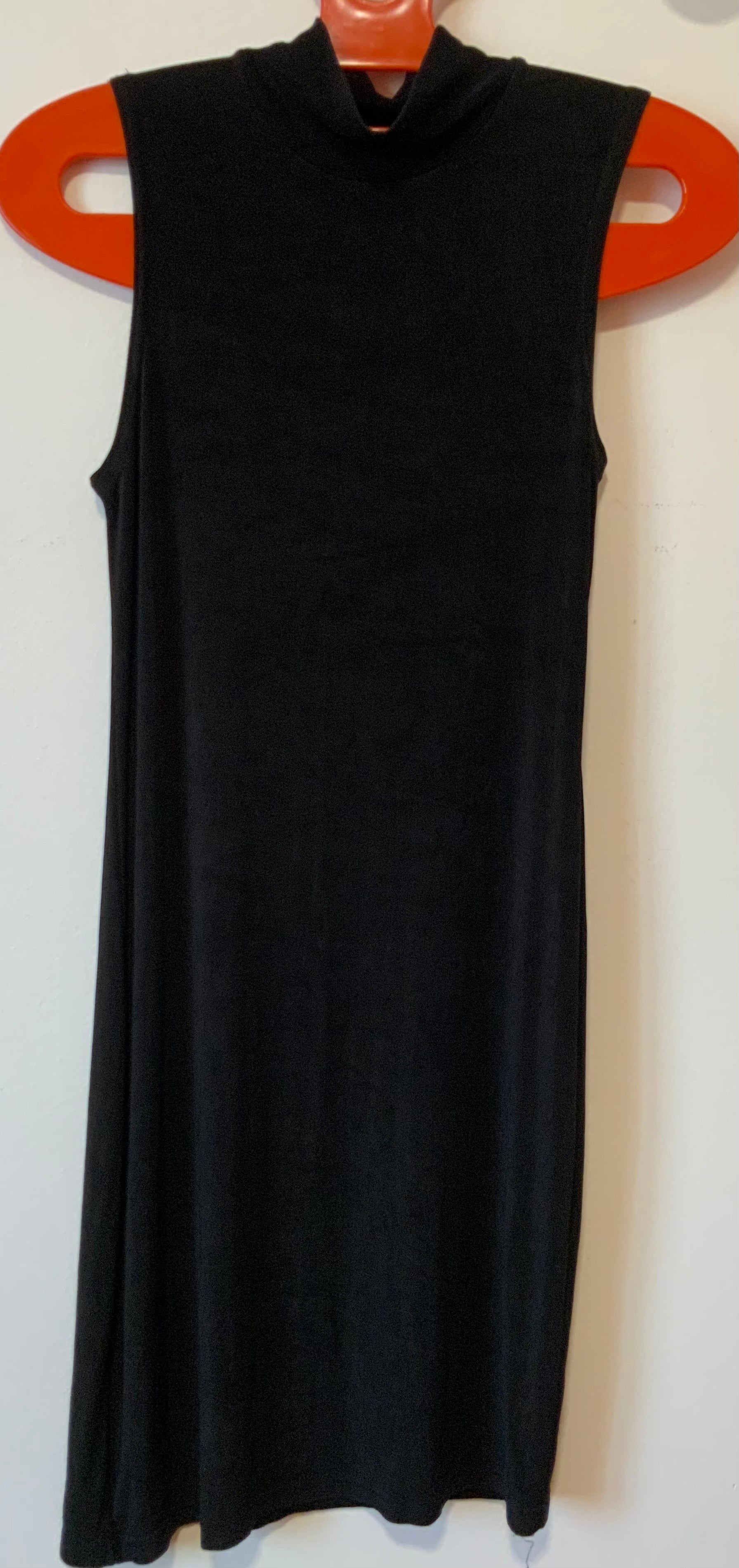 Ravissante petite robe noire près du corps avec col montant, matière très agréable 95% acétate 5% elasthanne - Excellent état.
