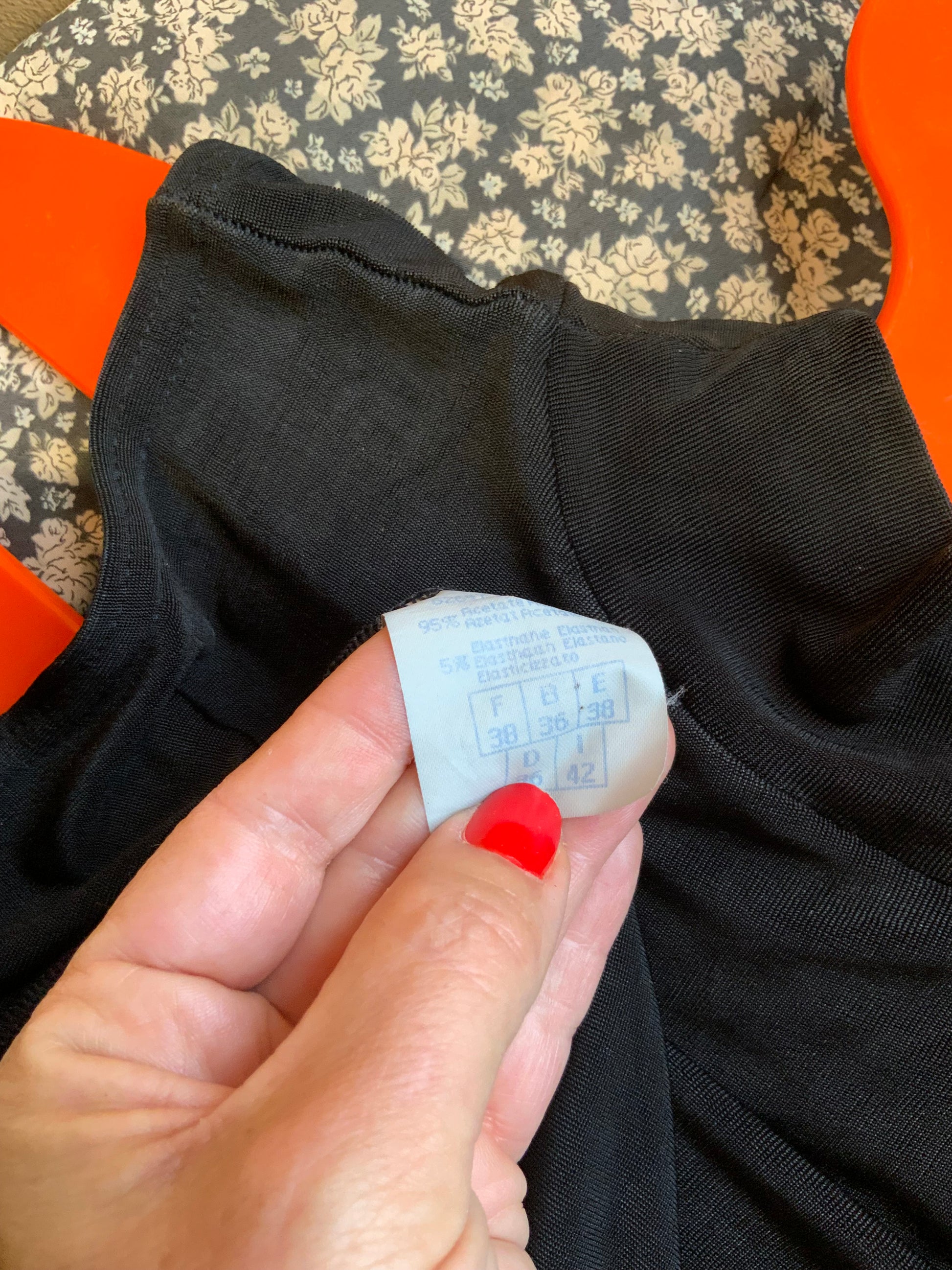 Taille 38- Ses mesures à plat = Epaules 27 Poitrine 40 Longueur 90 centimètres.