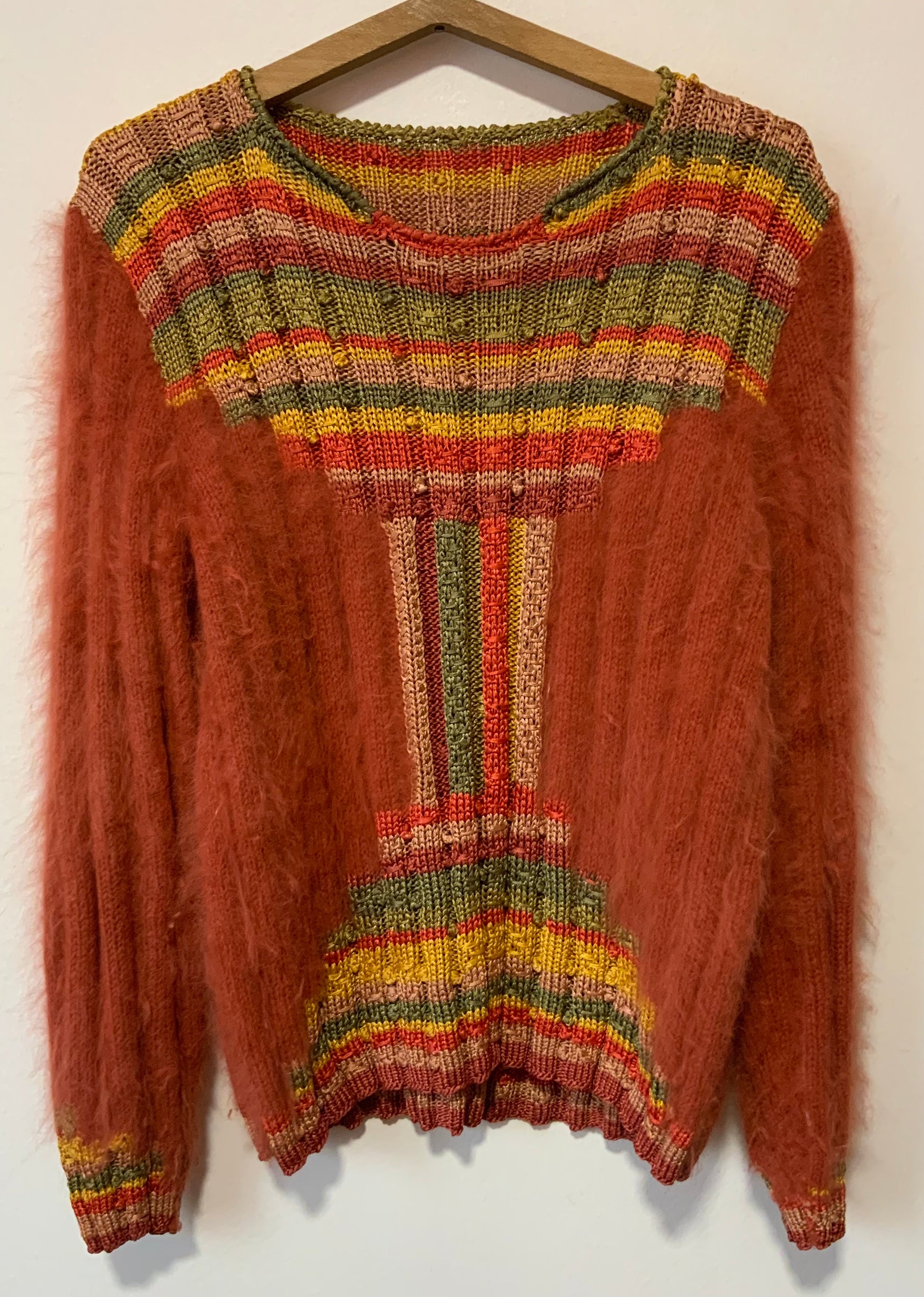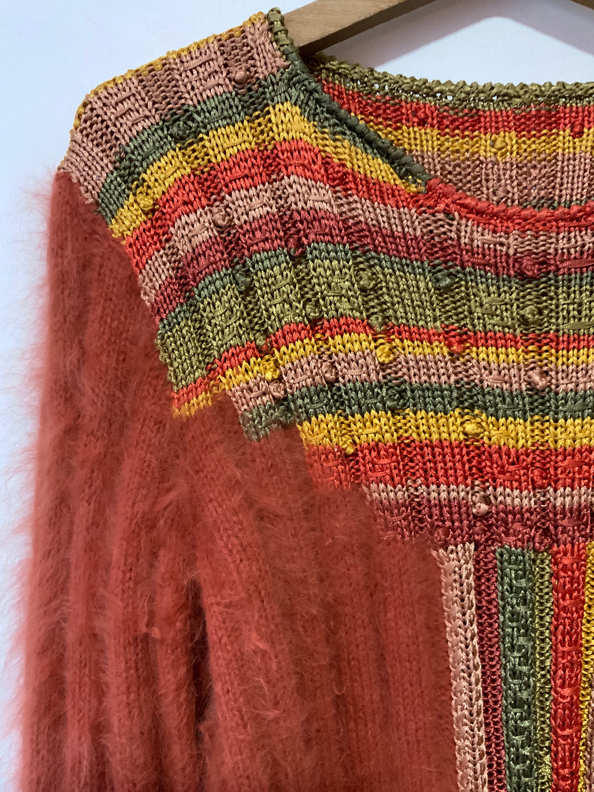 Superbe pull modèle Anny Blatt Angora orange et mélange Multicouleurs rayures - Très bon état très légères peluches - Tricoté main aucune Etoquette.