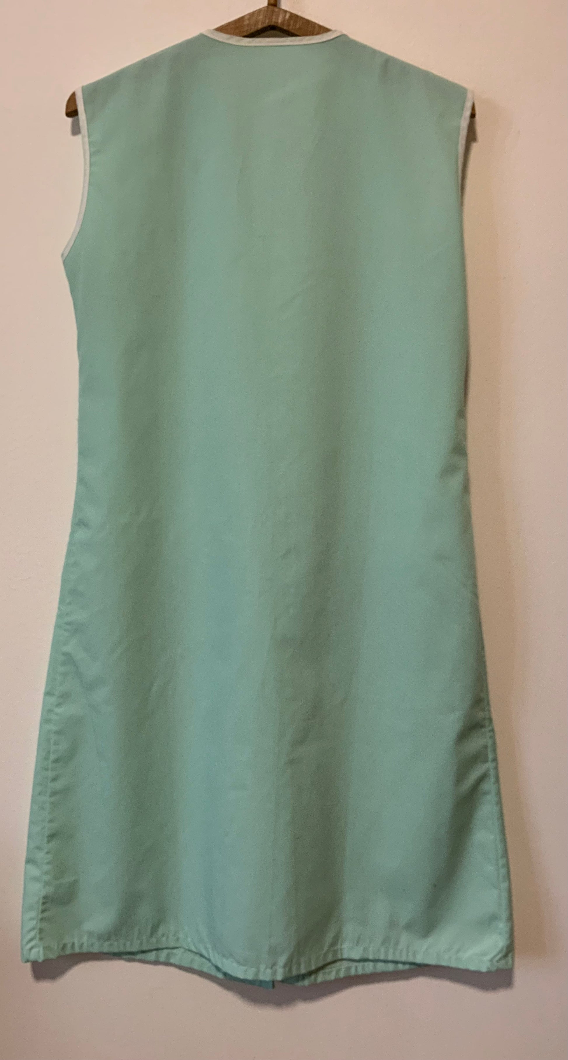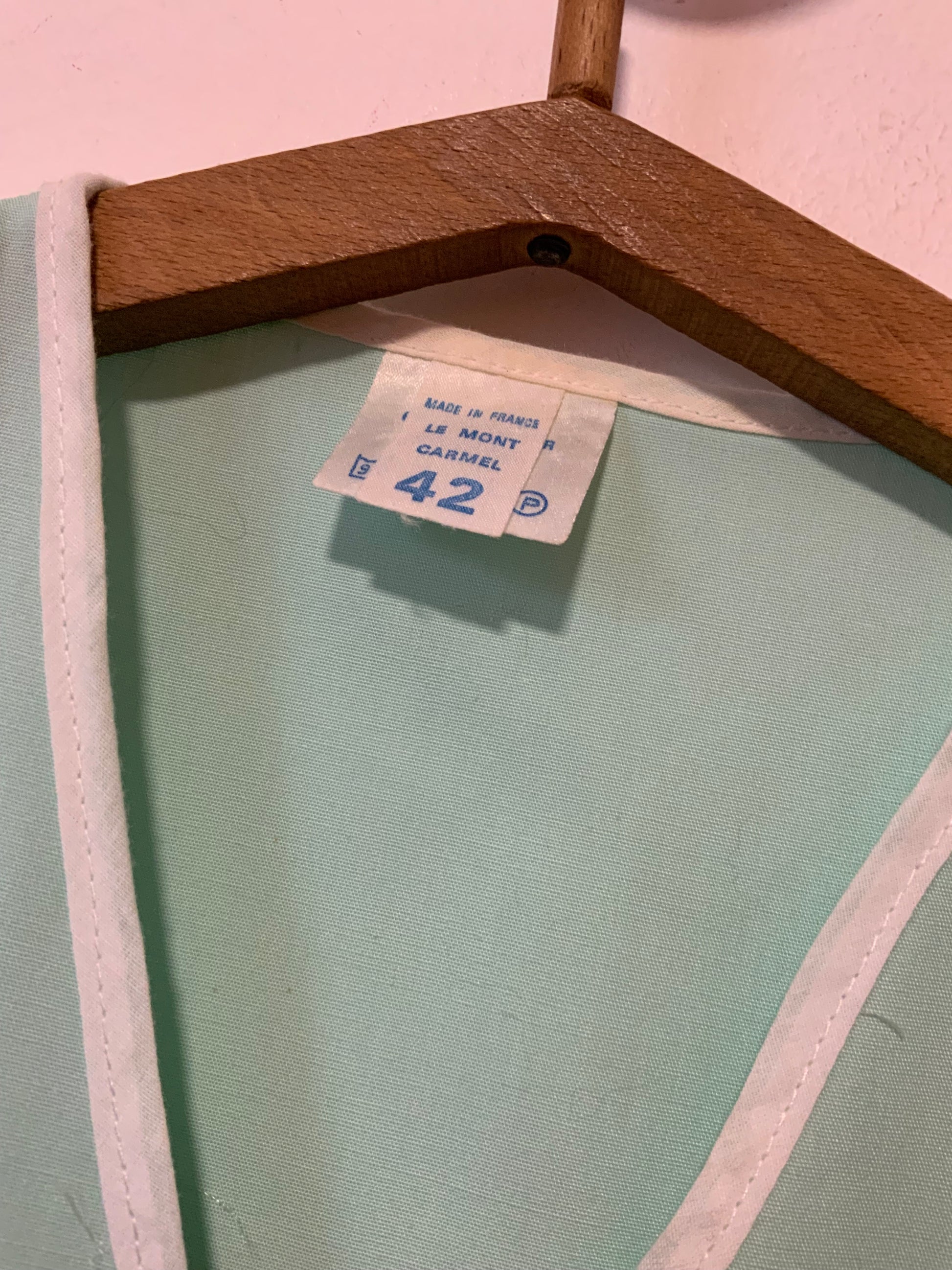Robe Blouse boutonnée vert menthe DeadStock Vintage 1980 Surpiqûres blanches, poches- Neuve Vintage Made in France, Le mont Carmel - 35% coton 65% polyester.