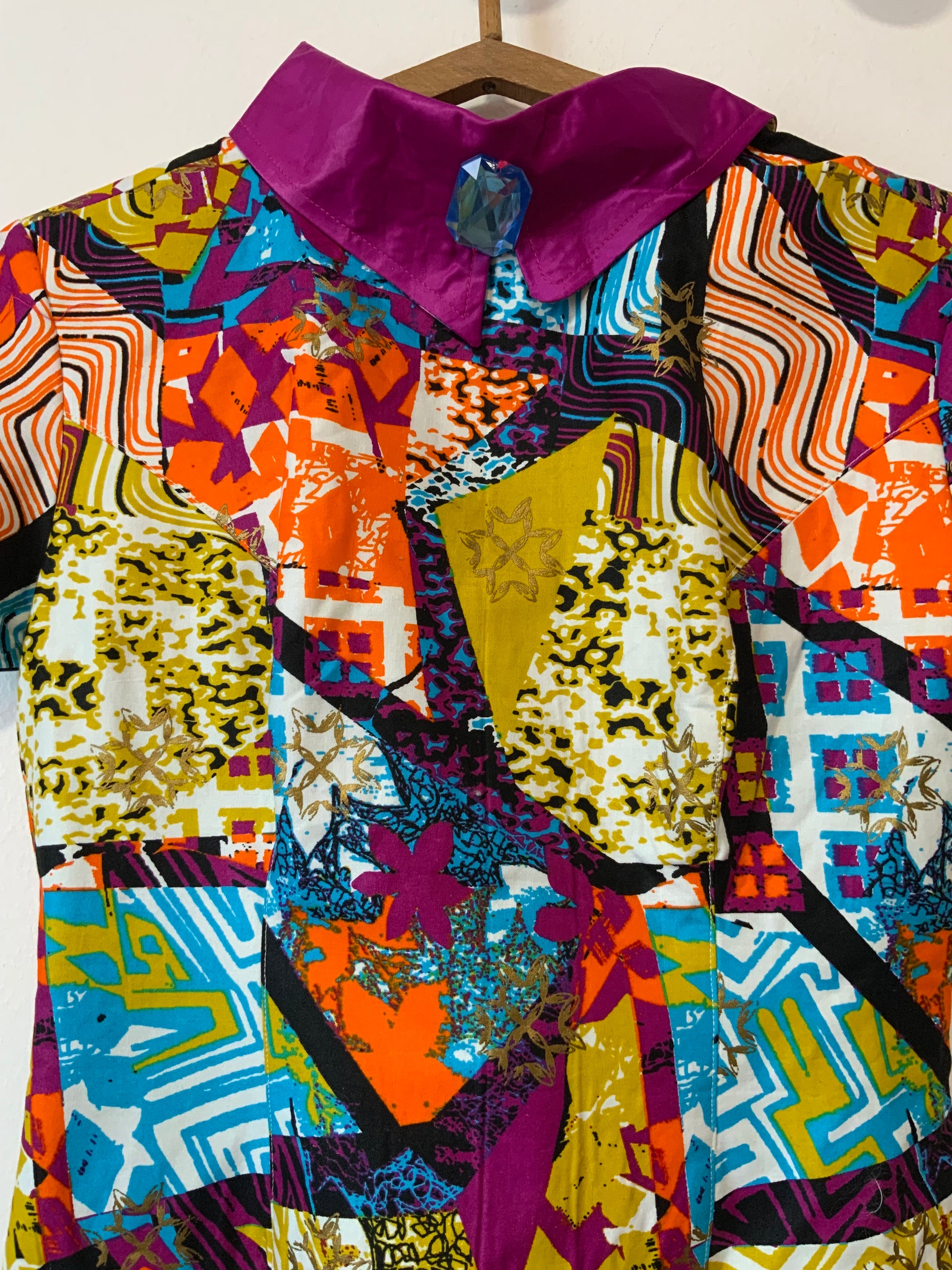 Robe aux motifs Wax - Pierre sur col et partie jupe plissée entièrement faites à la main - Rose et diverses couleurs en excellent état.