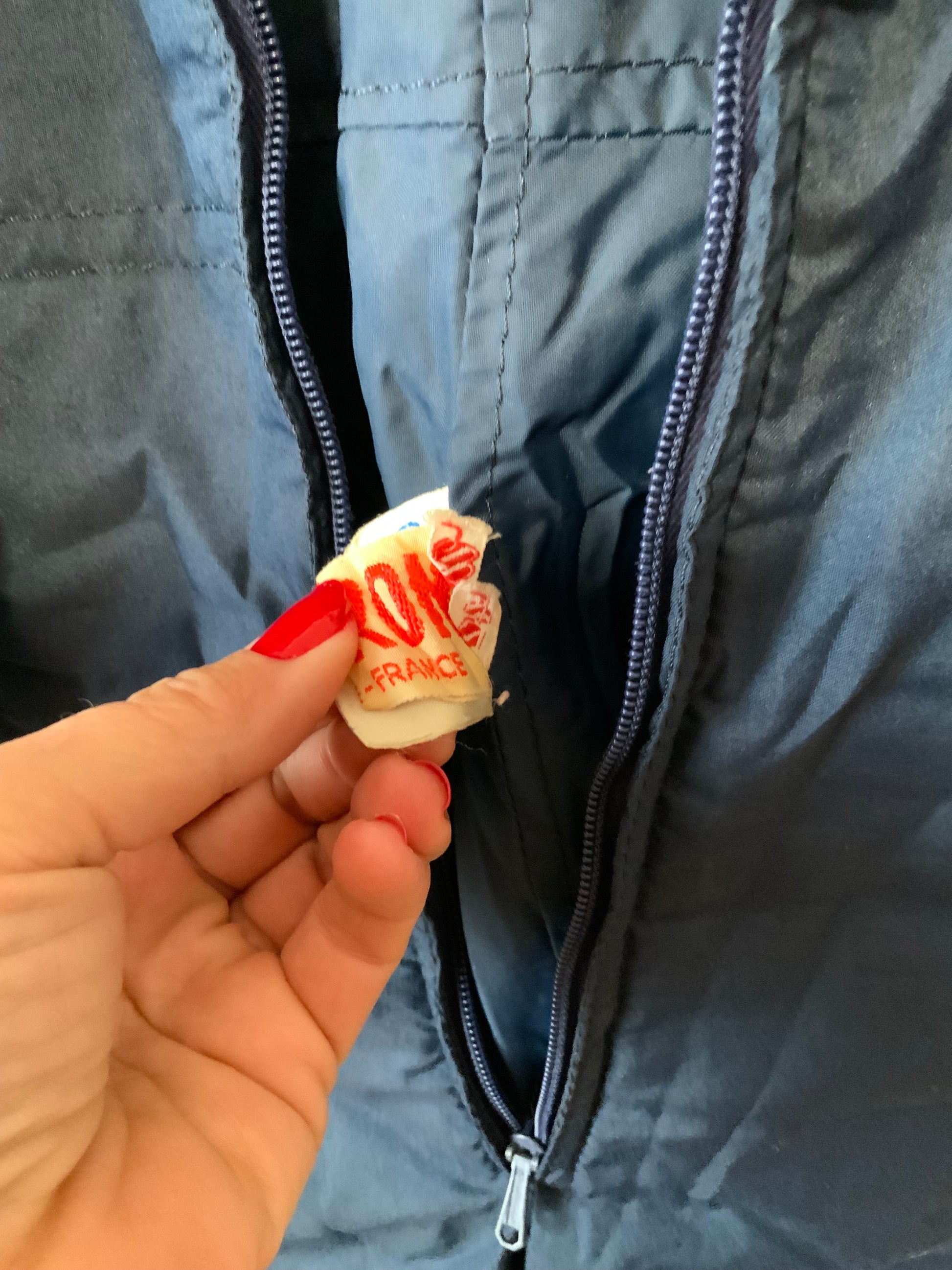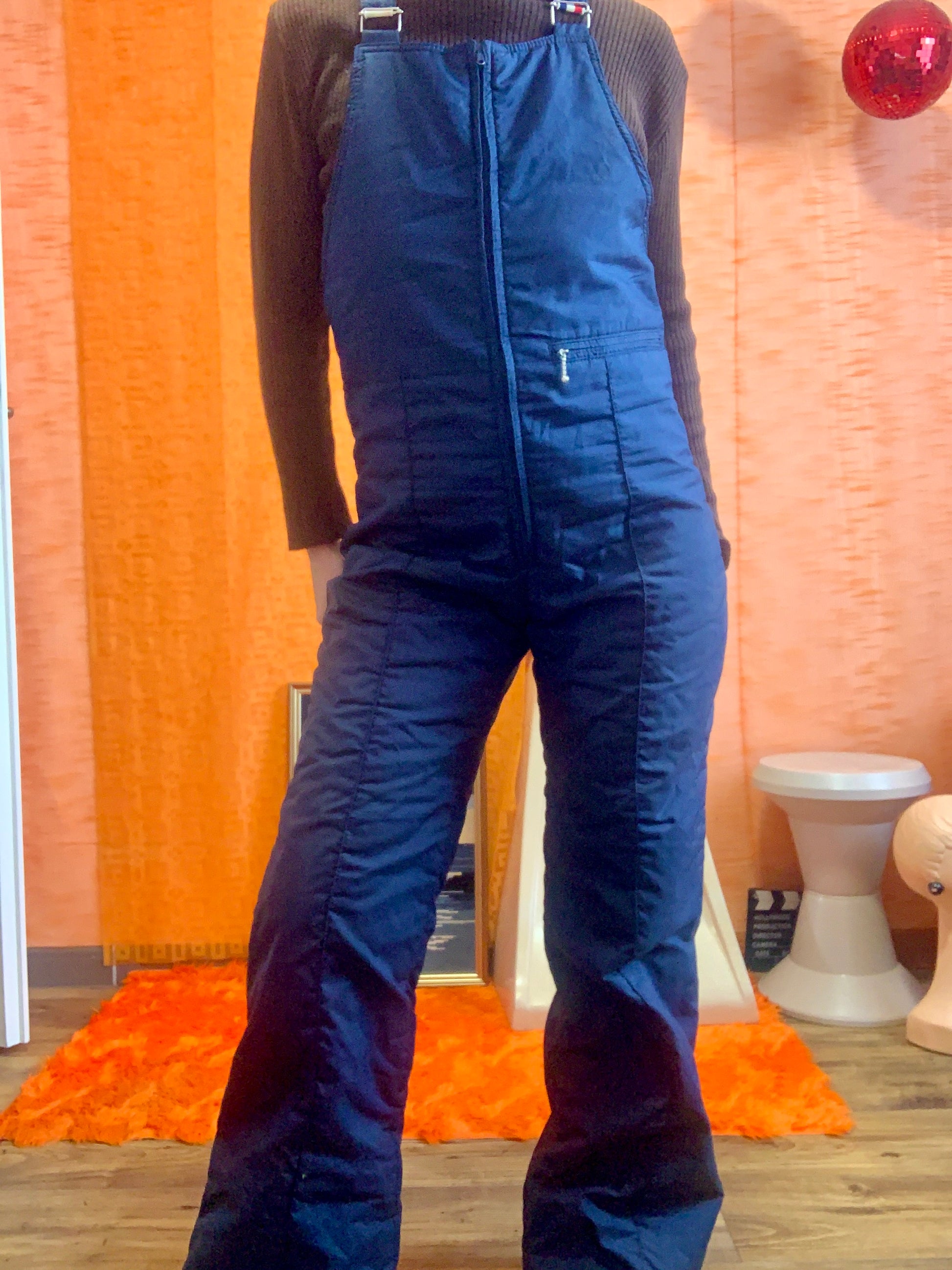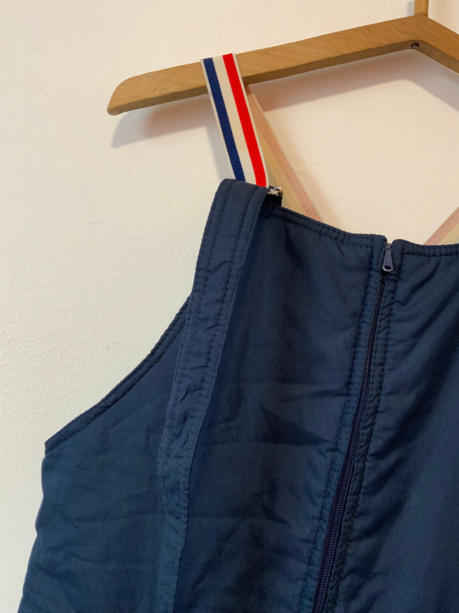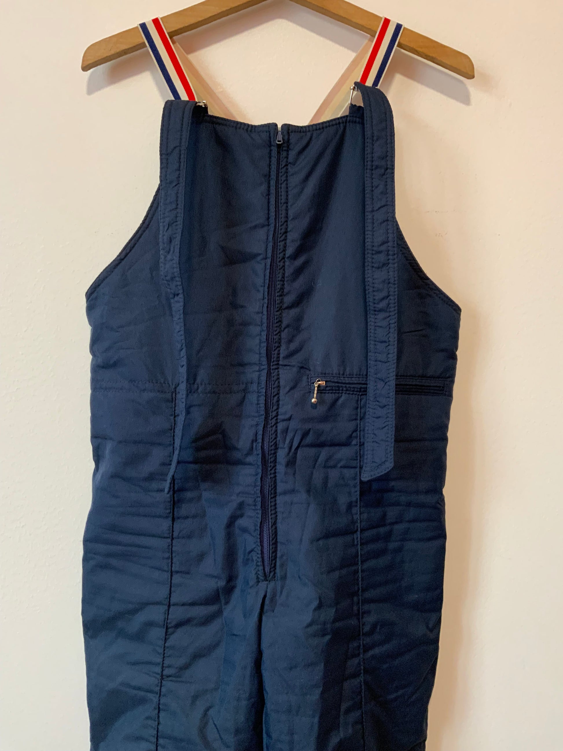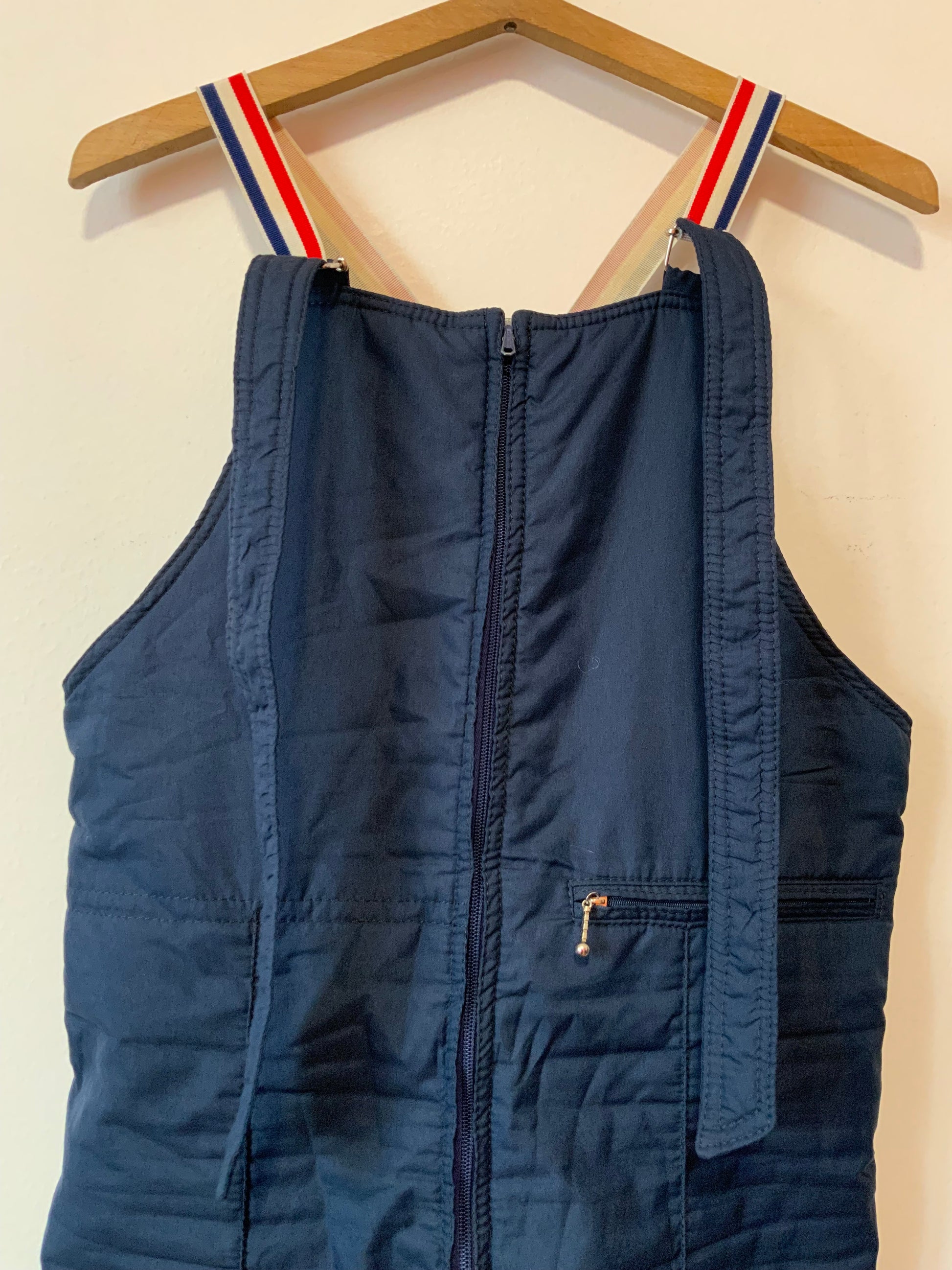 Salopette de ski Sports d’hiver 1970 à bretelles France Bleu Blanc Rouge Vintage 1970 Couleur Bleu marine - Très Bon Etat, Marque Néron à Grenoble.
