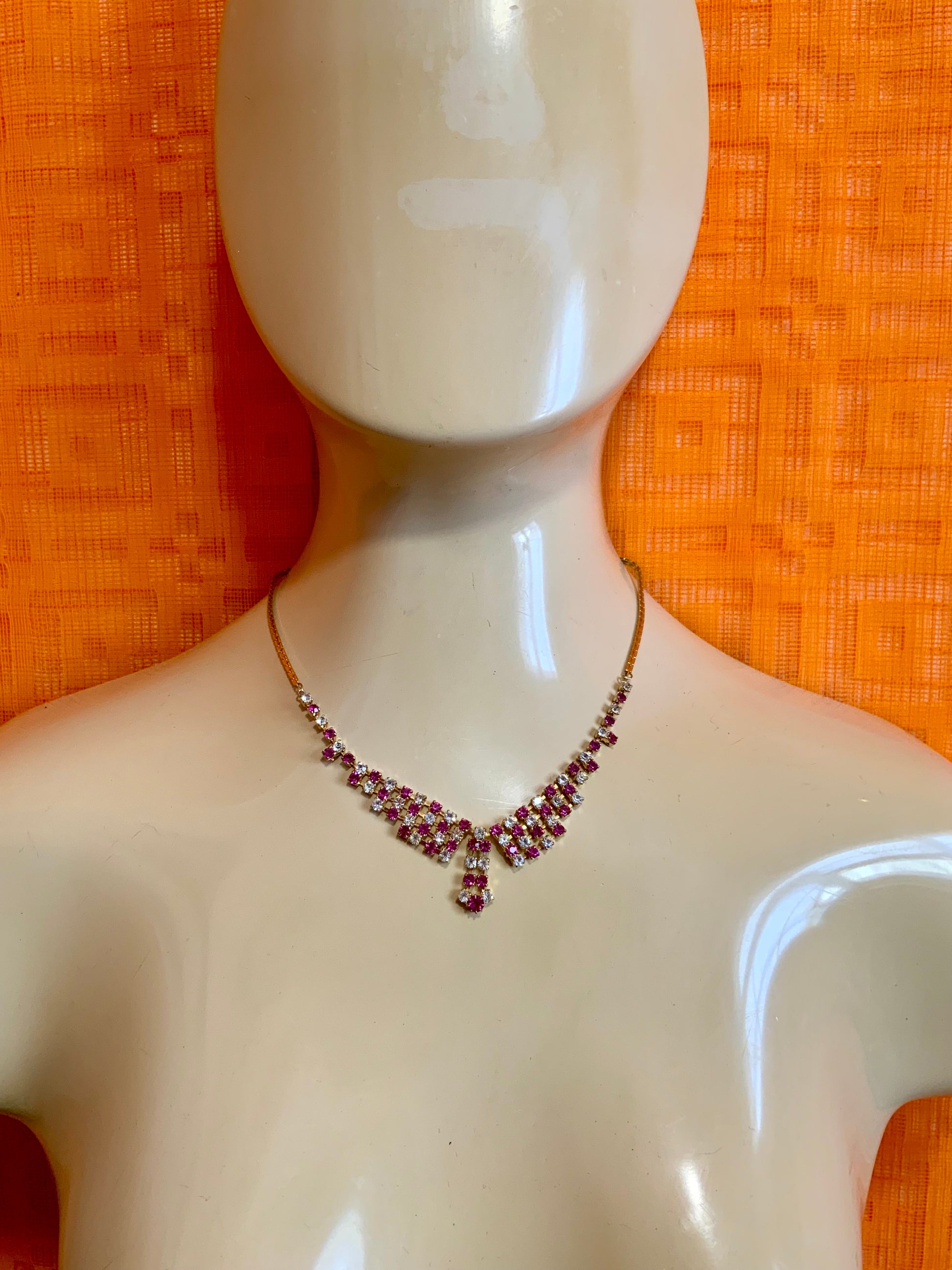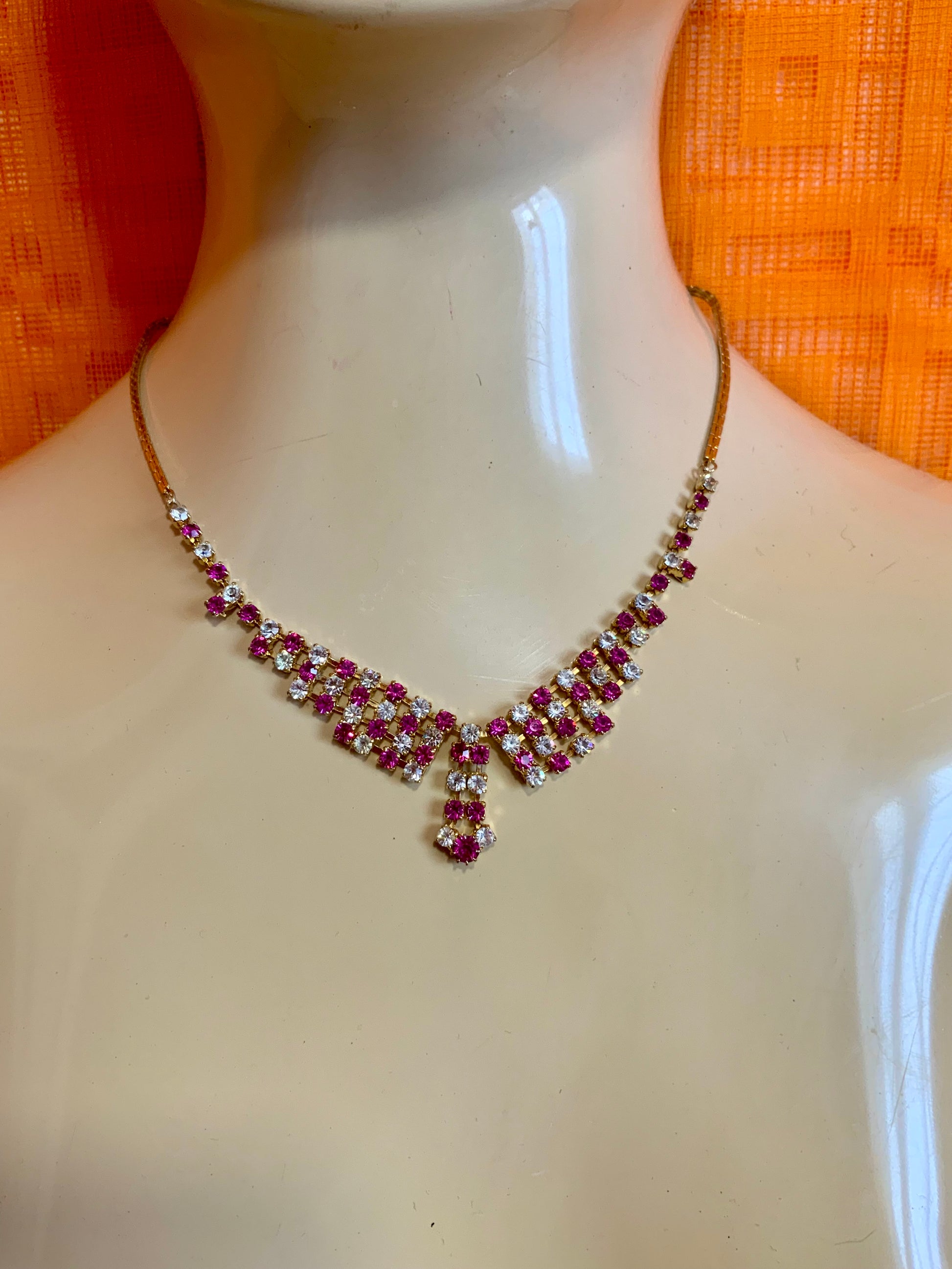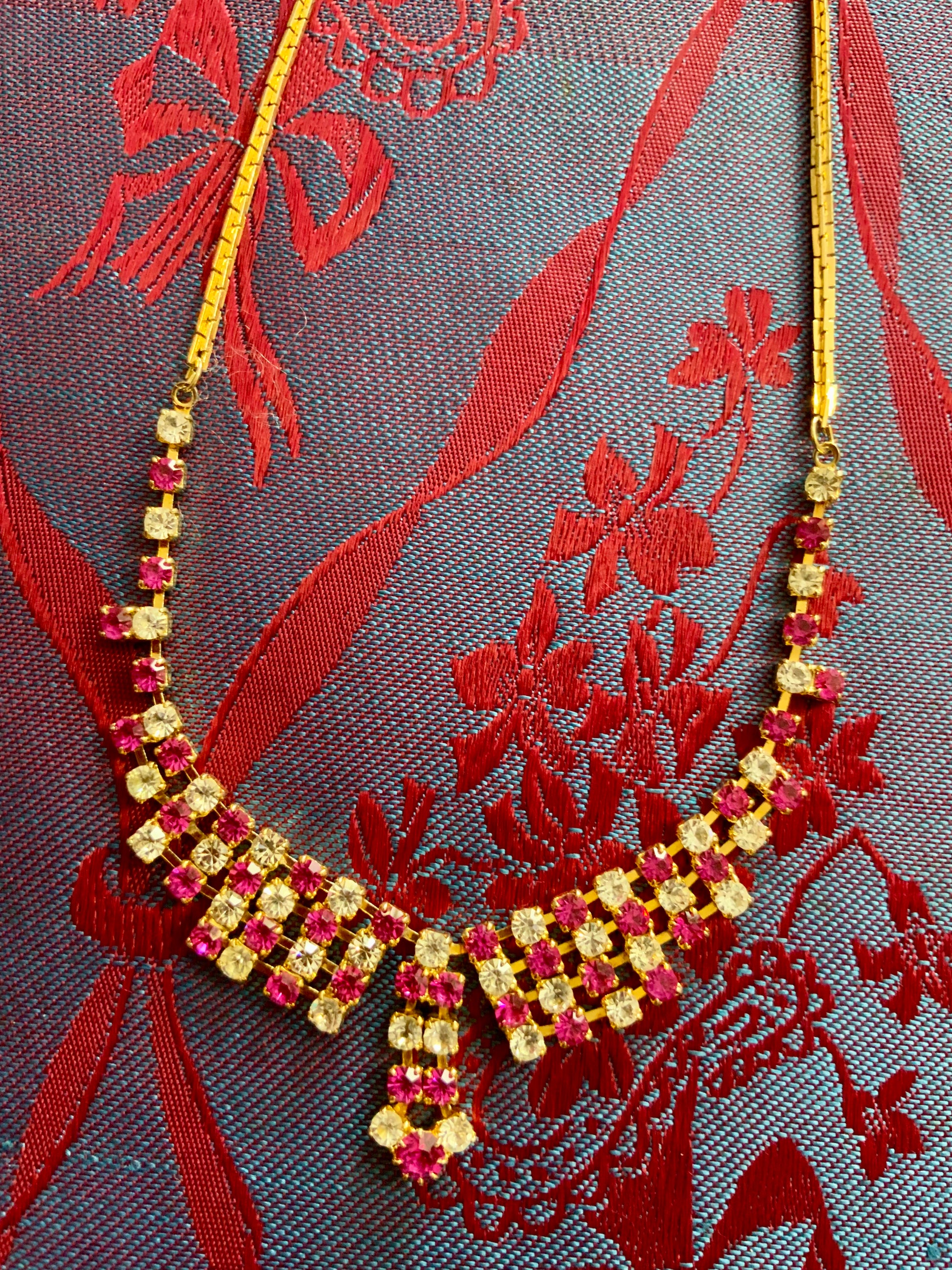 Très Beau Collier ancien en Plaqué or et strass pierres translucides et roses - Magnifique collier Ancien Vintage.