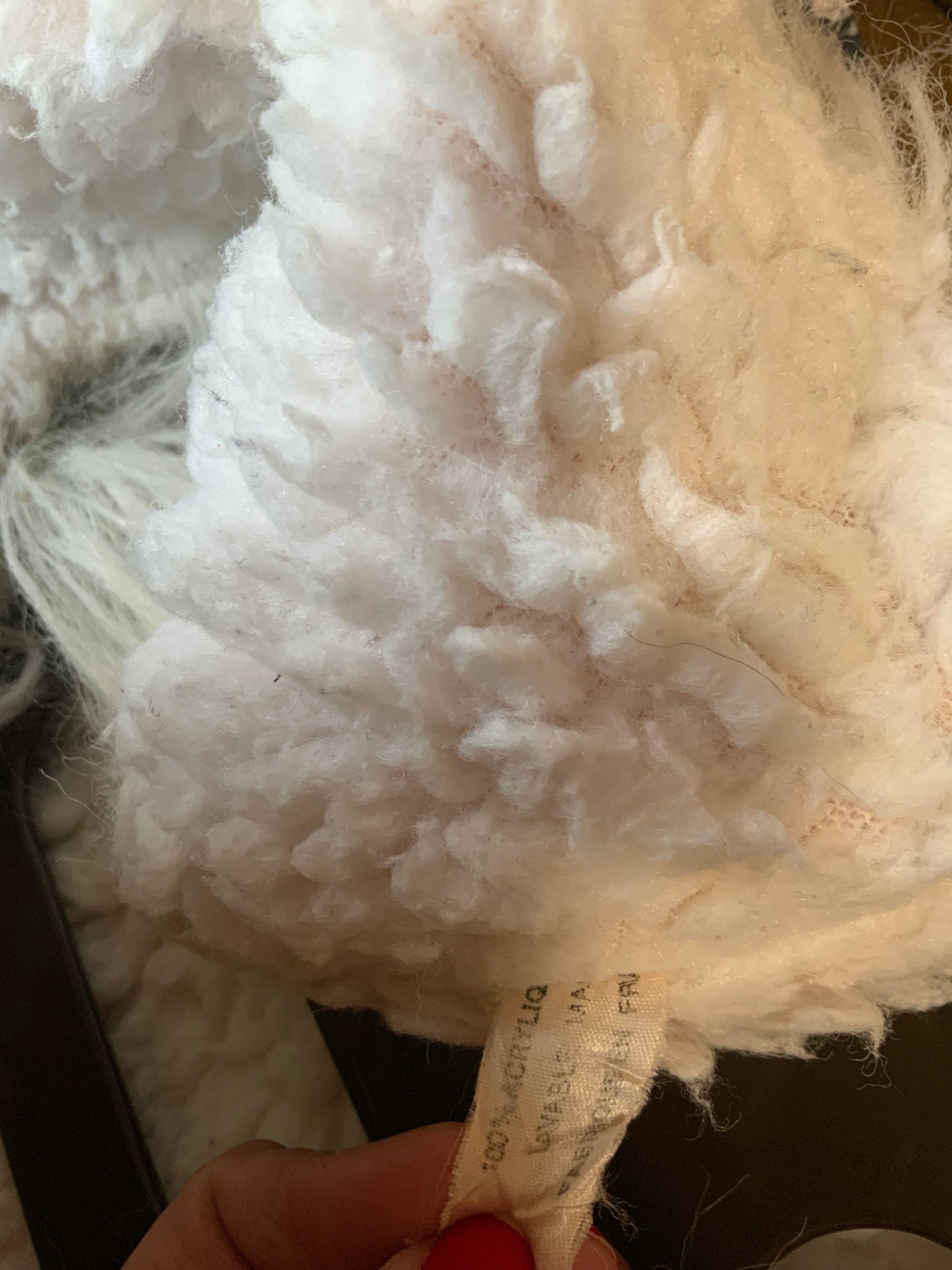 Sublime gilet sans manche à longue fourrure synthétique Vintage 1970/80 Blanc en laine 100% acrylique Intérieur et extérieur en états superbes - France.