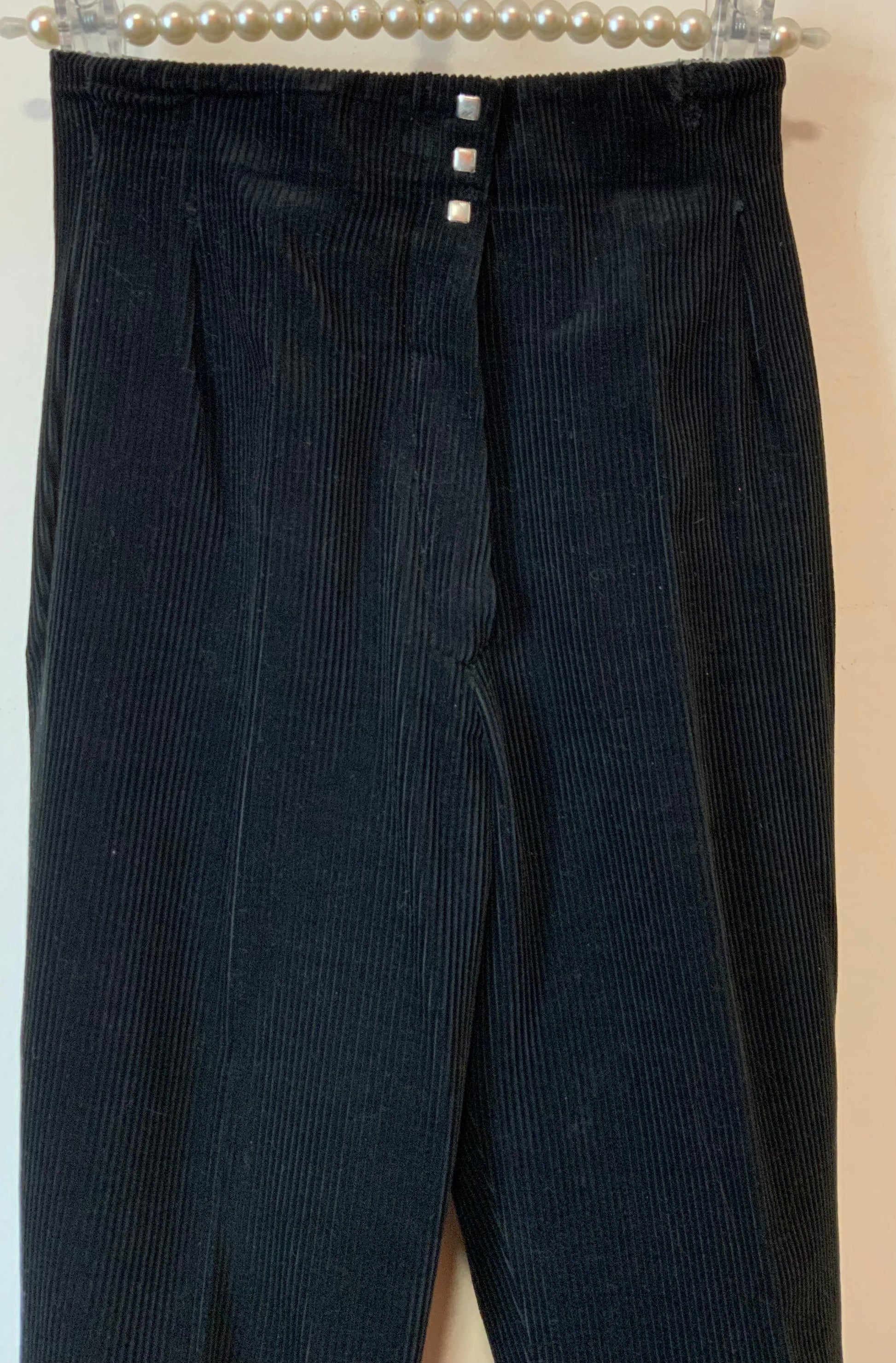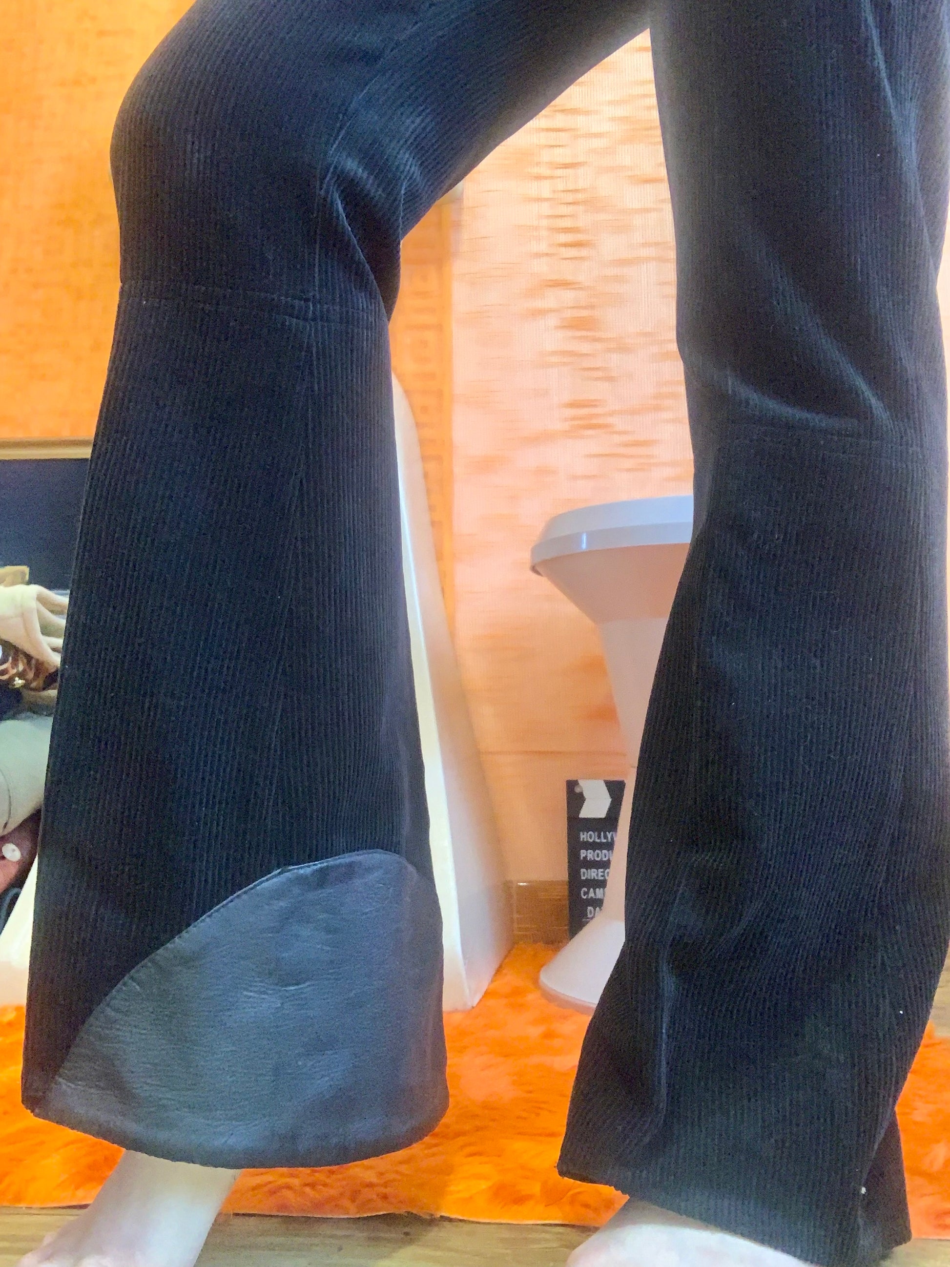 Sublime pantalon Fuseau Flare Velours côtelé et Cuir Vintage 1970 Noir