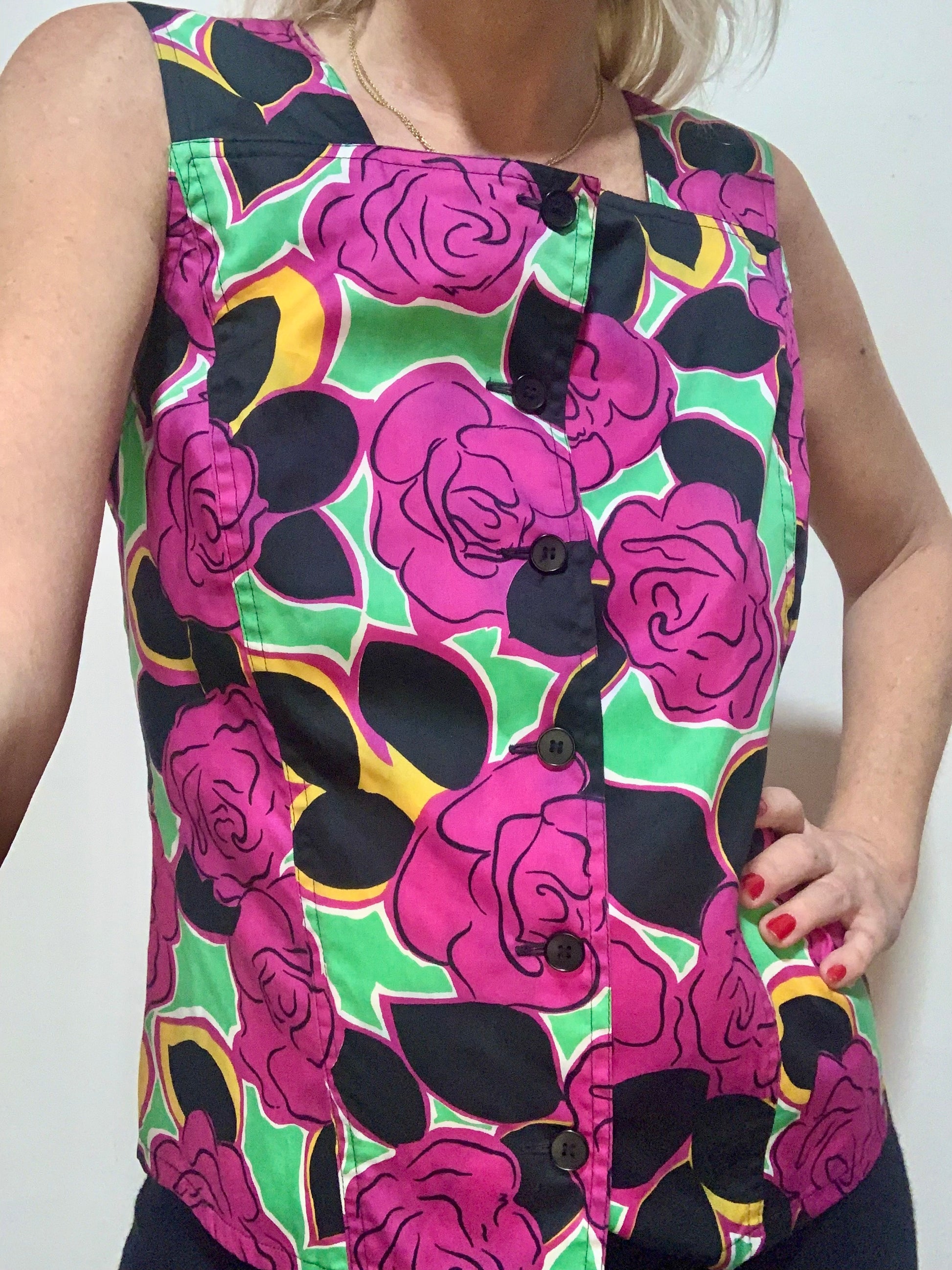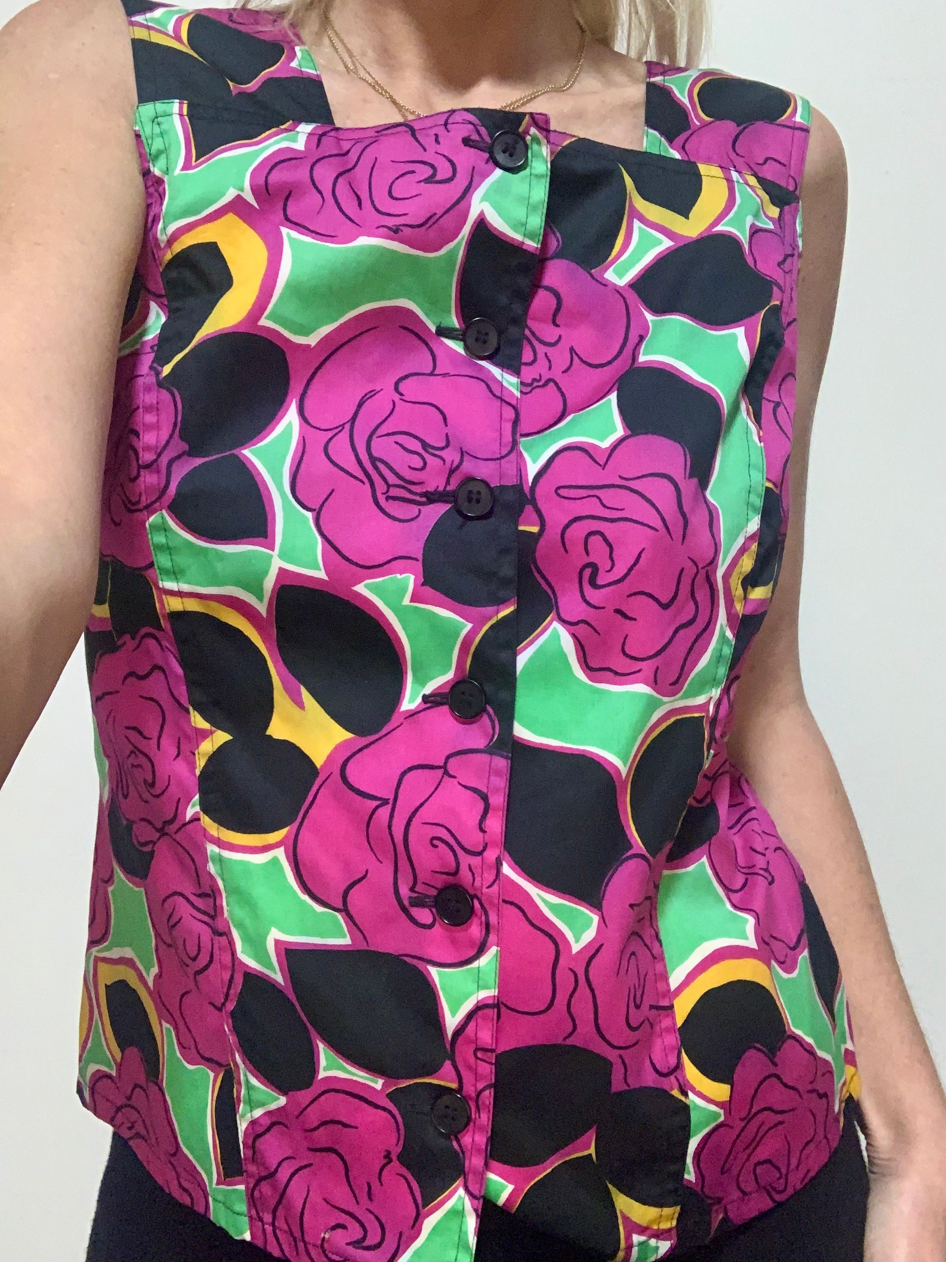 Sublime Top boutonné Guy Laroche Vintage A fleurs 1980