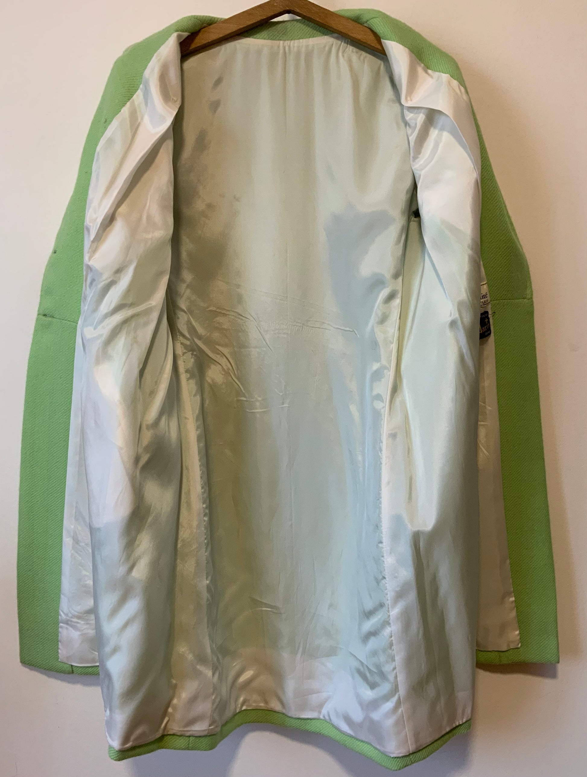 Sublime Manteau en pure laine verte Vintage 1970 Marque A la ville de Paris - Sens- Très beau croisé Fantaisie avec double boutonnage devant petits boutons merveilleux, doublure blanche satinée complète, poches côtés - Très bel état juste une petit dommage vers l’épaule au dos voir la photo, ne se voit pas.
