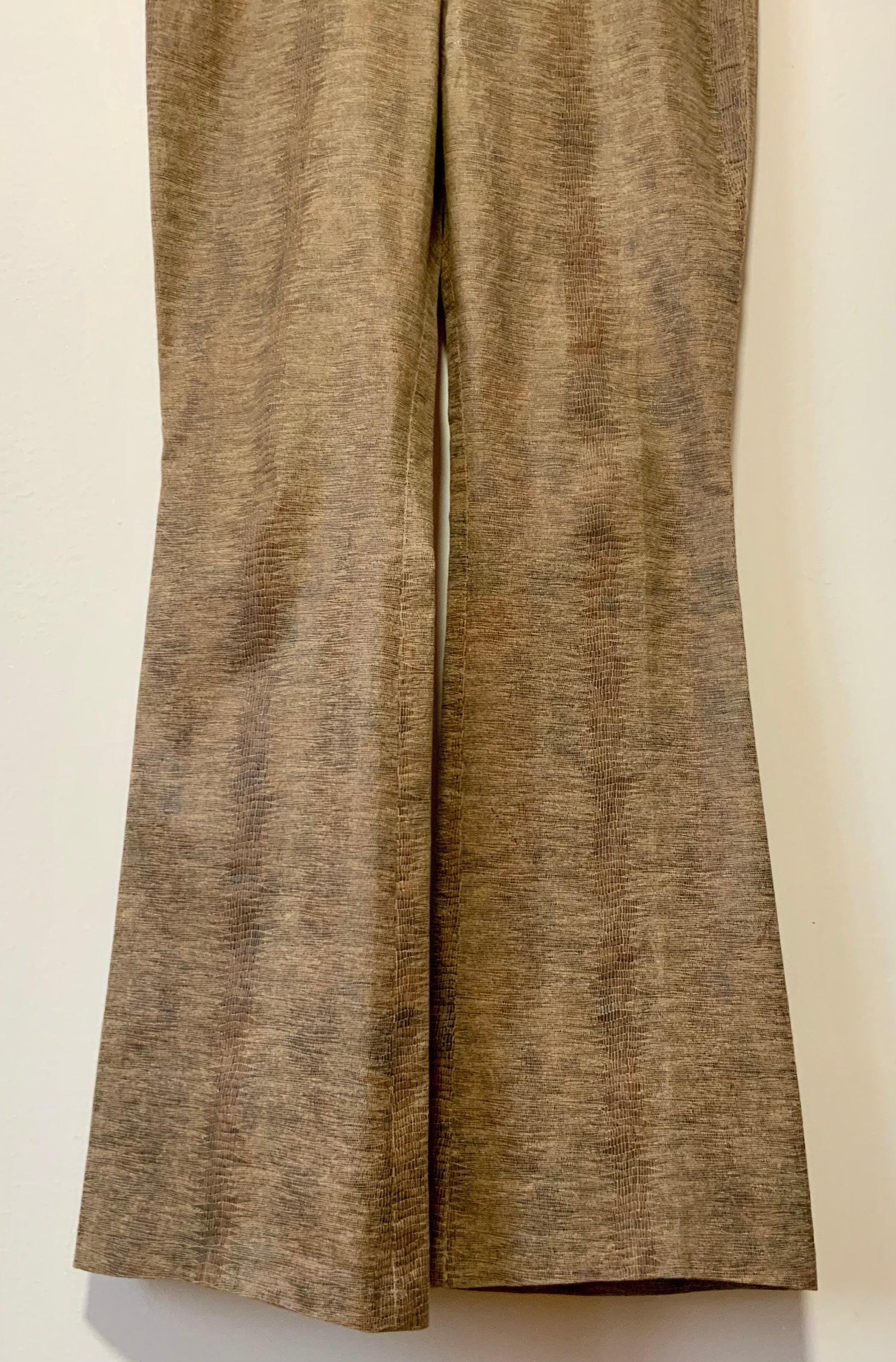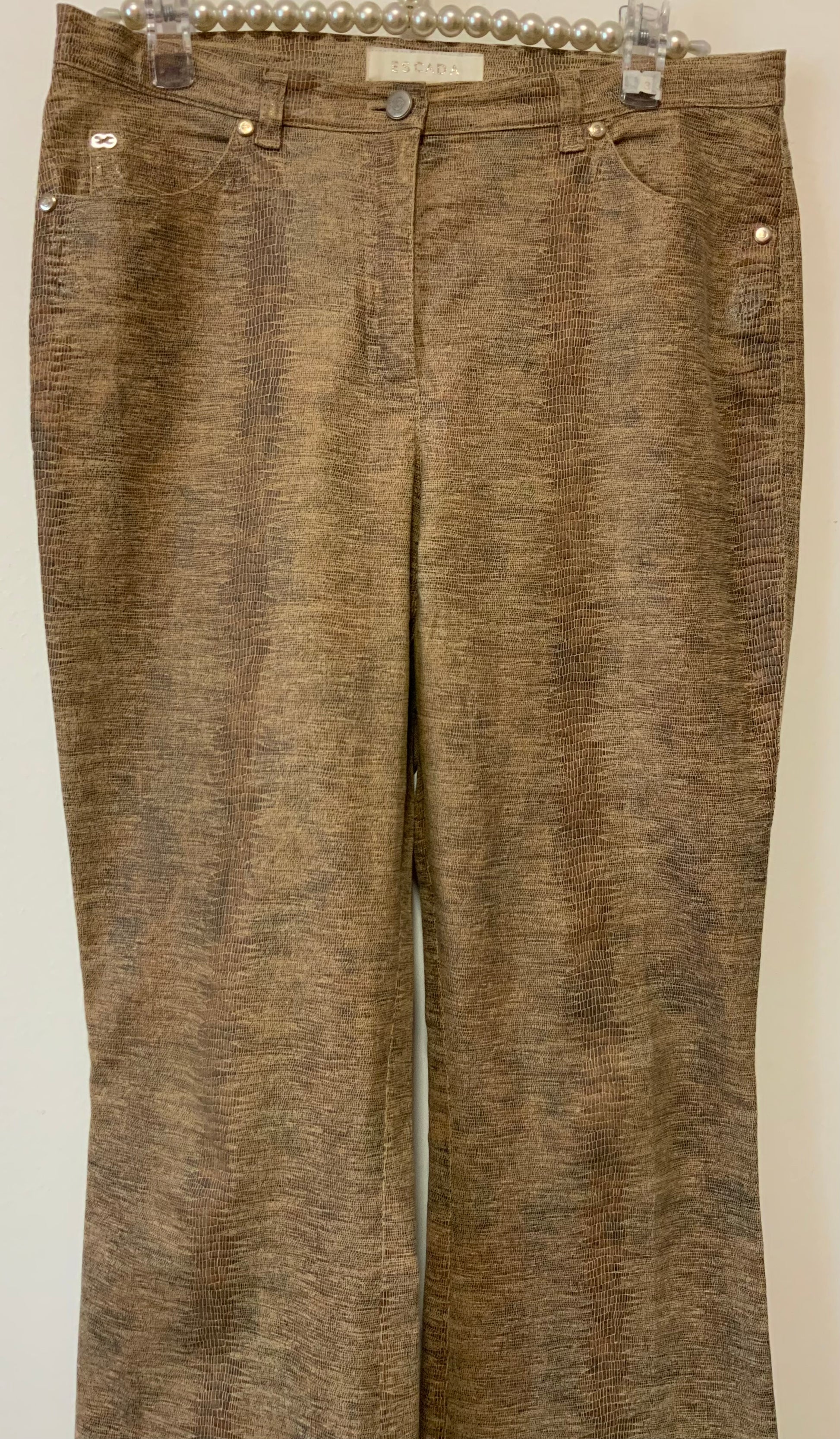 Sublime Pantalon Flare aux Motifs Python de la maison Escada - Motifs python beige marron - Matière glacée au toucher 98% Coton 2% Elasthane - Excellent état, Taille haute.