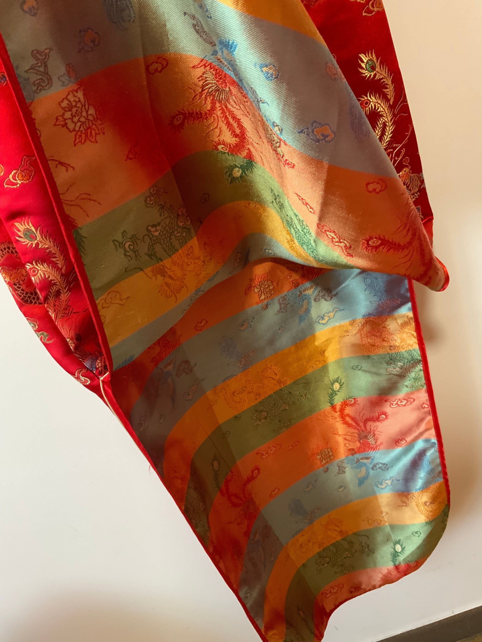 Superbe Robe Chinoise Soie Rouge Dragons-T36