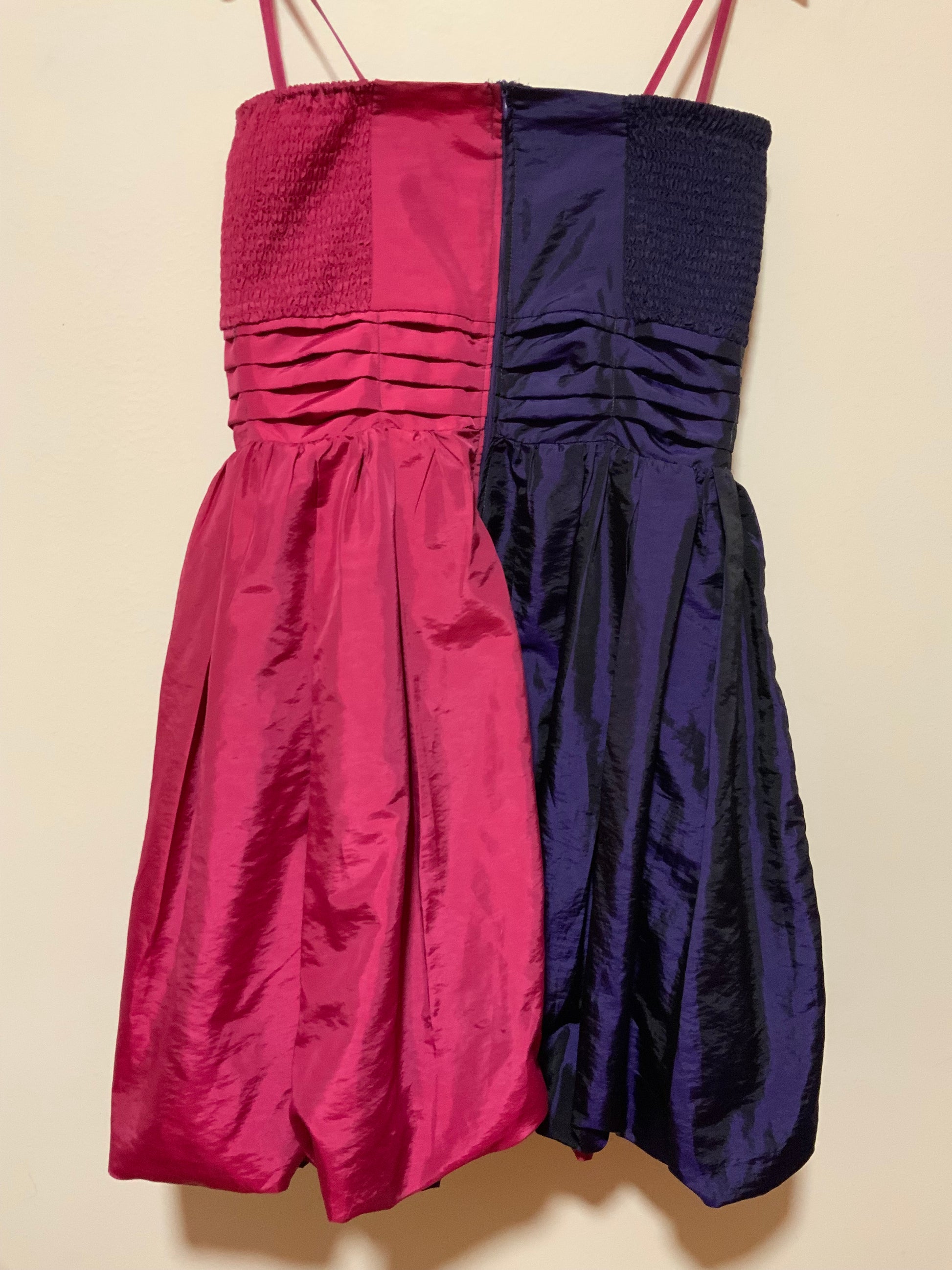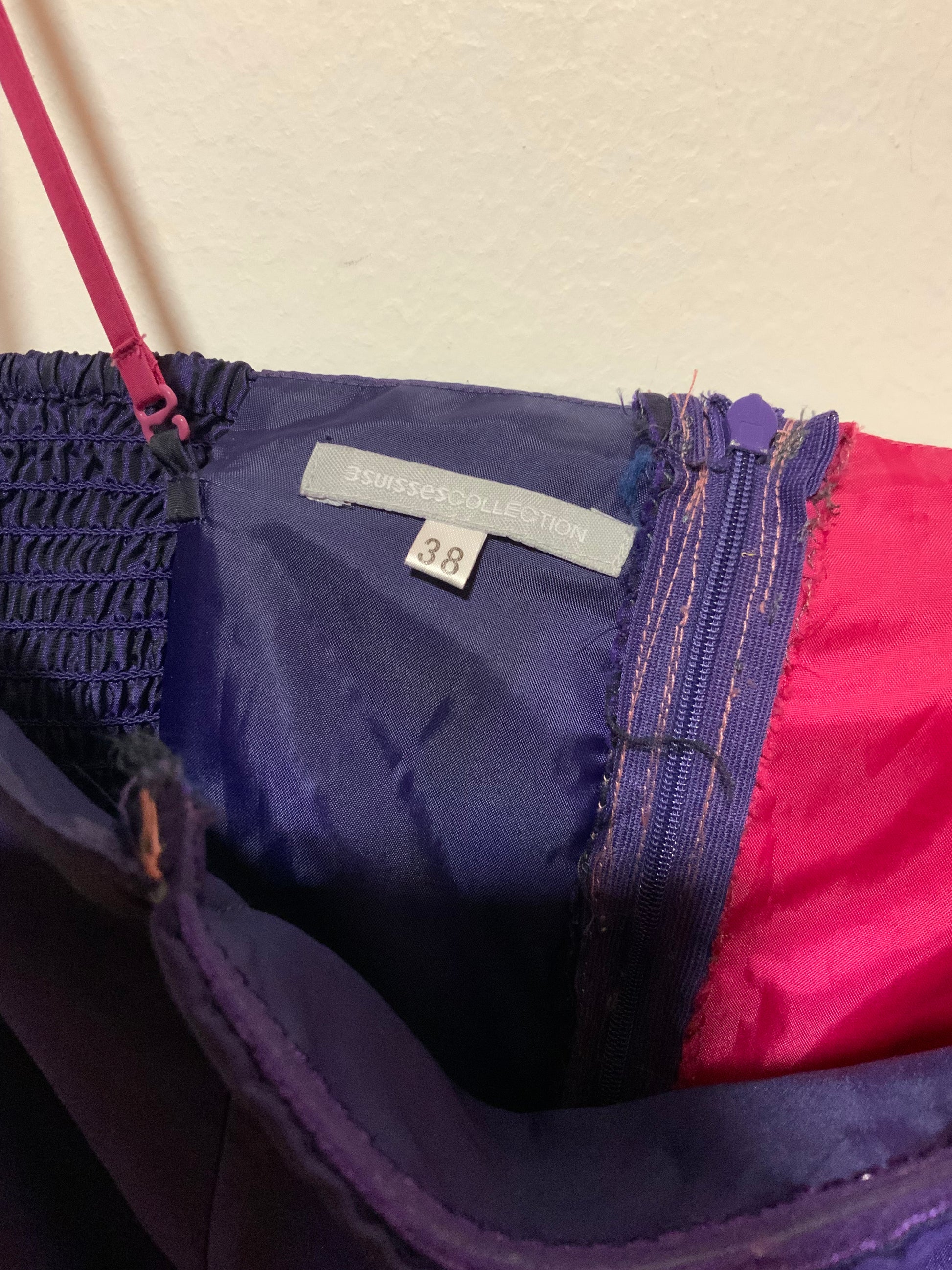 Superbe Robe de soirée Fêtes Vintage 1990 Les 3 Suisses - Violette et Rose à volume avec bretelles amovibles en bustier et réglables - Superbe et en excellent état, certainement portée une fois, zip au dos et Smocké sur les côtés poitrine -