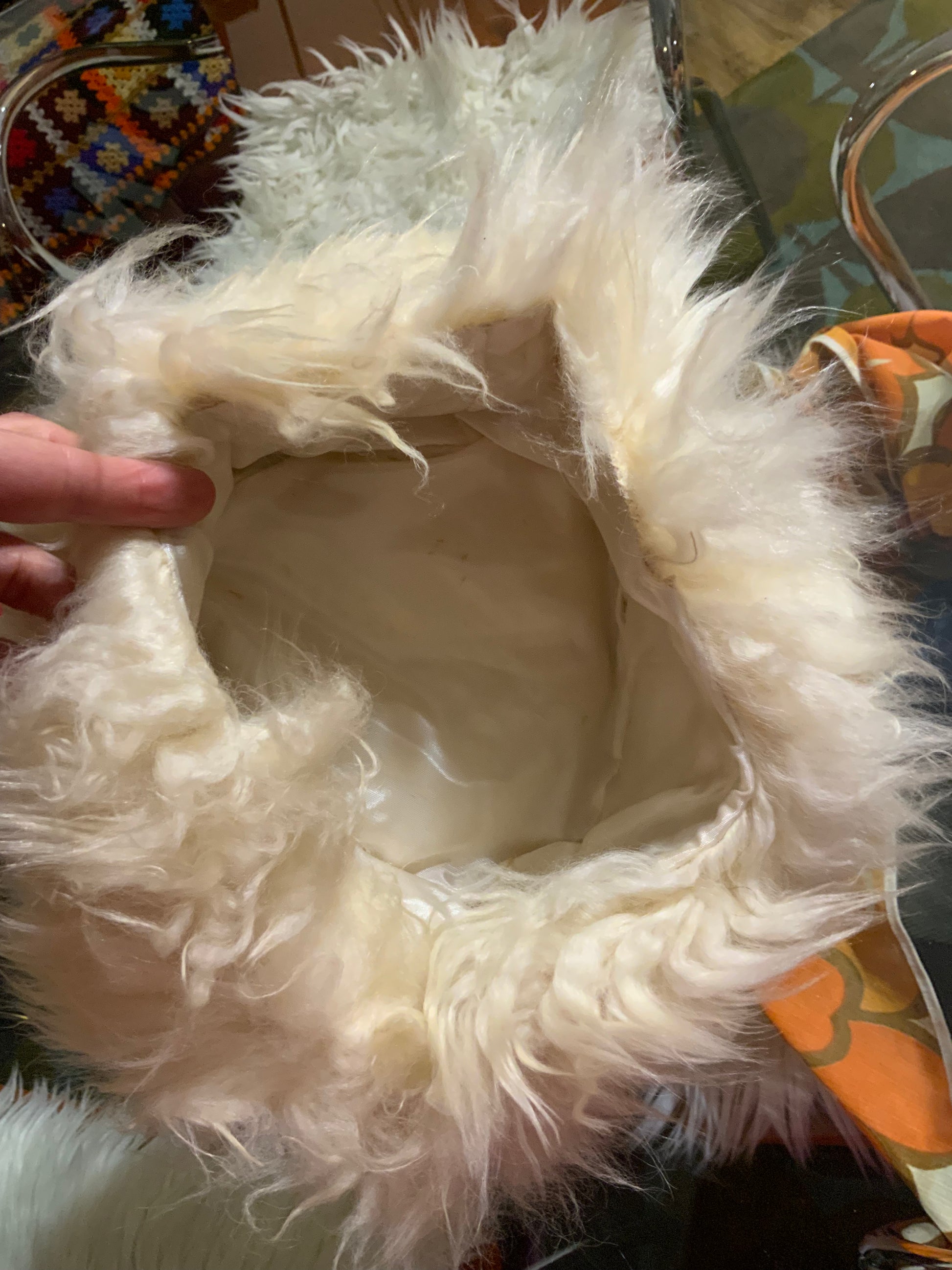 Toque en fourrure poils longs et doux blancs Vintage Entierement faite à la main par un fourreur et en excellent état Années 60/70 aucun défaut Très stylée Mixte, une pièce rare.