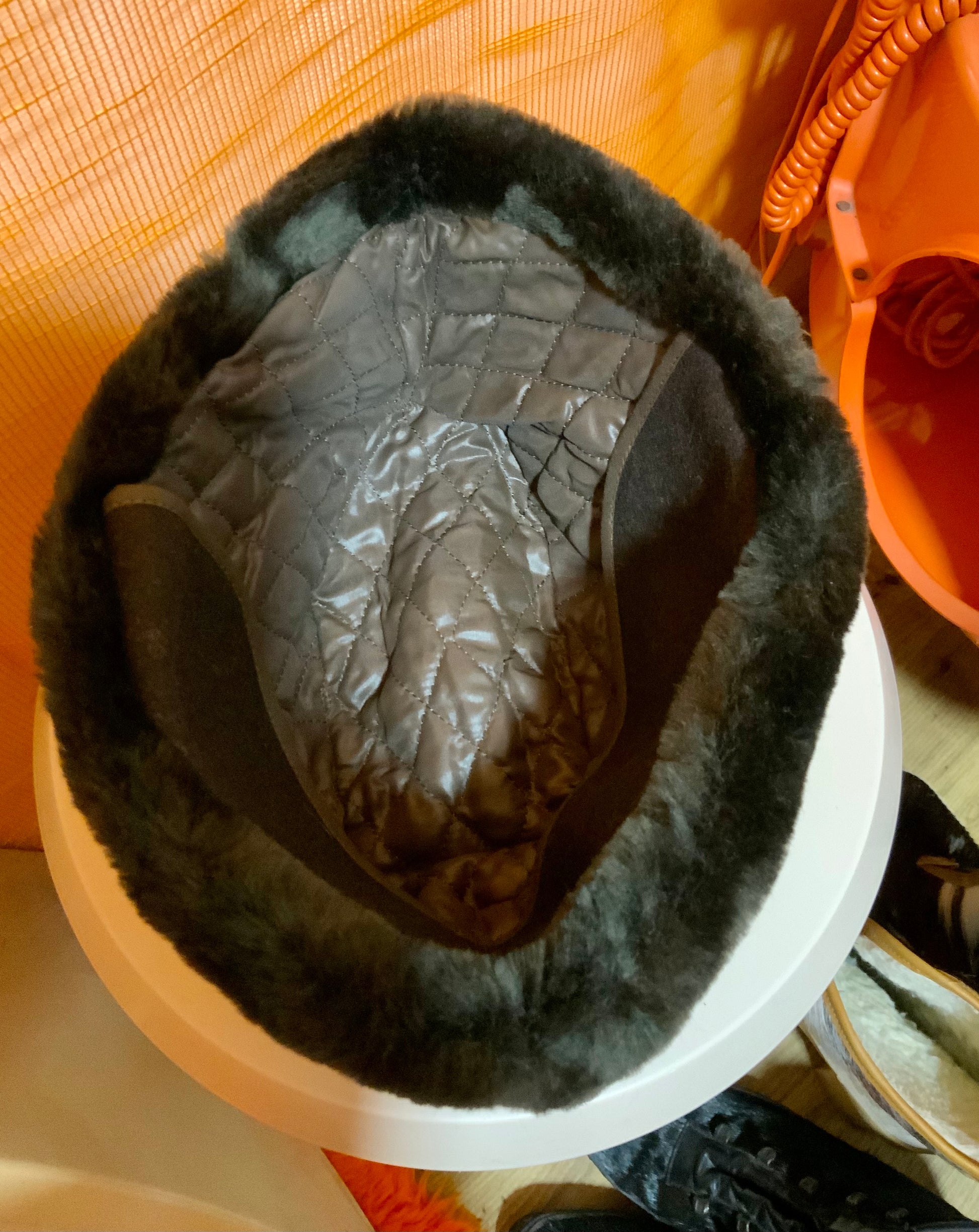 Toque en fourrure synthétique marron très foncé proche du noir Vintage non portée encore neuve avec son intérieur matelassé et la feutrine sur nuque et oreilles, aucun défaut Très stylée Mixte.