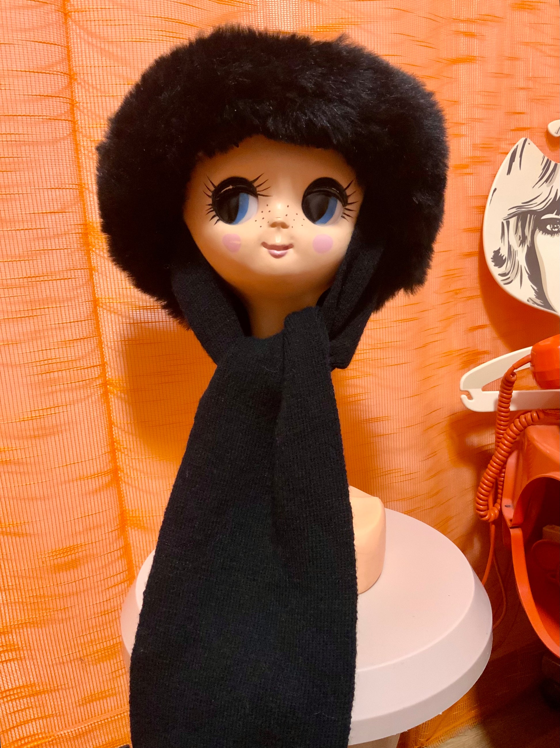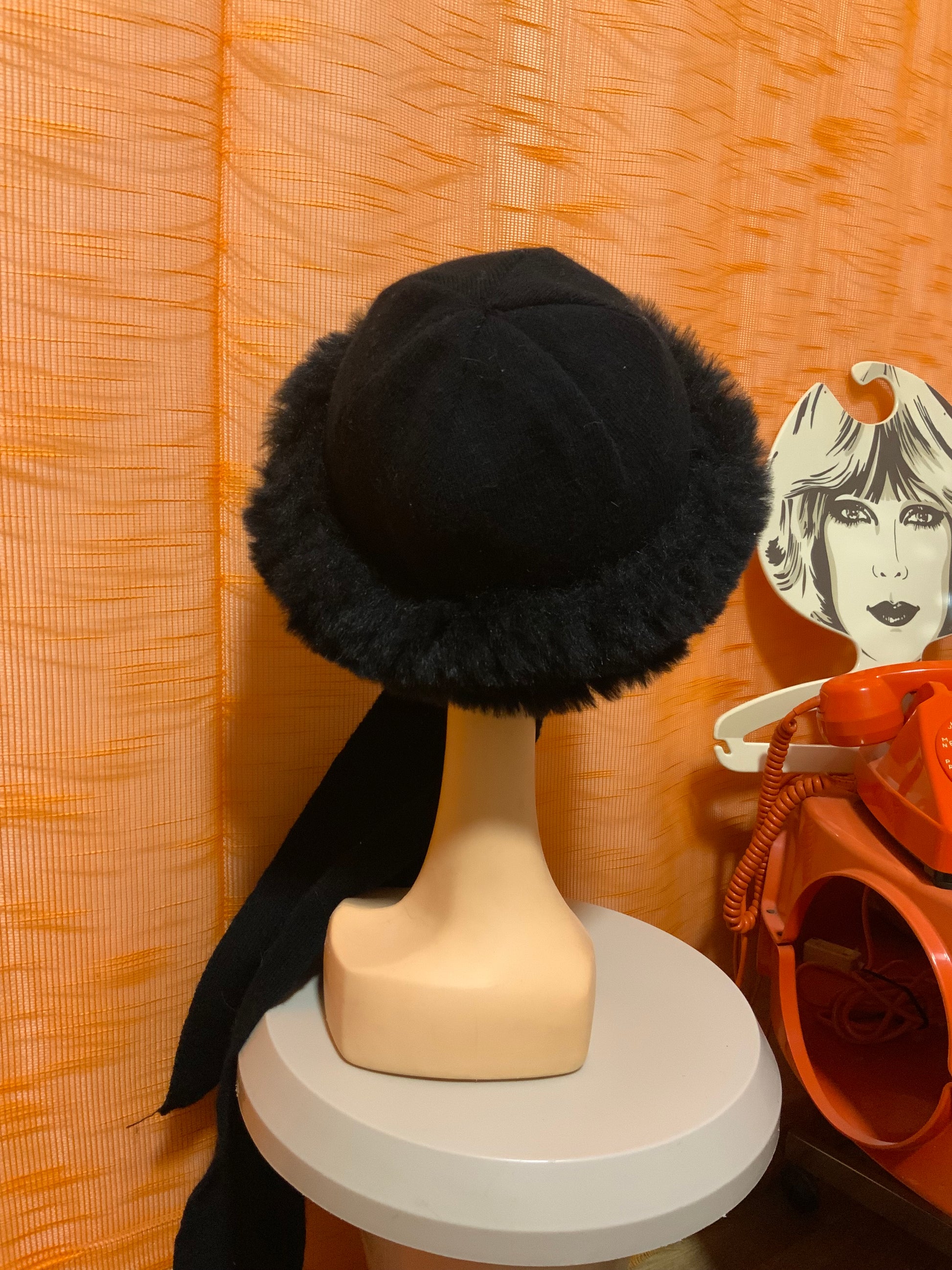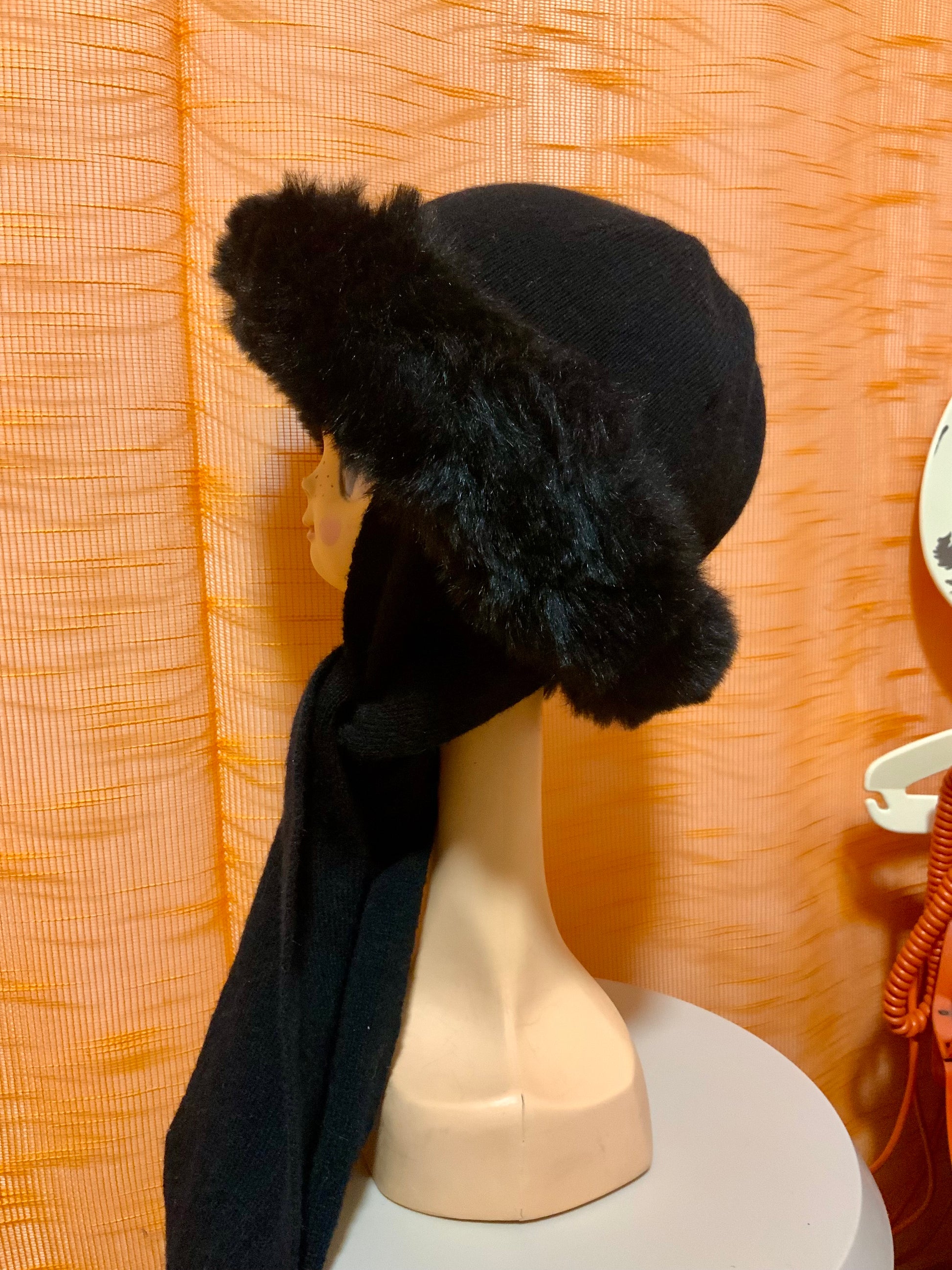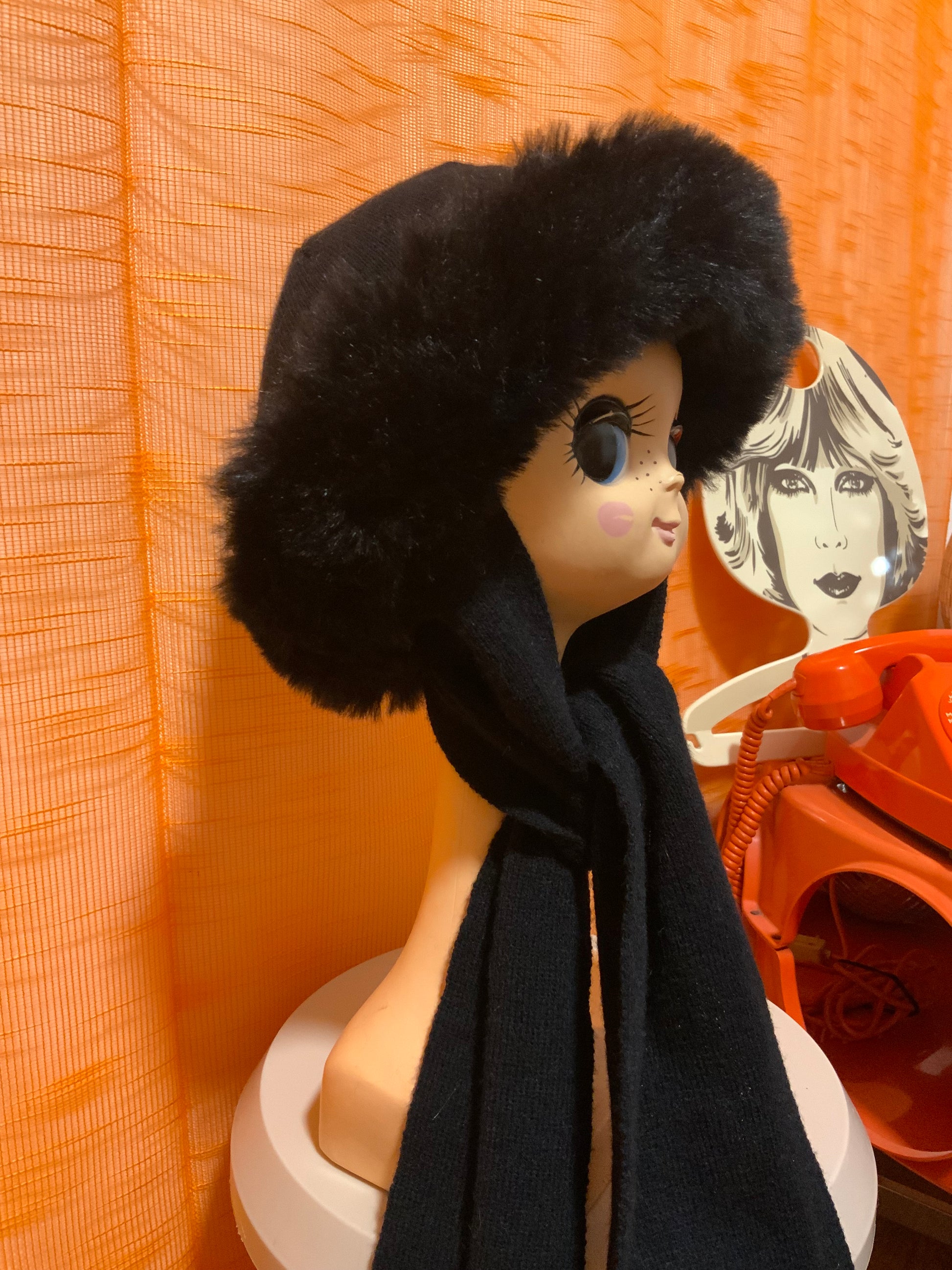 Toque avec contours en fourrure synthétique et écharpe intégrée Vintage 1980 en excellent état -