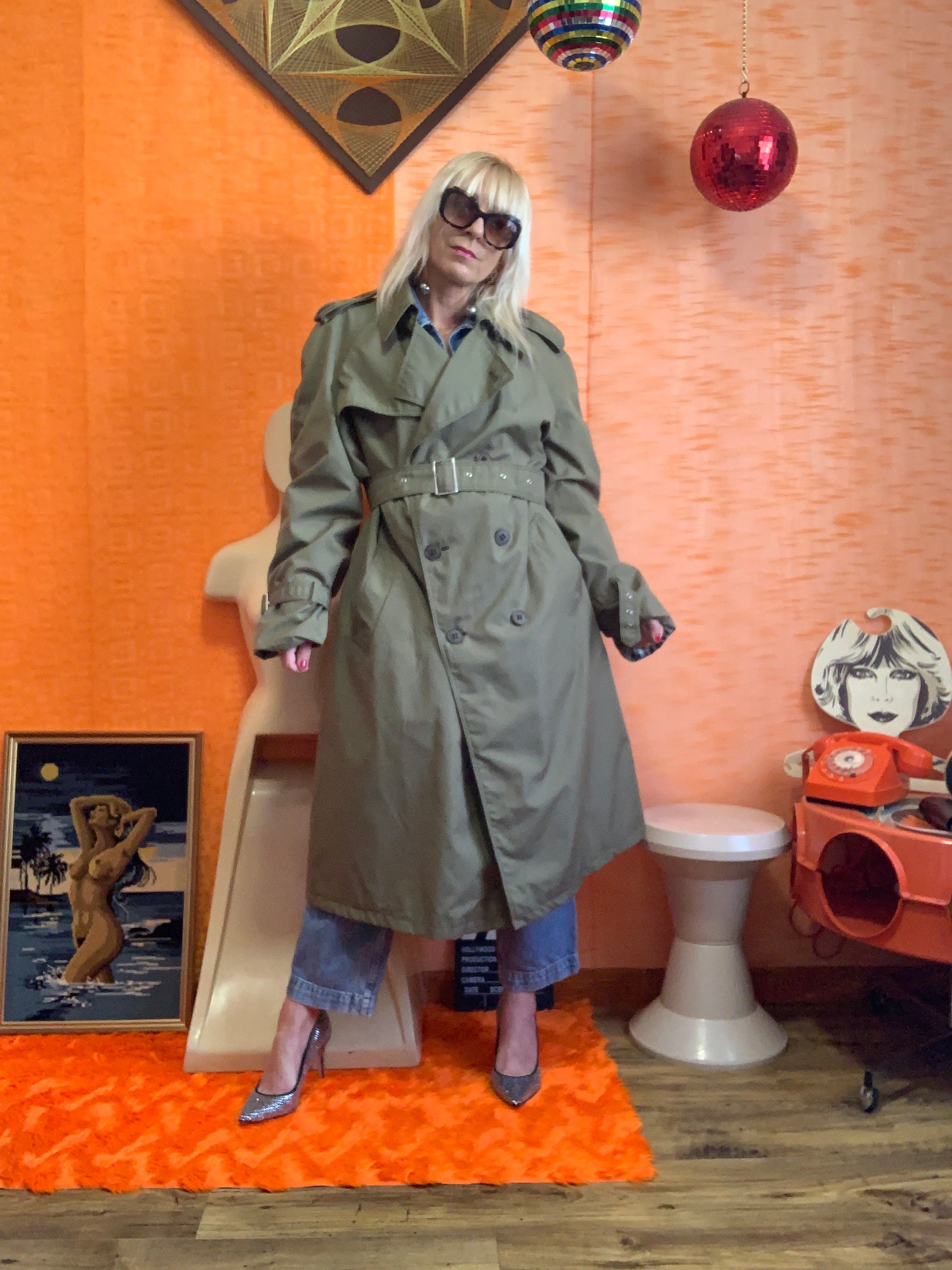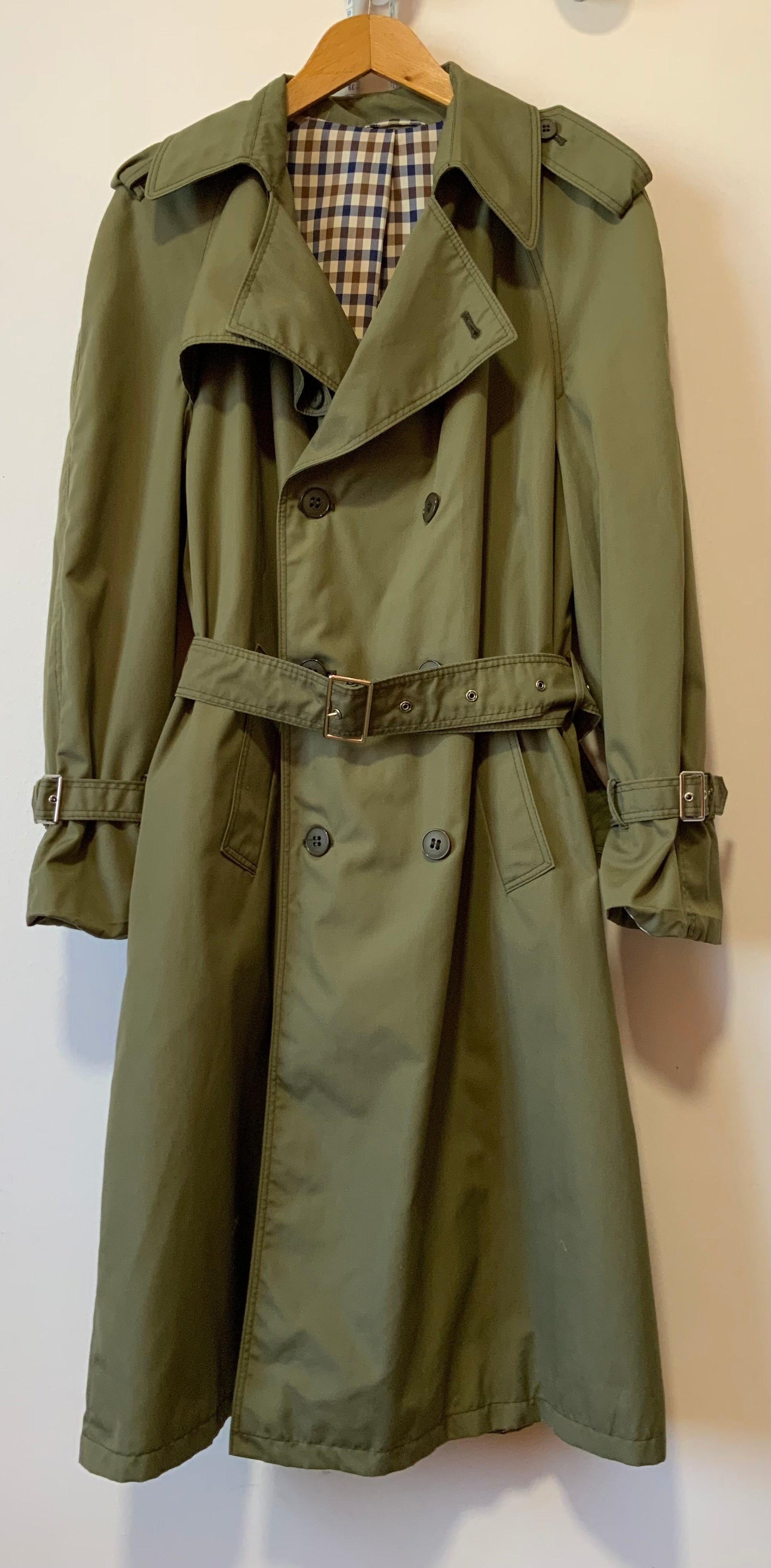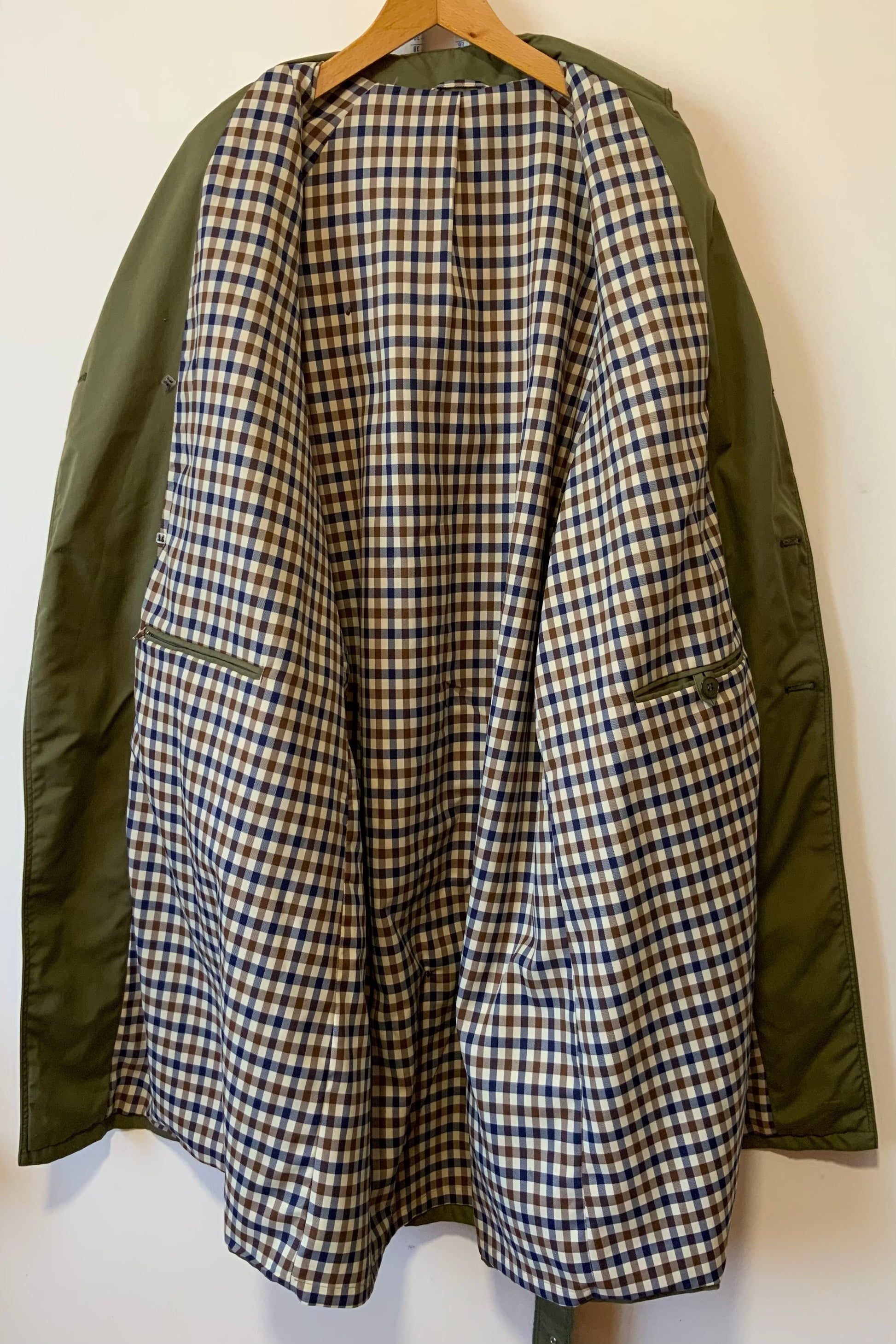 Superbe Trench Long Kaki avec interieur carreaux marron bleu marine beige - Vintage 1980 - avec poches intérieures, ceinture et rempli de très beaux détails, d’une grande qualité.