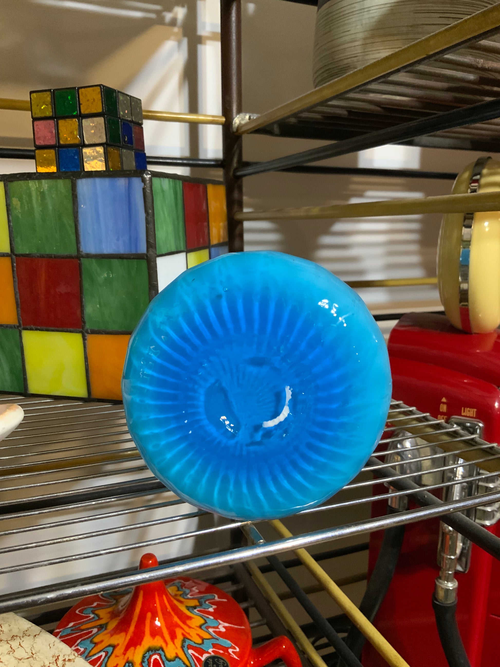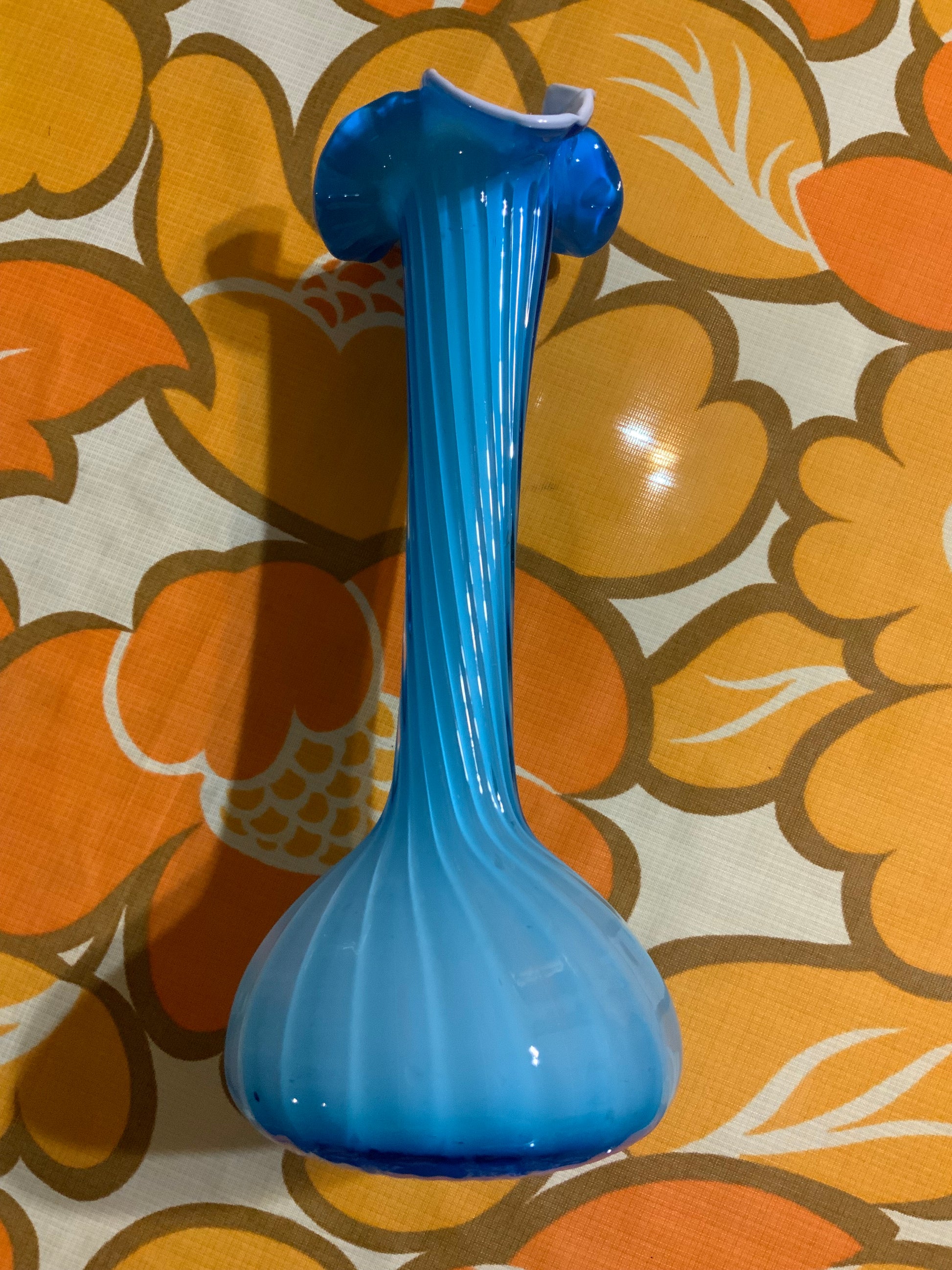 Vase en verre Bleu Blanc Original Vintage - Excellent état.