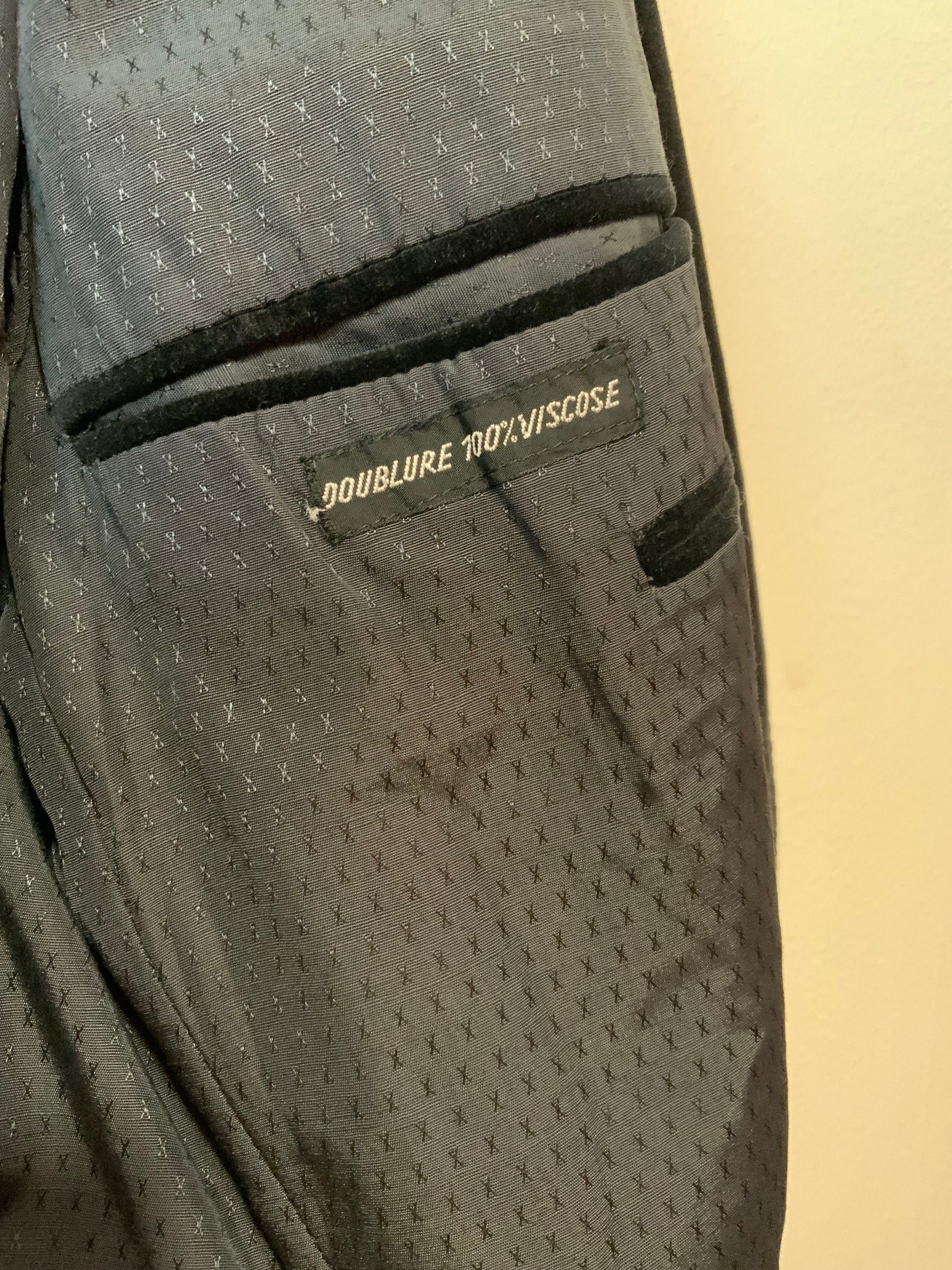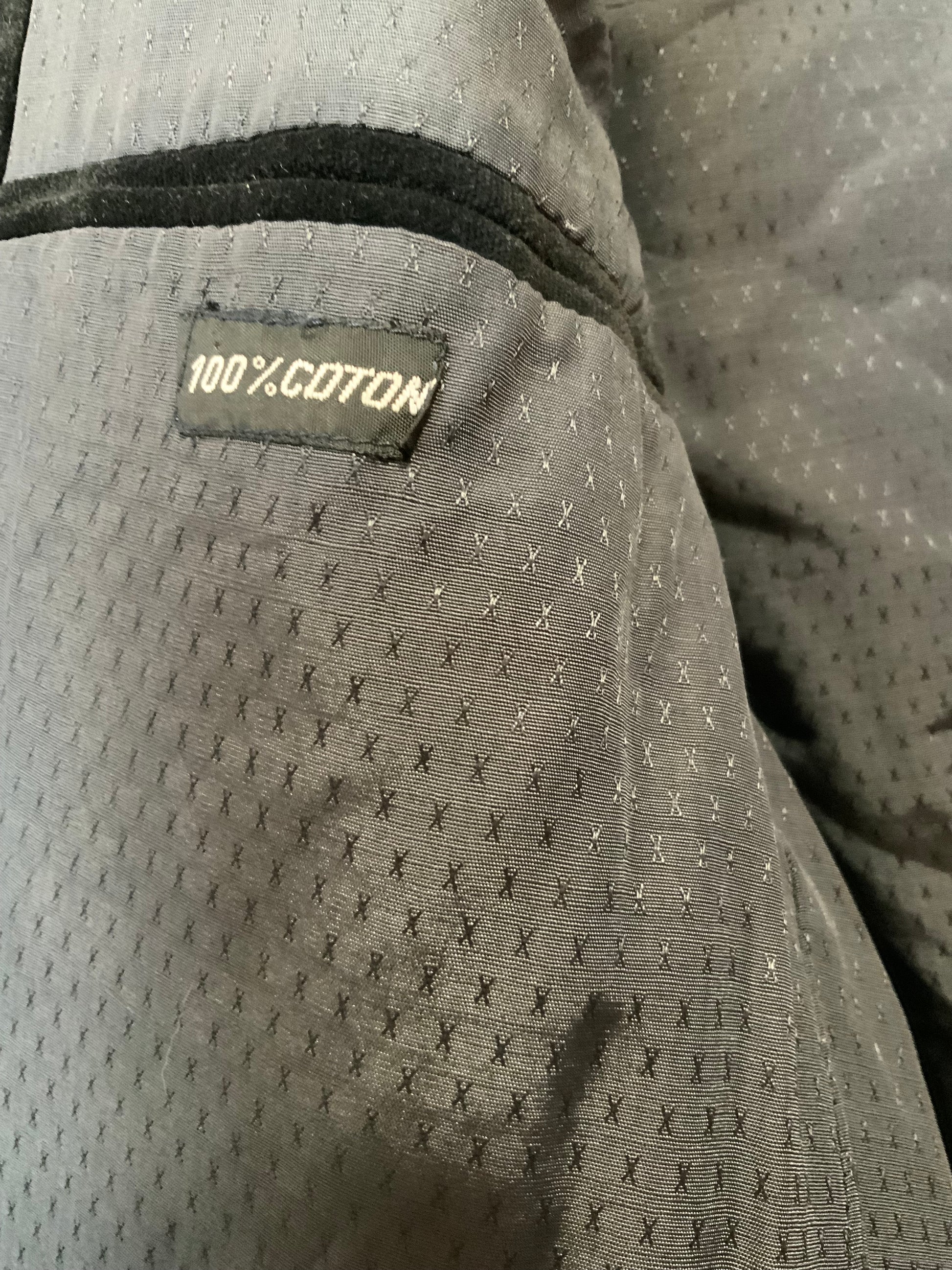 Superbe veste longue ancienne Vintage en gros velours noir - Velours 100% coton et doublure Fantaisie viscose avec poches, Fente dos- Veste homme mais tout à fait mixte, Forme droite.