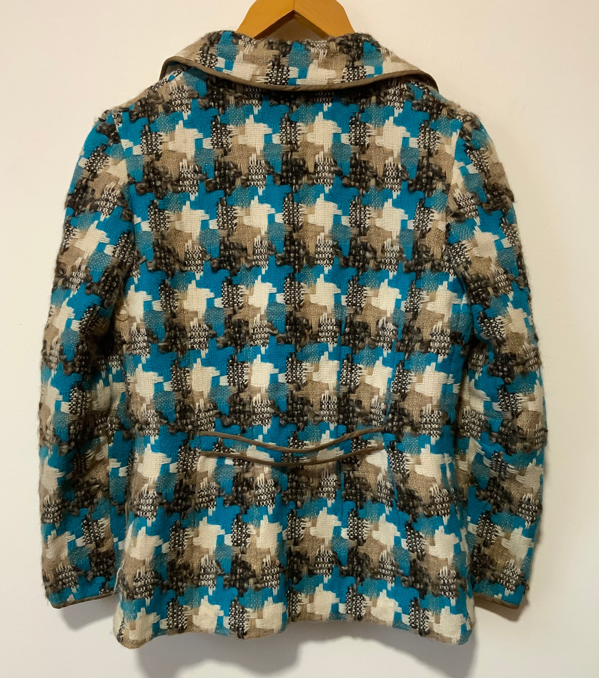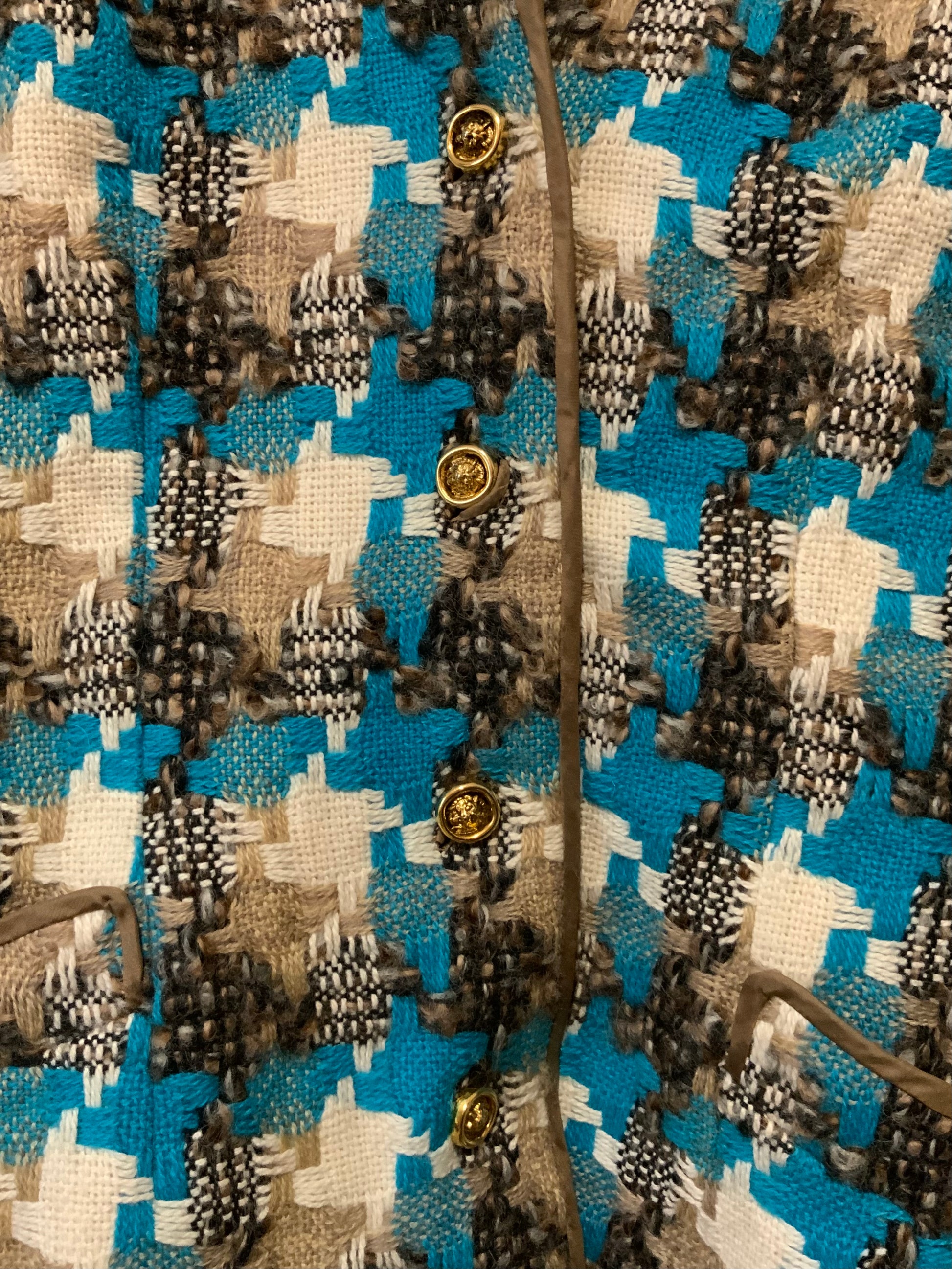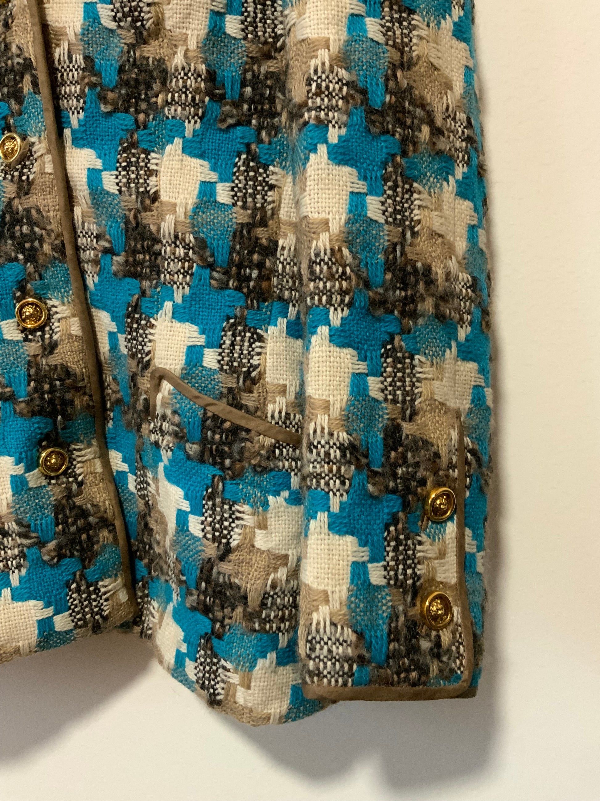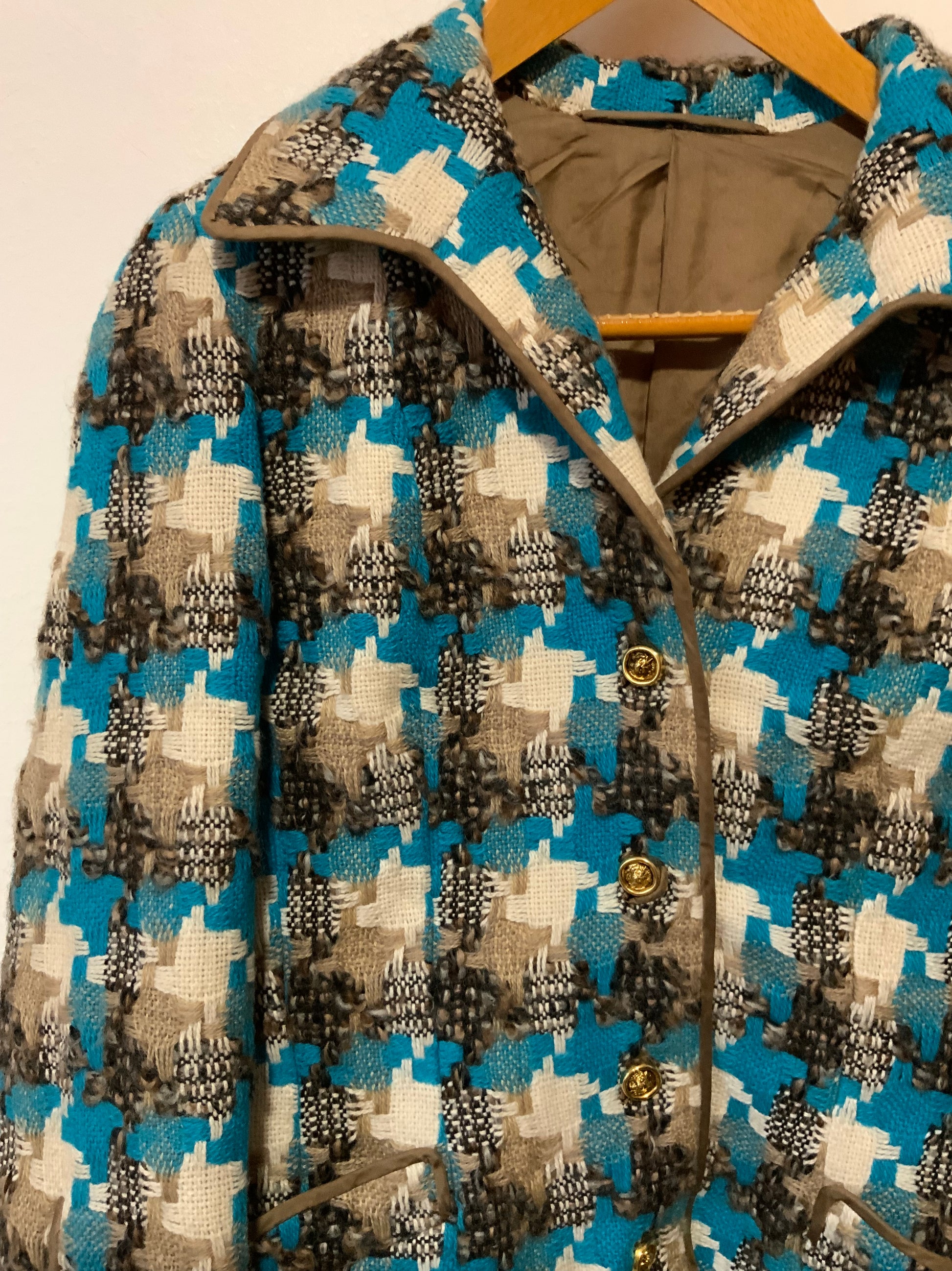Veste blazer laine Turquoise gros carreaux pieds de poule Vintage Création Chic