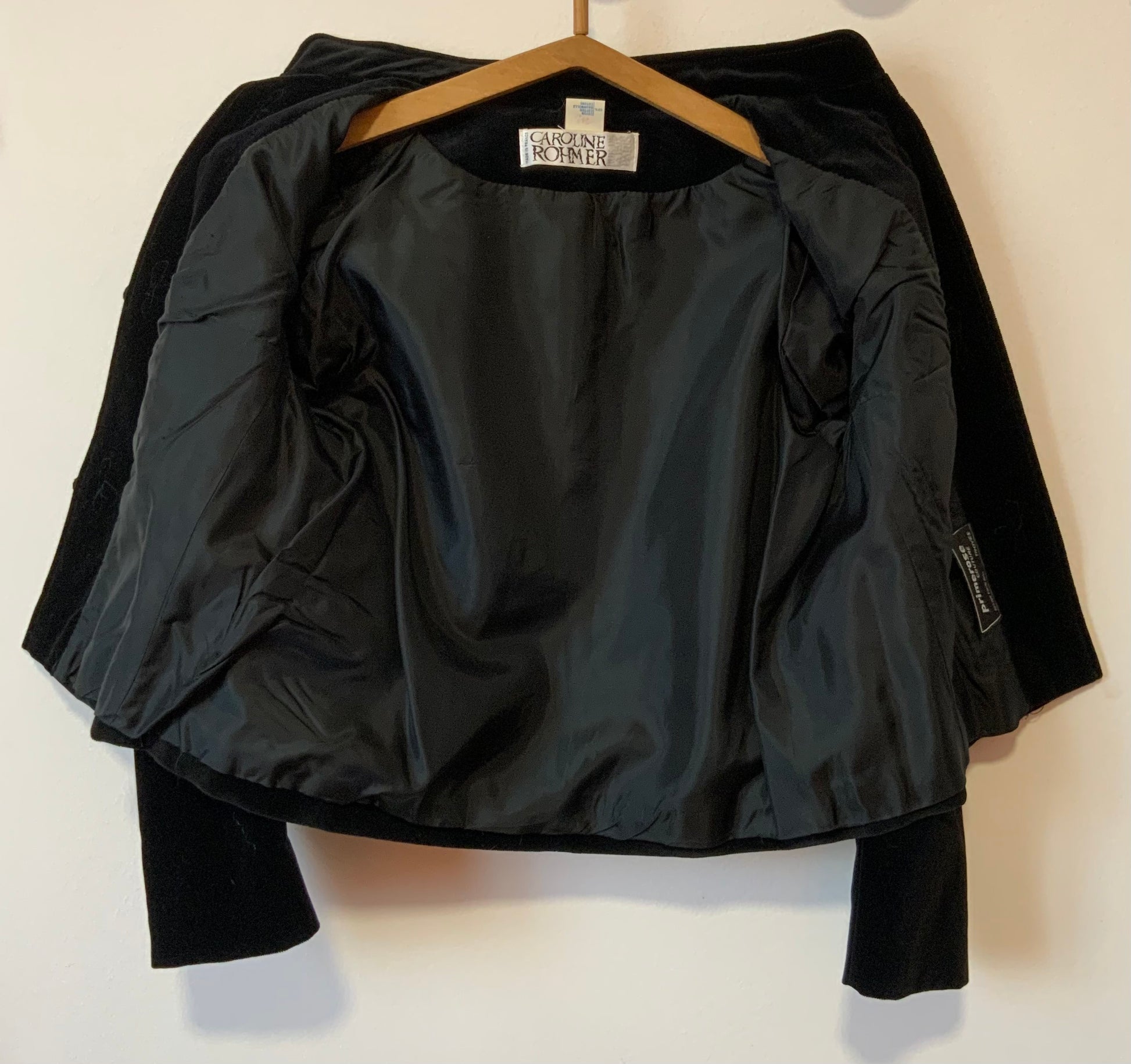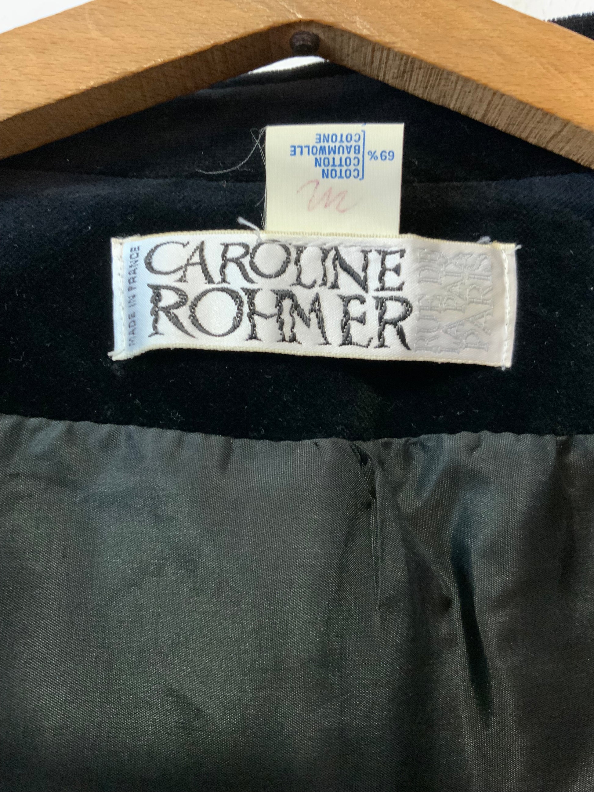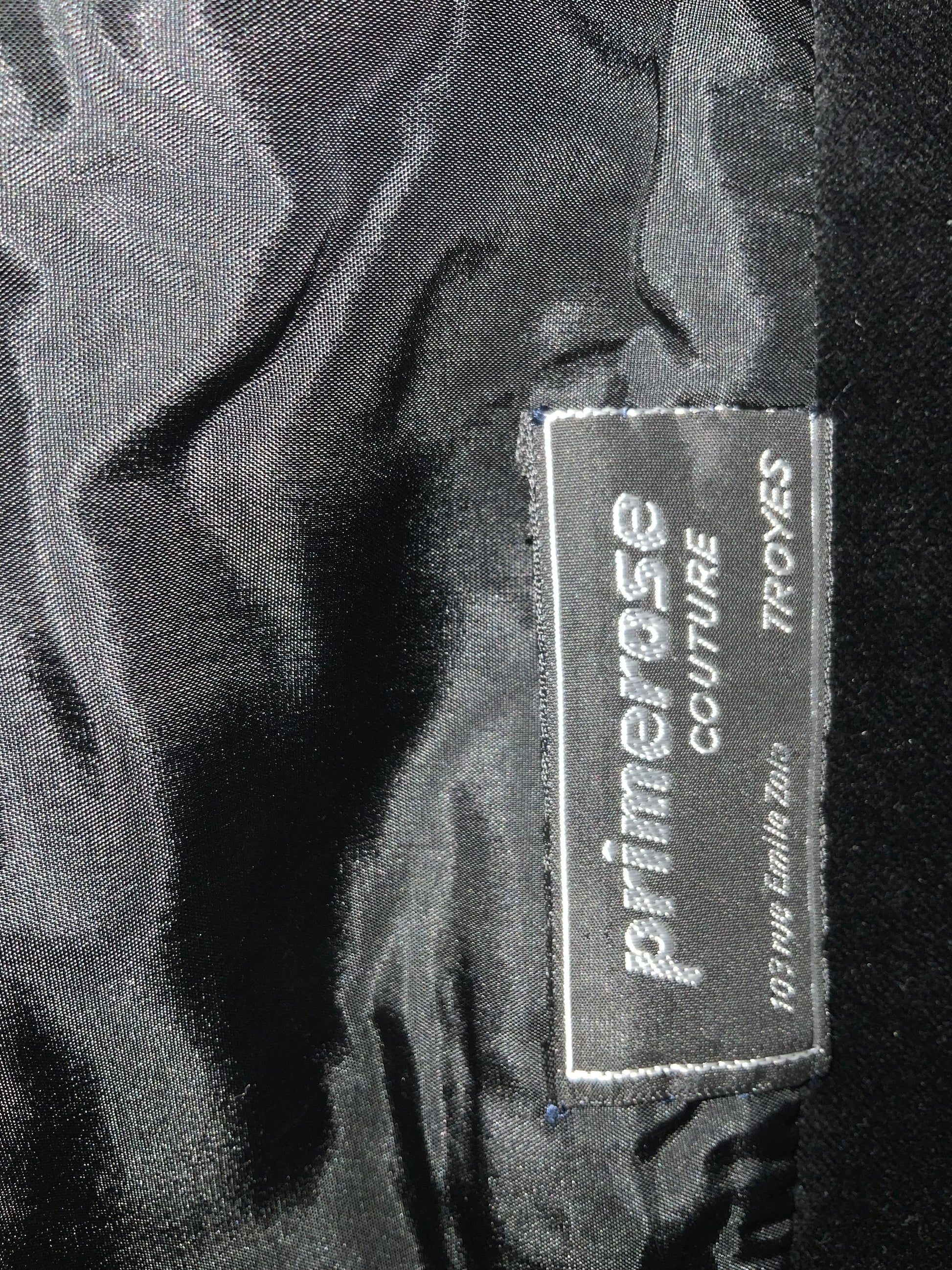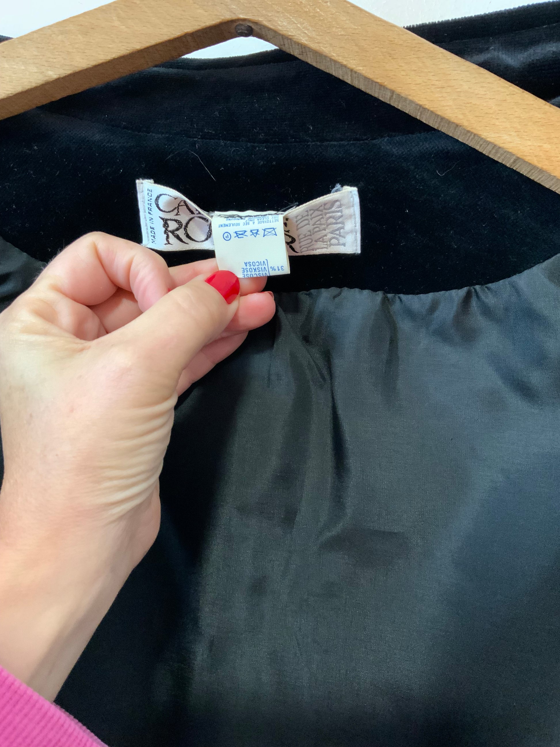 Veste blazer en Velours avec très belles attaches grenouilles Beauté Vintage France 1980 de Caroline Rohmer Fabriquée en France - Epaules plis volume avec épaulettes - Entièrement doublée - Vendue par la boutique primerose couture à Troyes - 69% coton 31% Viscose Comme neuve !