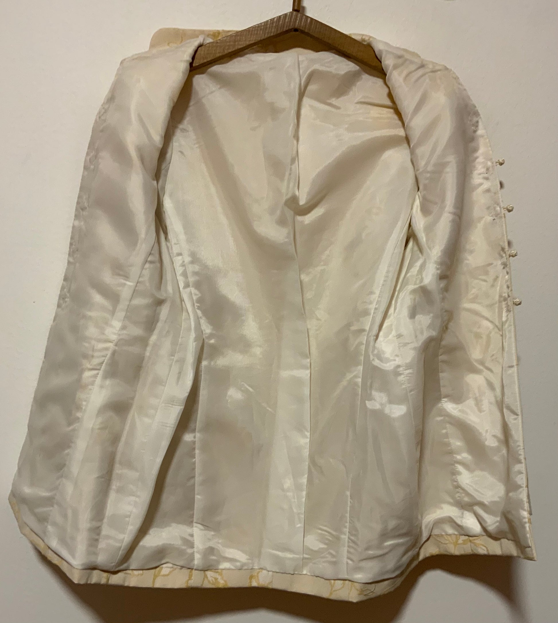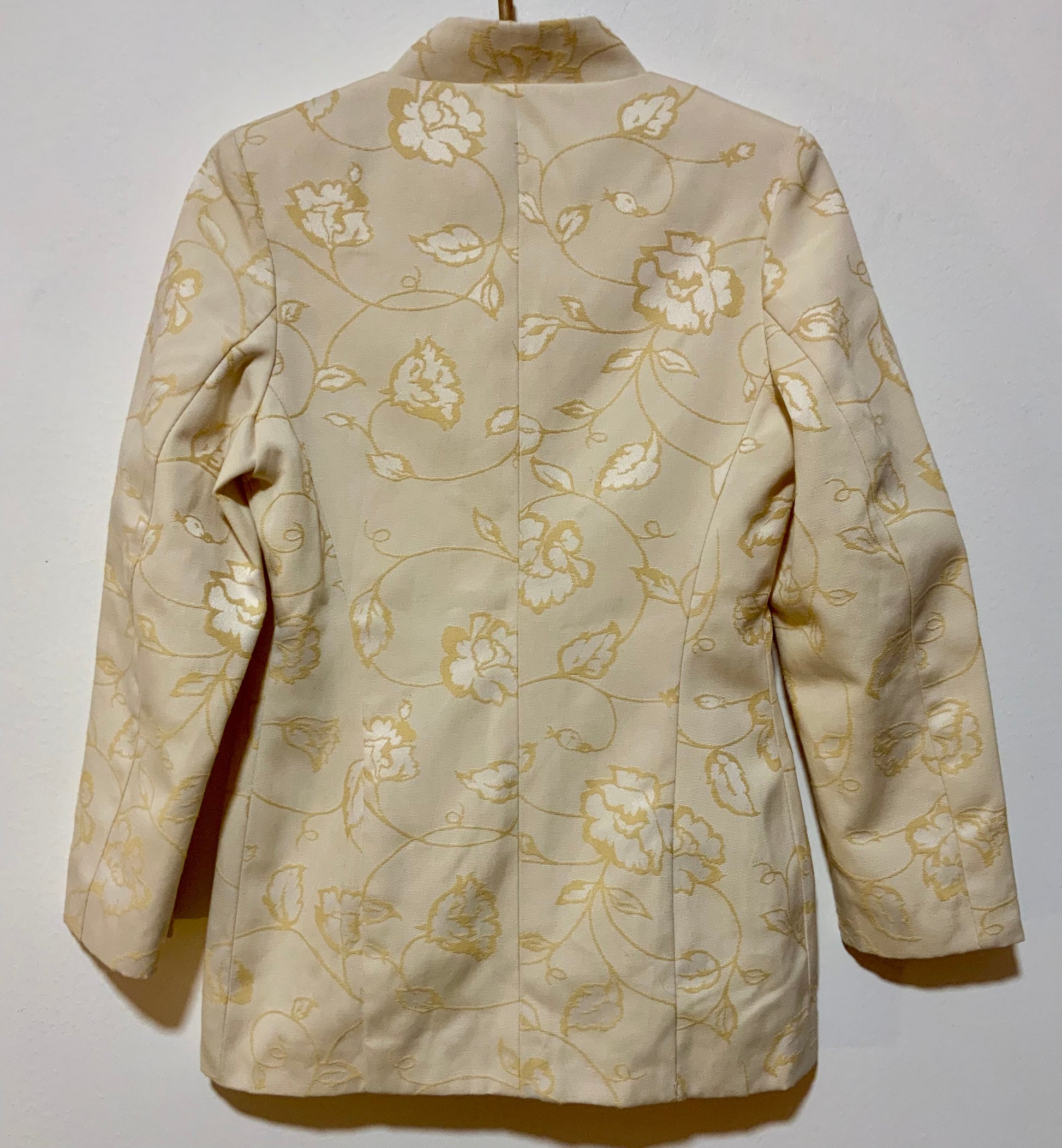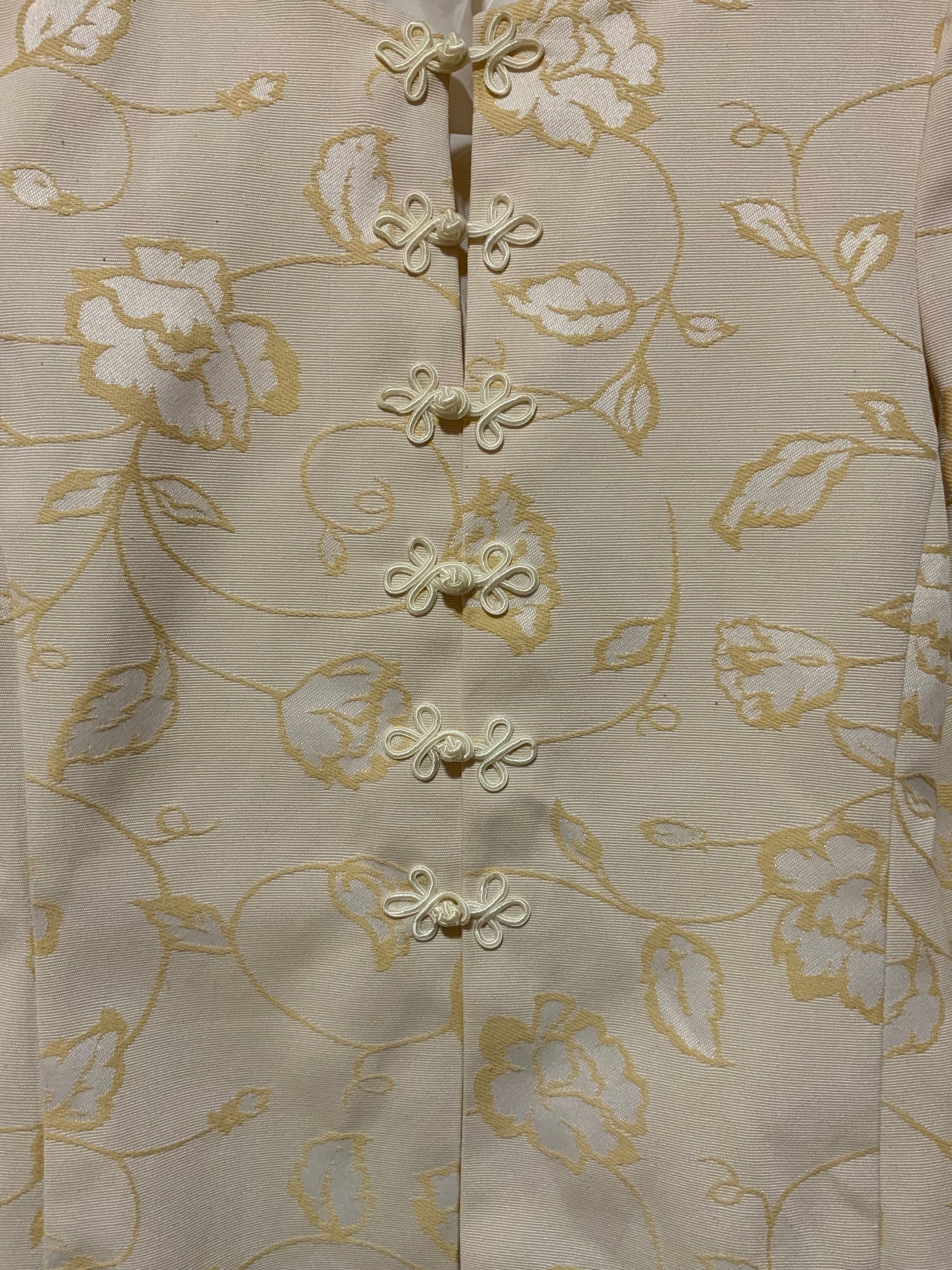Sublime Veste Chinoise Création Main Vintage 1980 Blanc Écru Entièrement confectionnée à la main, une merveille avec ses boutons grenouilles et motifs fleurs ton sur ton.
