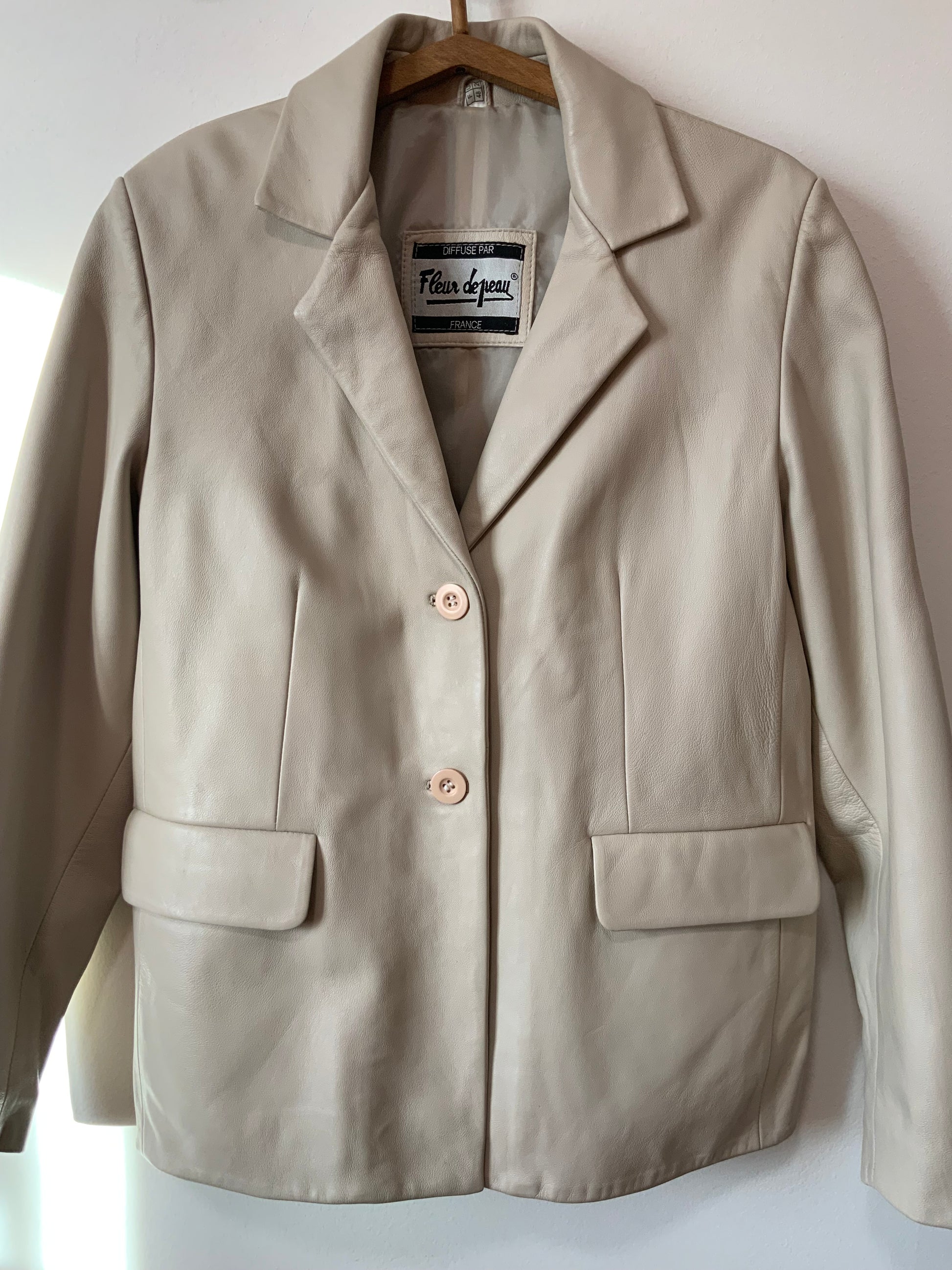 Veste crème Cuir haute qualité pleine fleurs pigmentées Vintage France 1990