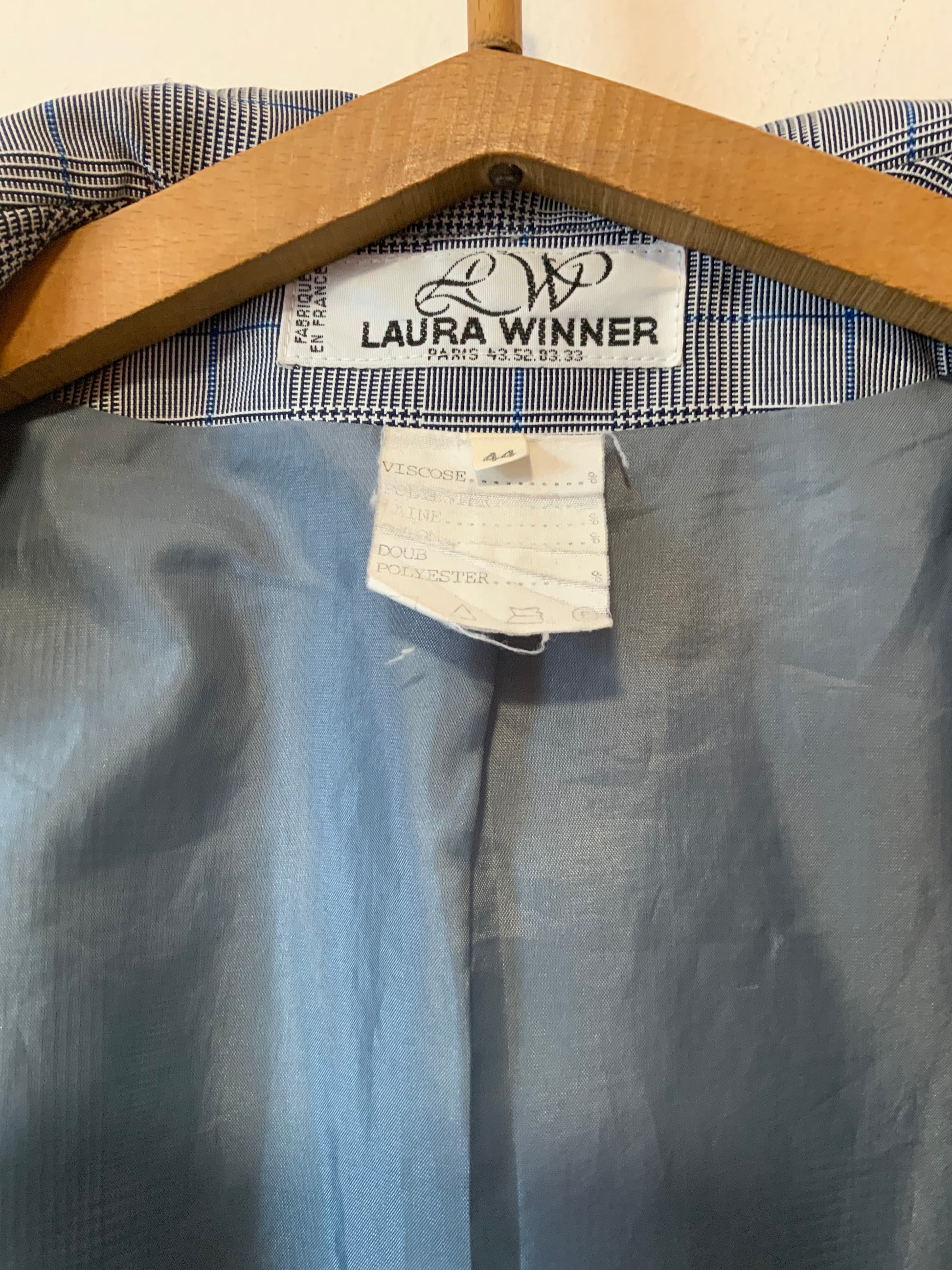 Indispensable Veste droite à carreaux Prince de Galles - France par Laura Winner - Prince de Galles noir blanc avec fil bleu, fermeture à un bouton - poches droites et poche poitrine, Entierement doublé et épaules à plis volume garanti.
